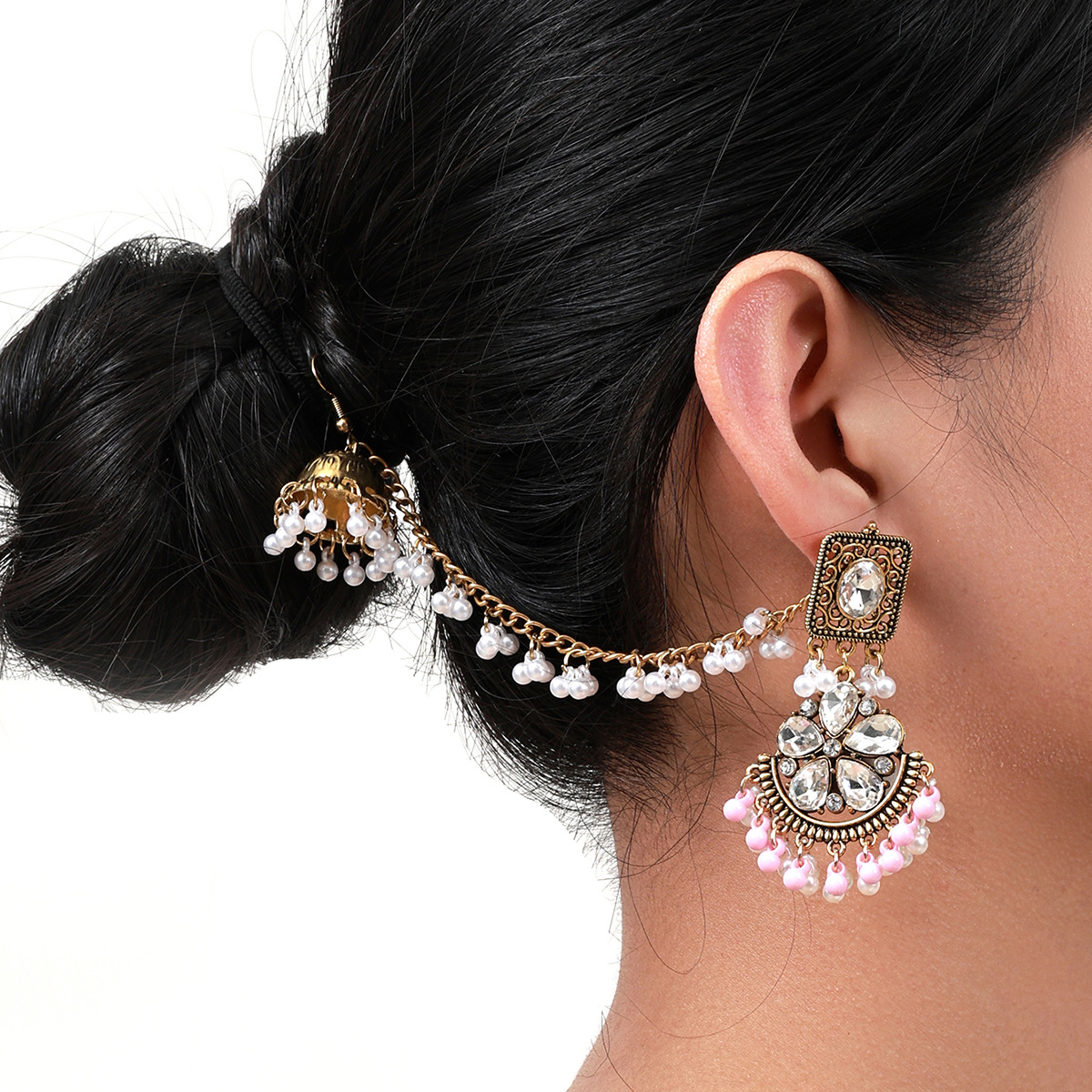 欧美创意铃铛珍珠流苏耳环 复古波西米亚风灯笼耳坠厂家直销
