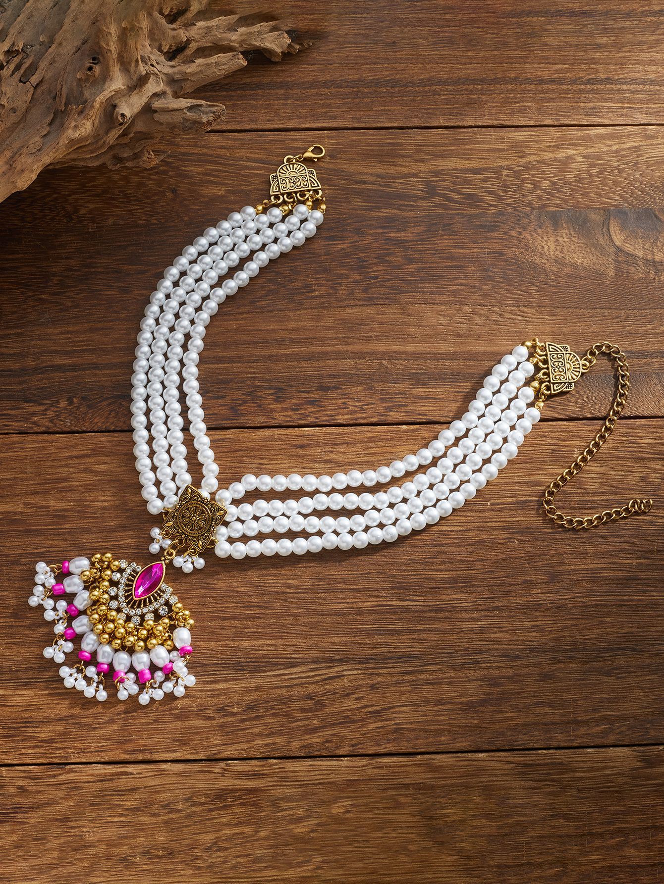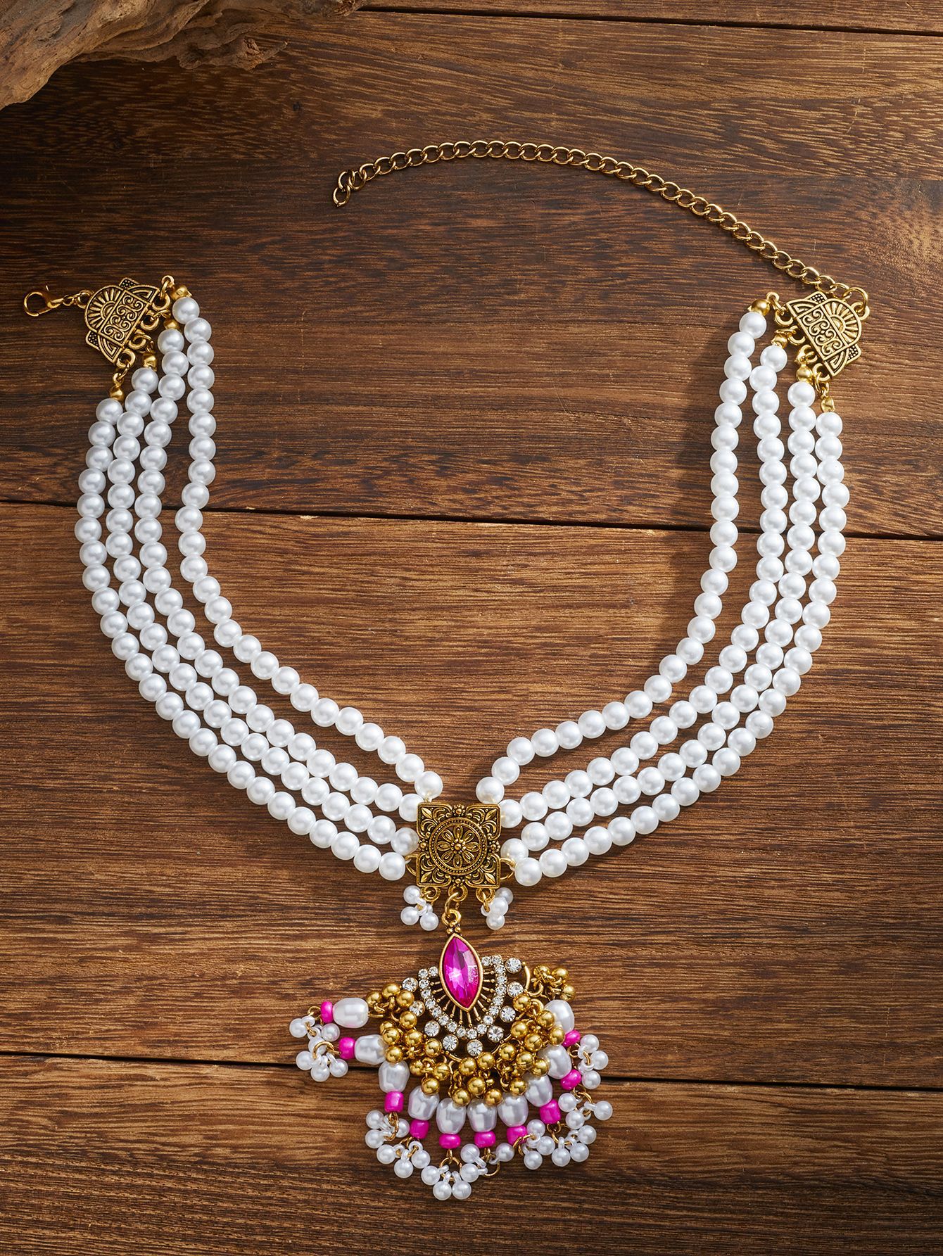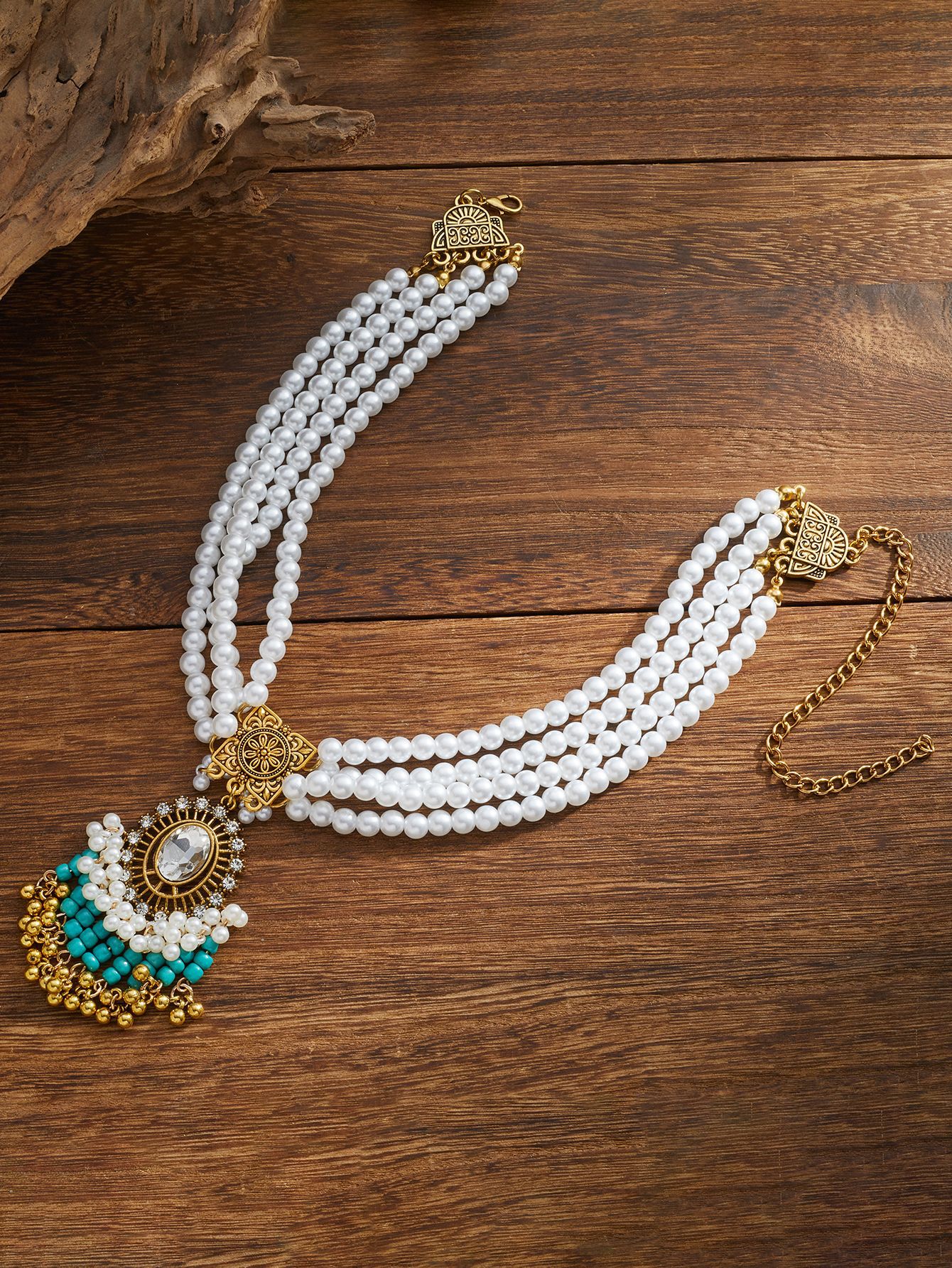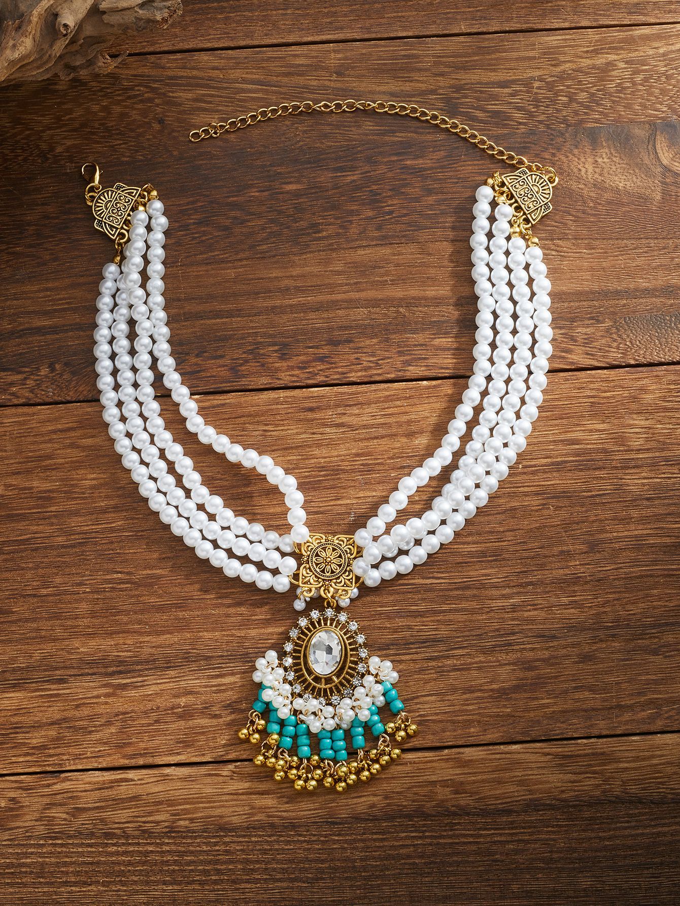 欧美跨境复古民族风锁骨链仿珍珠多层项链珠串项链