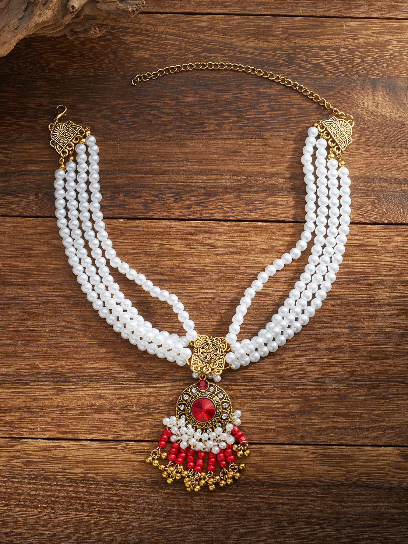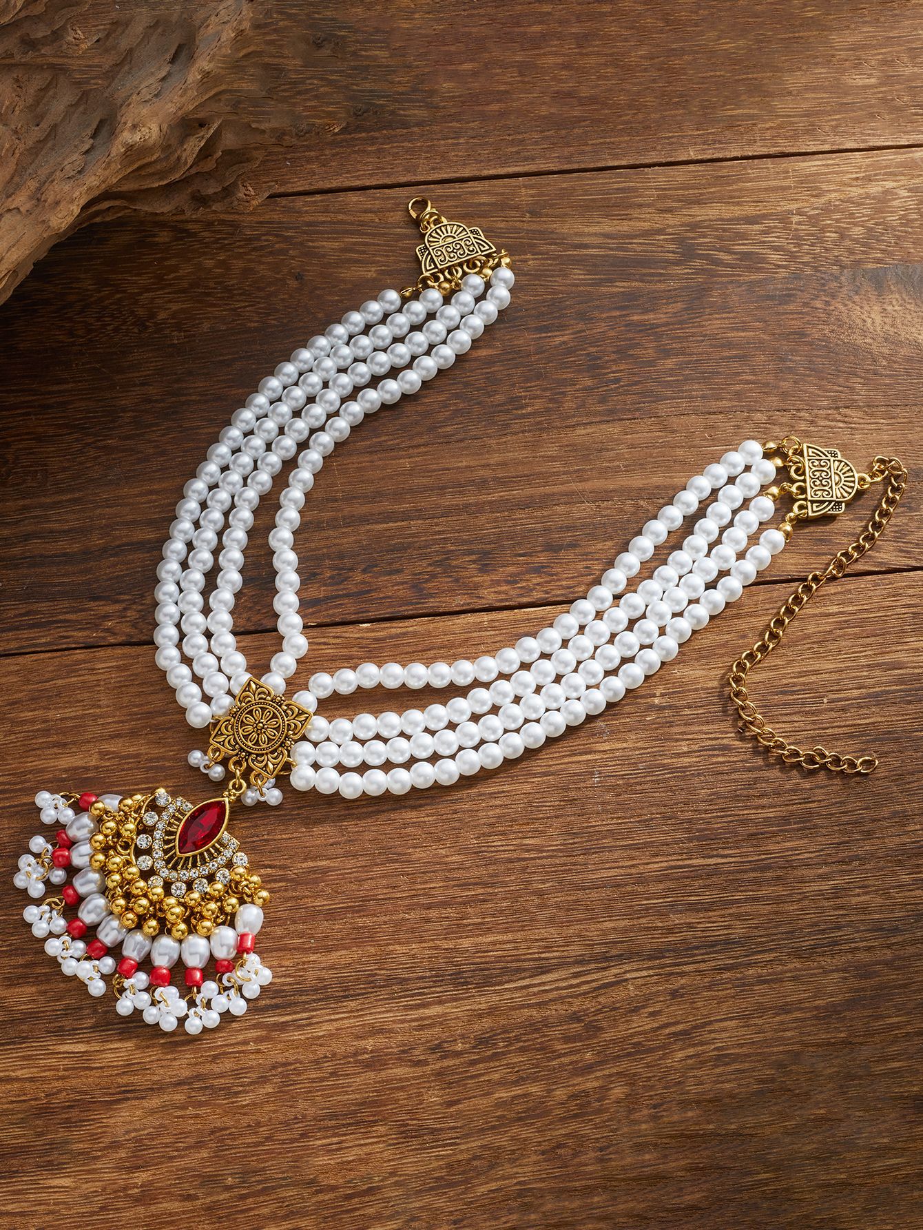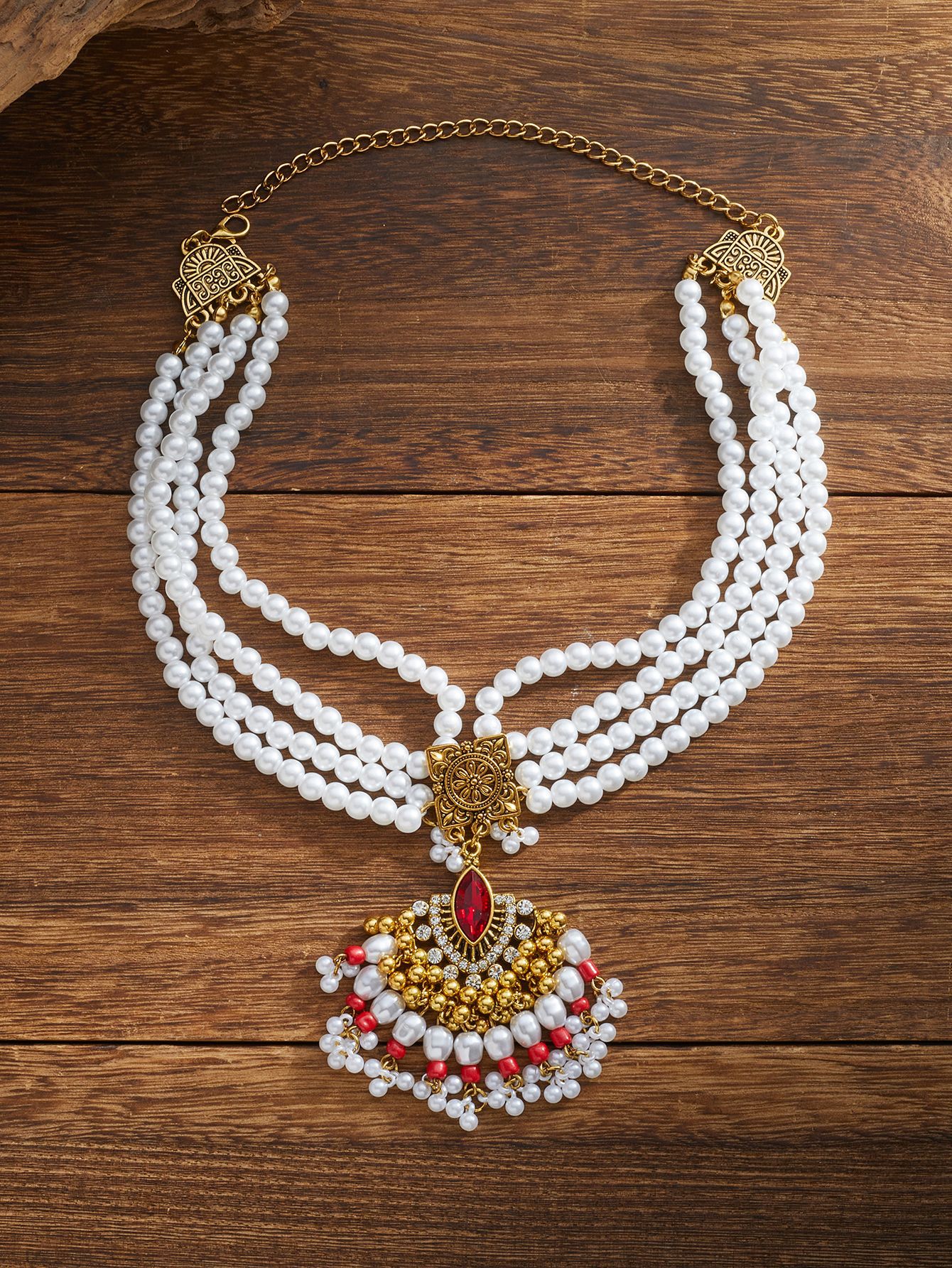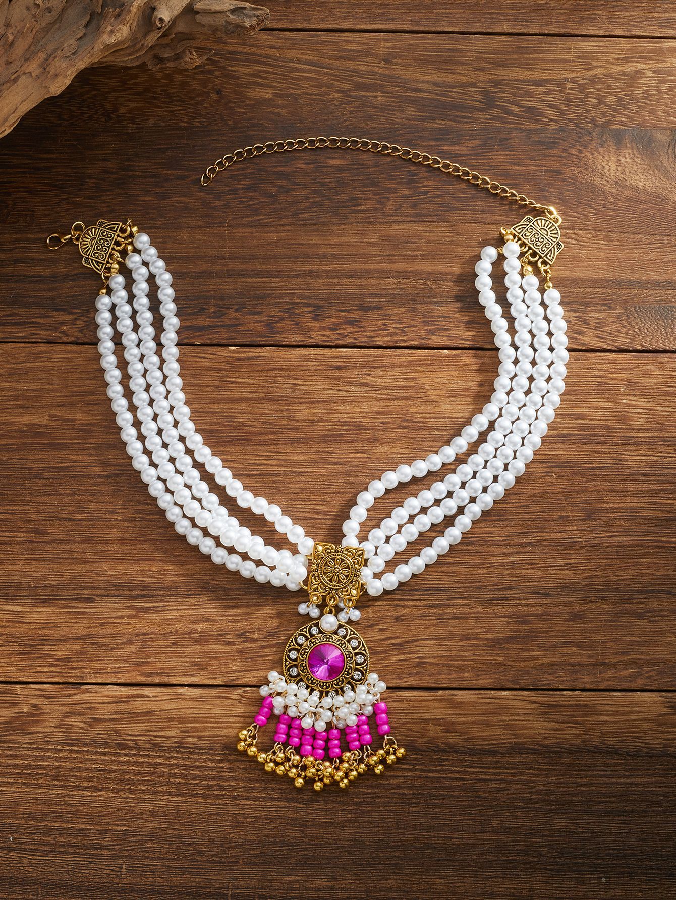 欧美跨境复古民族风锁骨链仿珍珠多层项链珠串项链