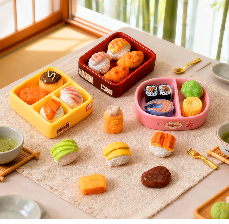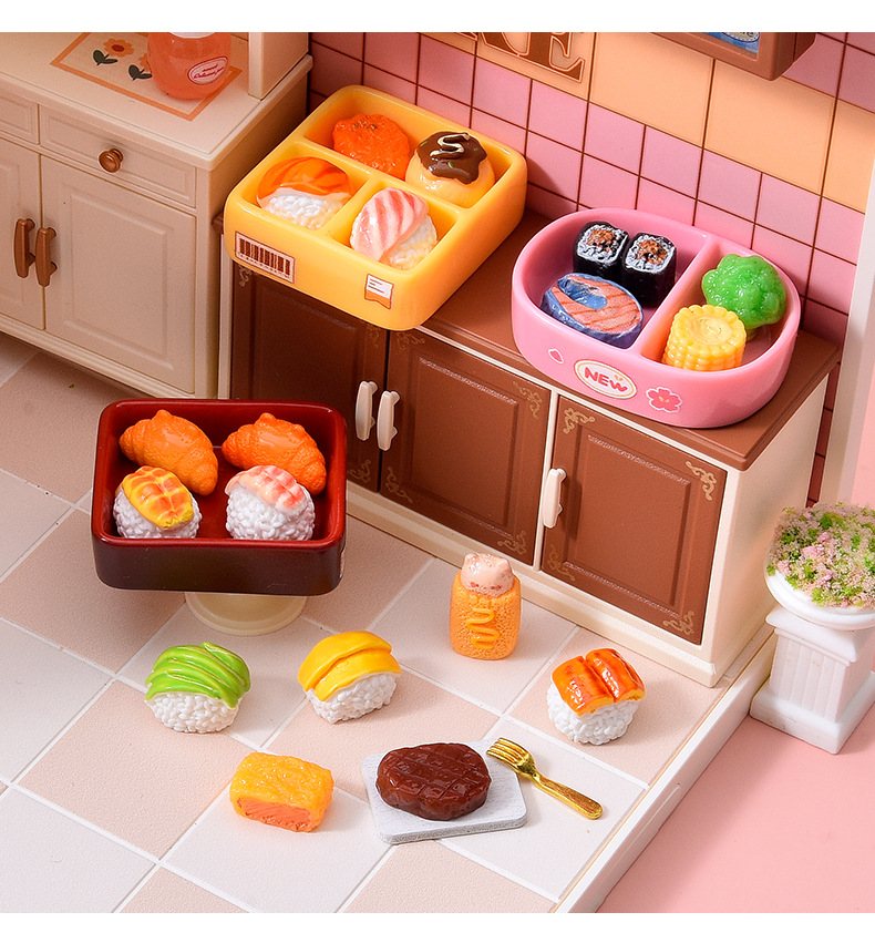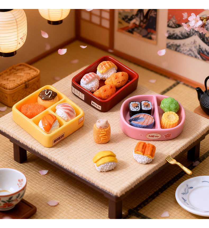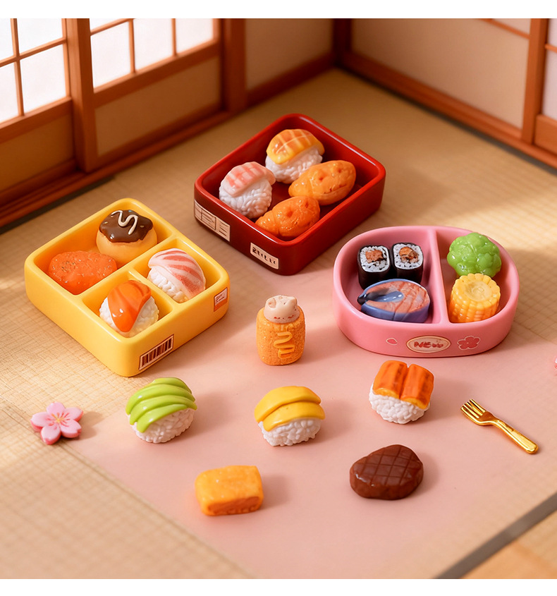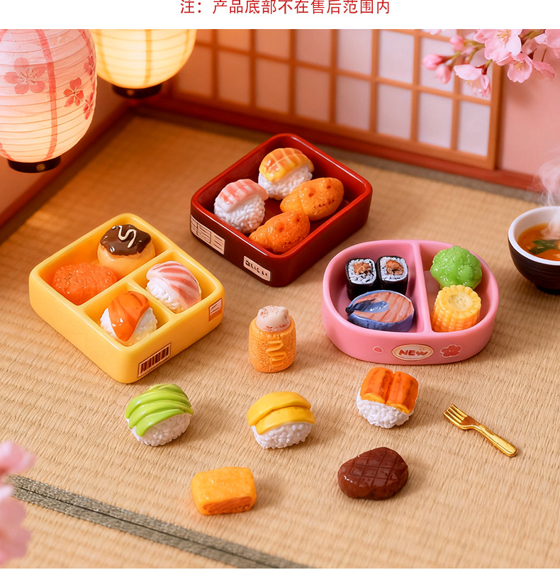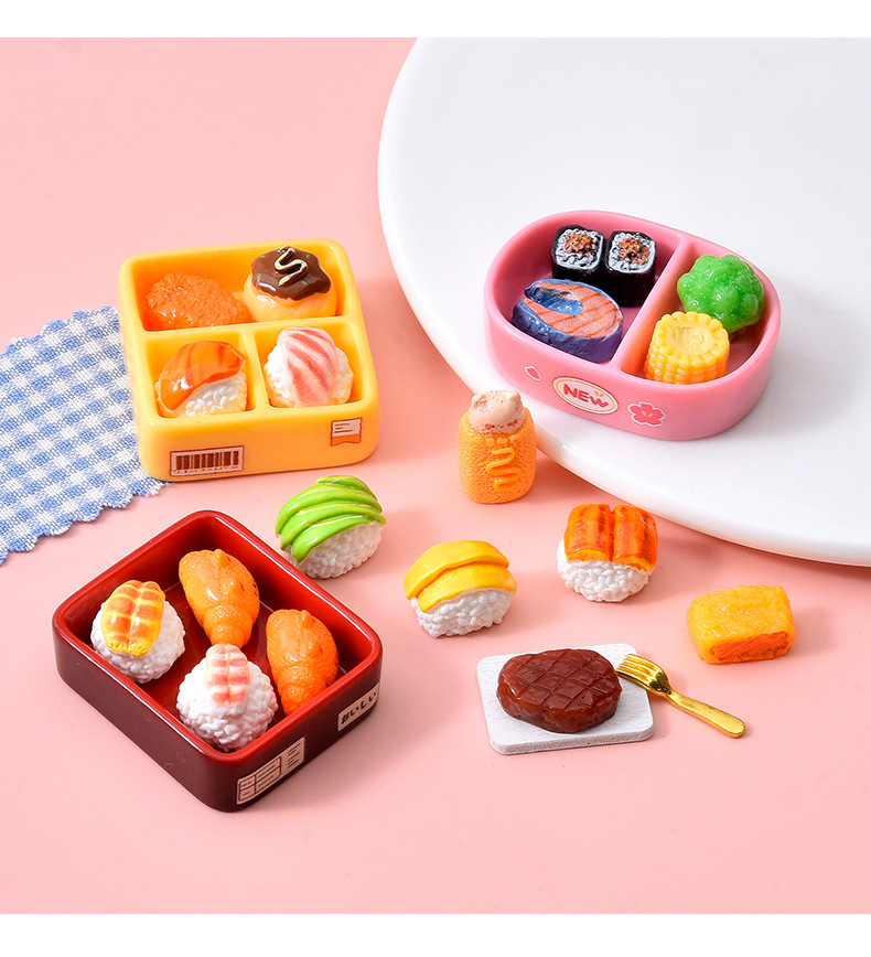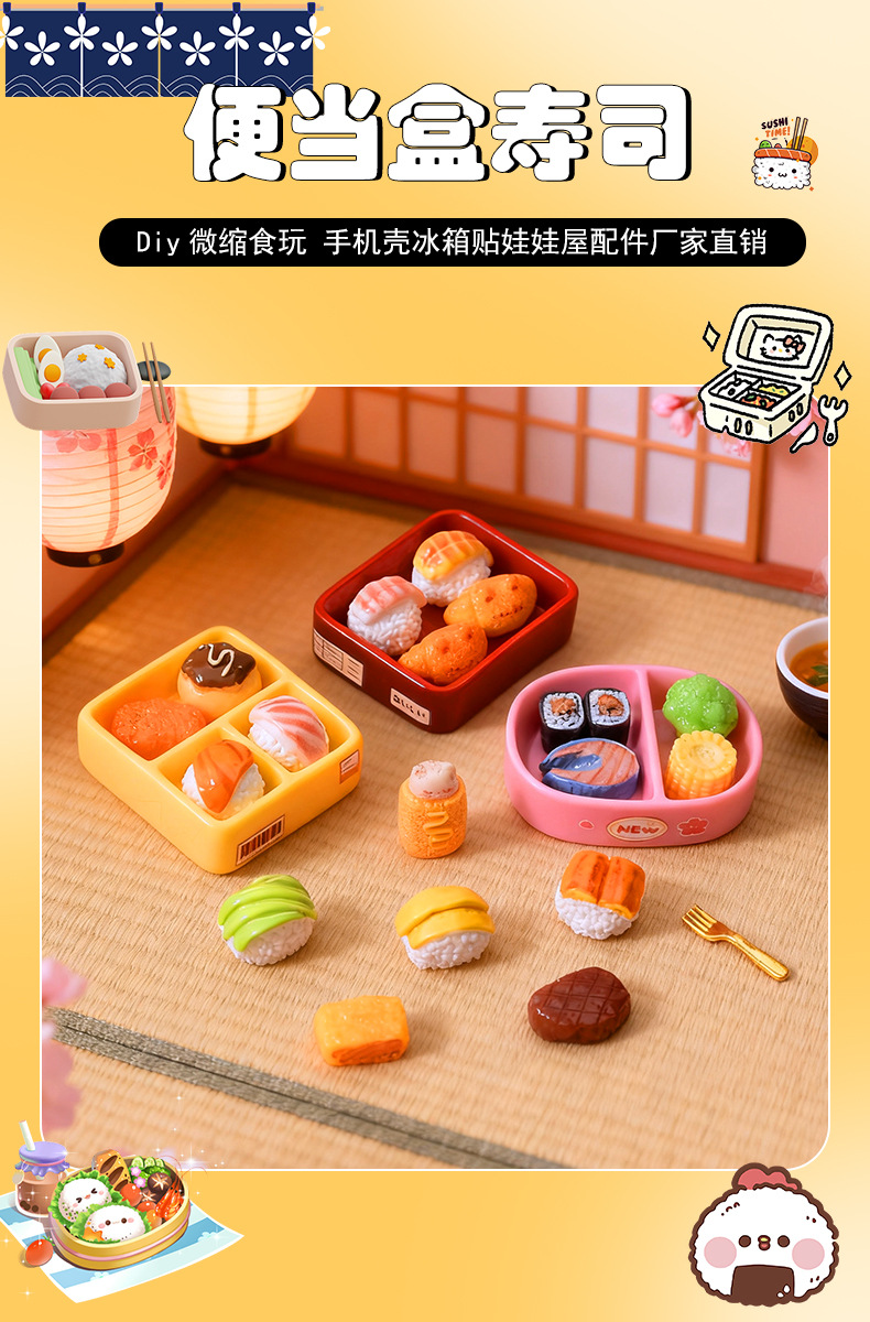 二代卡通仿真便当盒食玩配件 娃娃屋寿司卷牛排diy装饰品桌面摆件