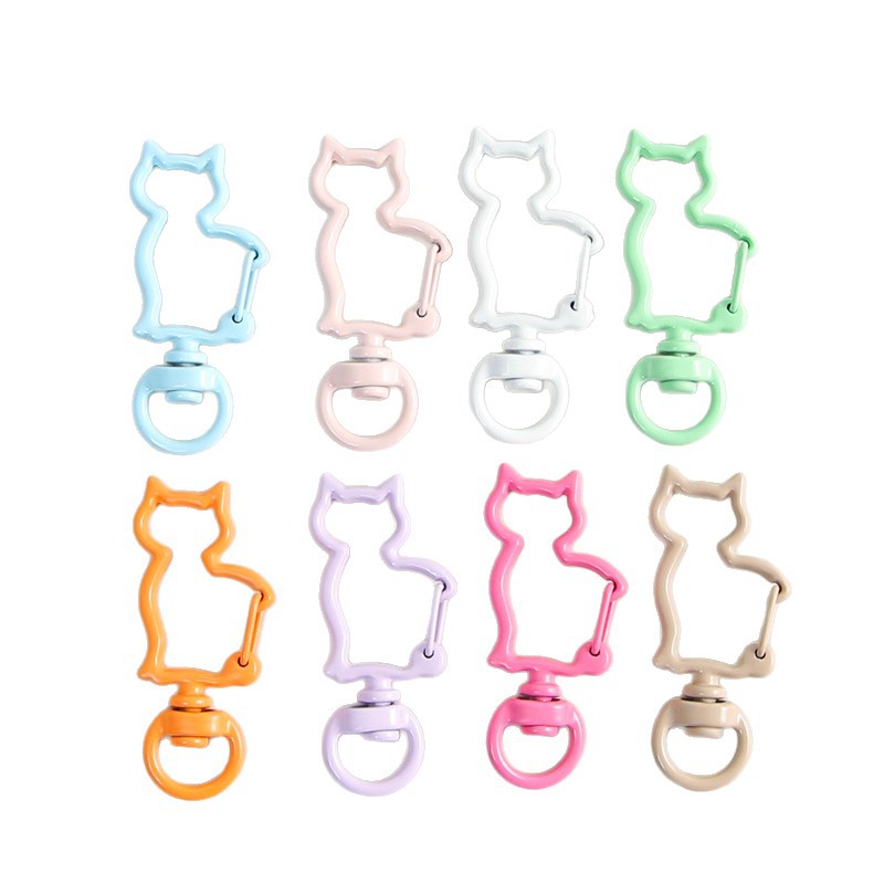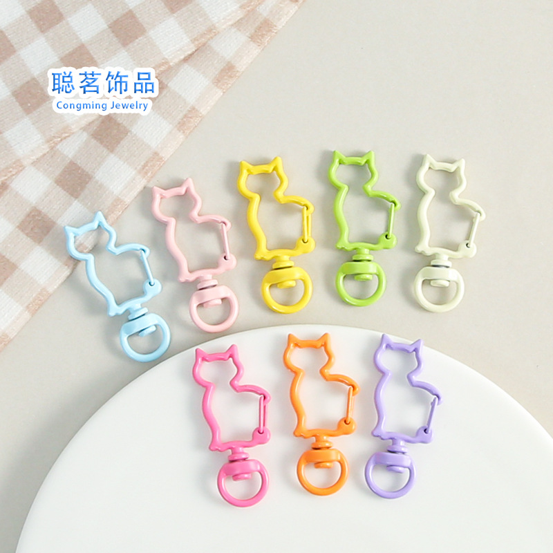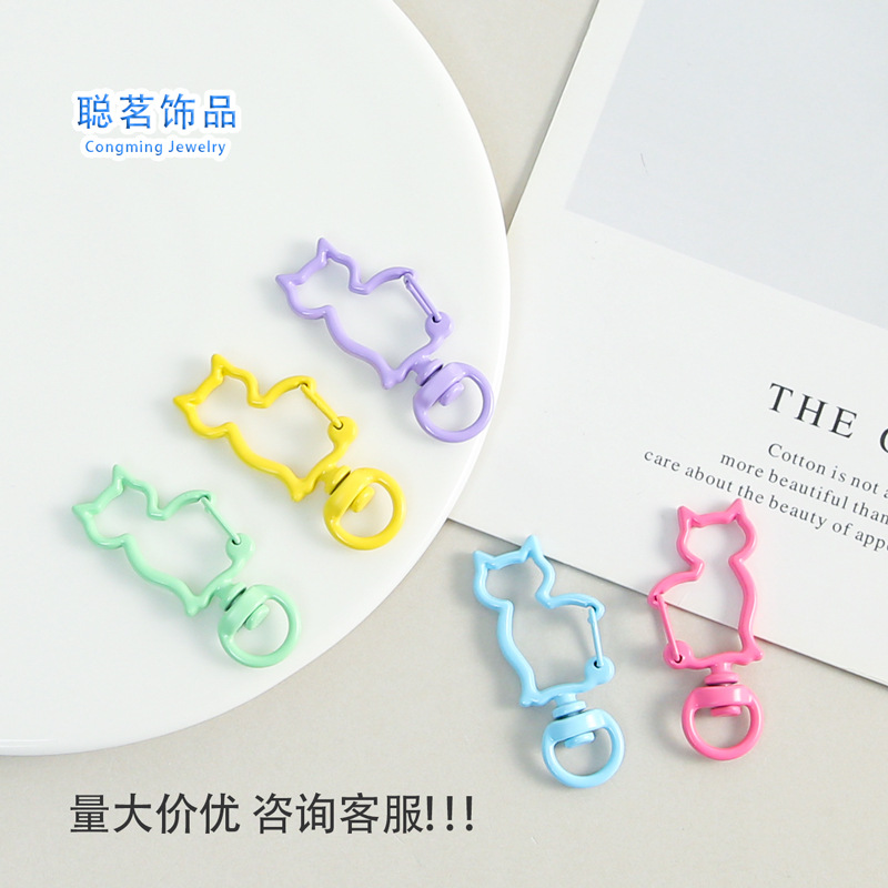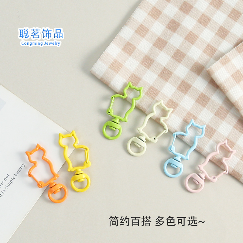 锌合金彩色镂空小猫咪可旋转弹簧扣饰品diy配件手工材料挂饰批发