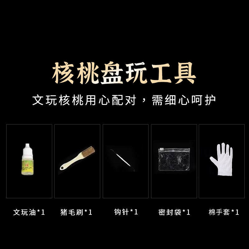国风绿色礼盒核桃盘玩工具水晶绳猪毛刷手套抛光棉盘玩工具批发