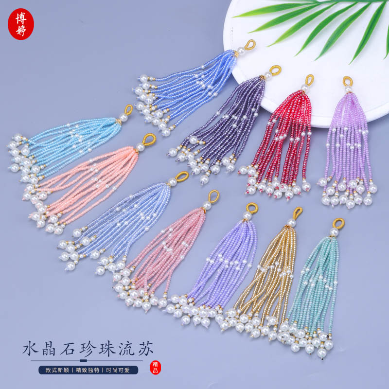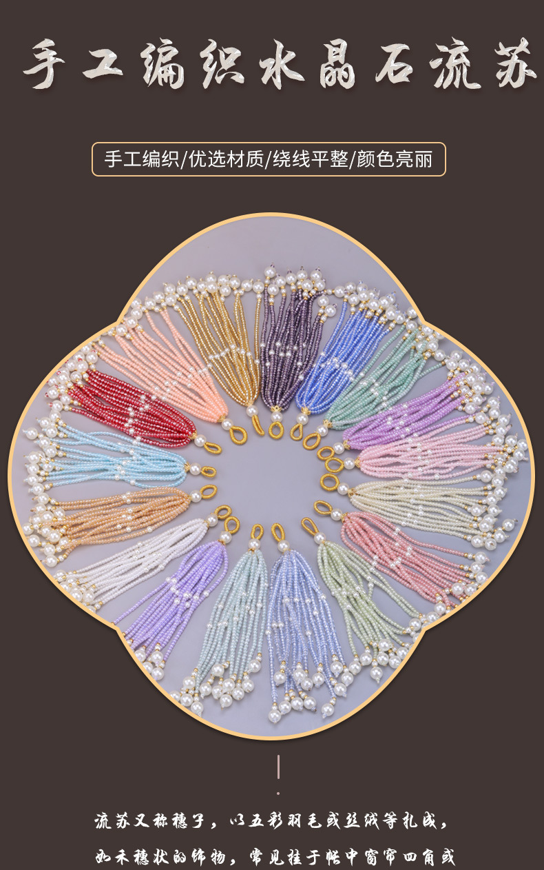 手工编织水晶石流苏珍珠饰品米珠流苏穗子吊坠古风配饰宋锦挂件