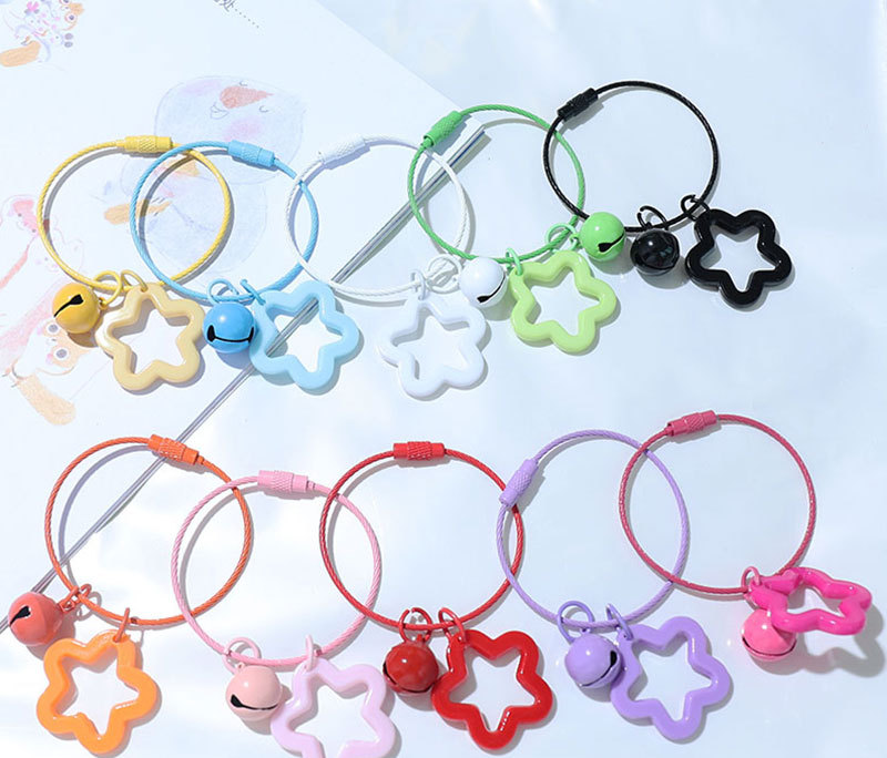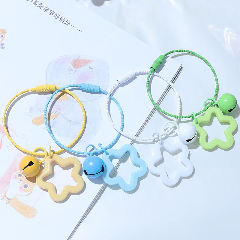 批发彩色五角星铃铛钥匙扣亚克力镂空挂件包包耳机套钥匙扣挂饰