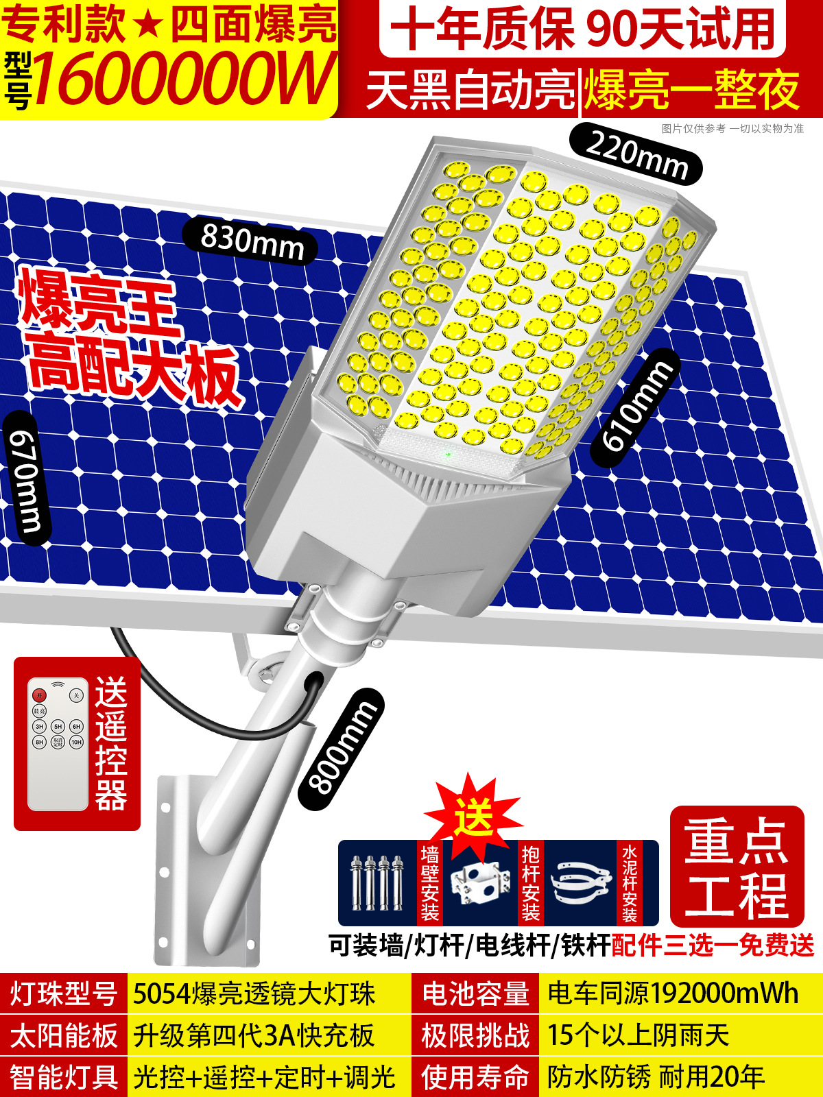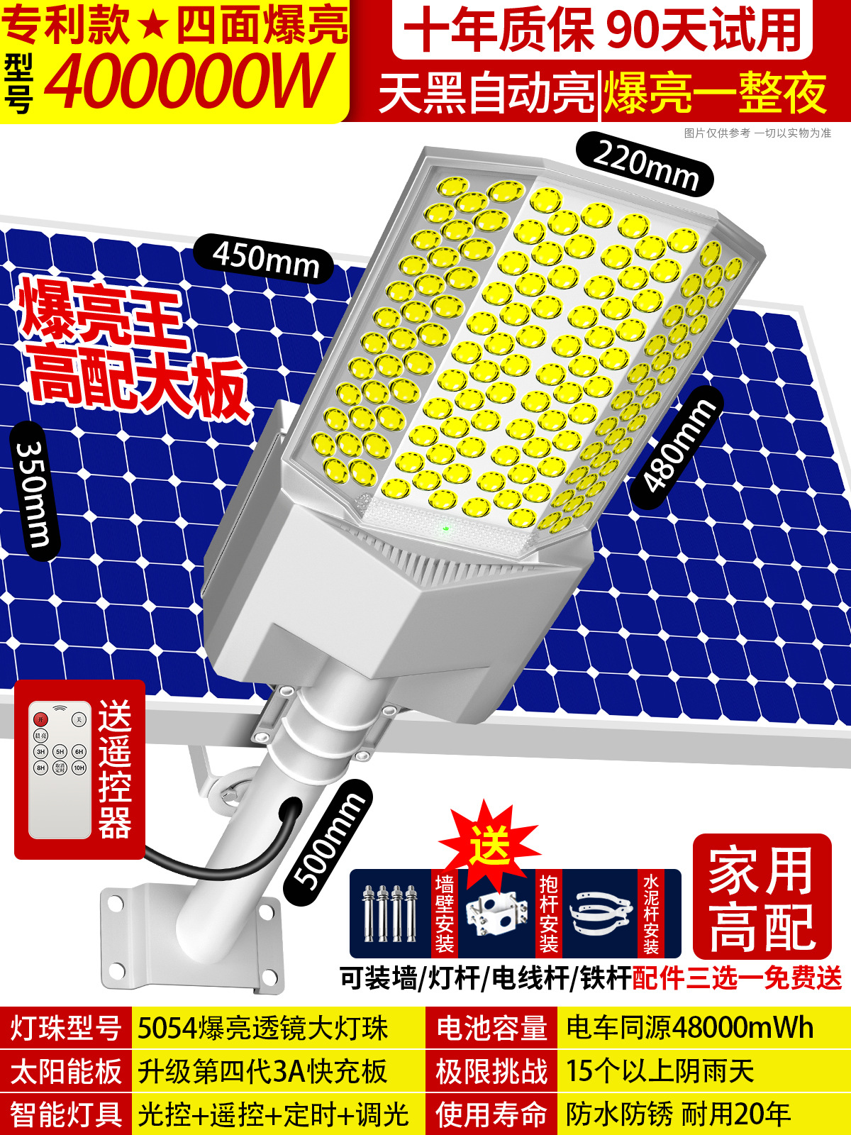 太阳能户外灯家用2025新款路灯院子农场led广角超亮大功率照明灯