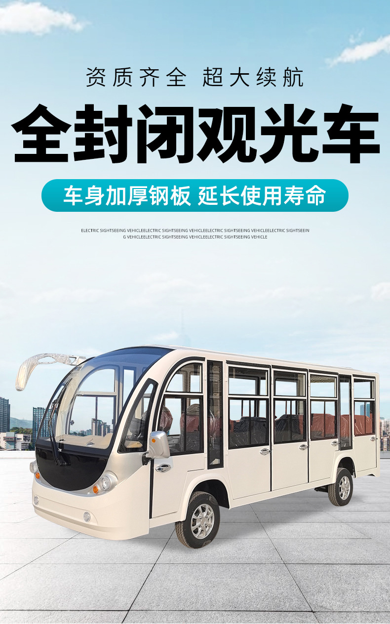 全封闭电动观光车景区旅游摆渡车学校园区接待11座14座电动观光车