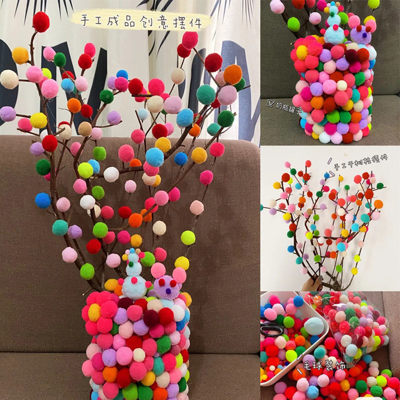 现货供应彩色高弹毛球diy绒球材料涤纶毛线球儿童玩具毛球球批发