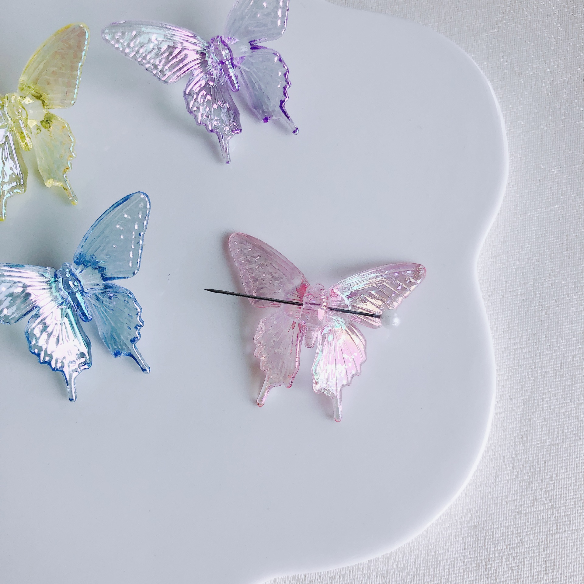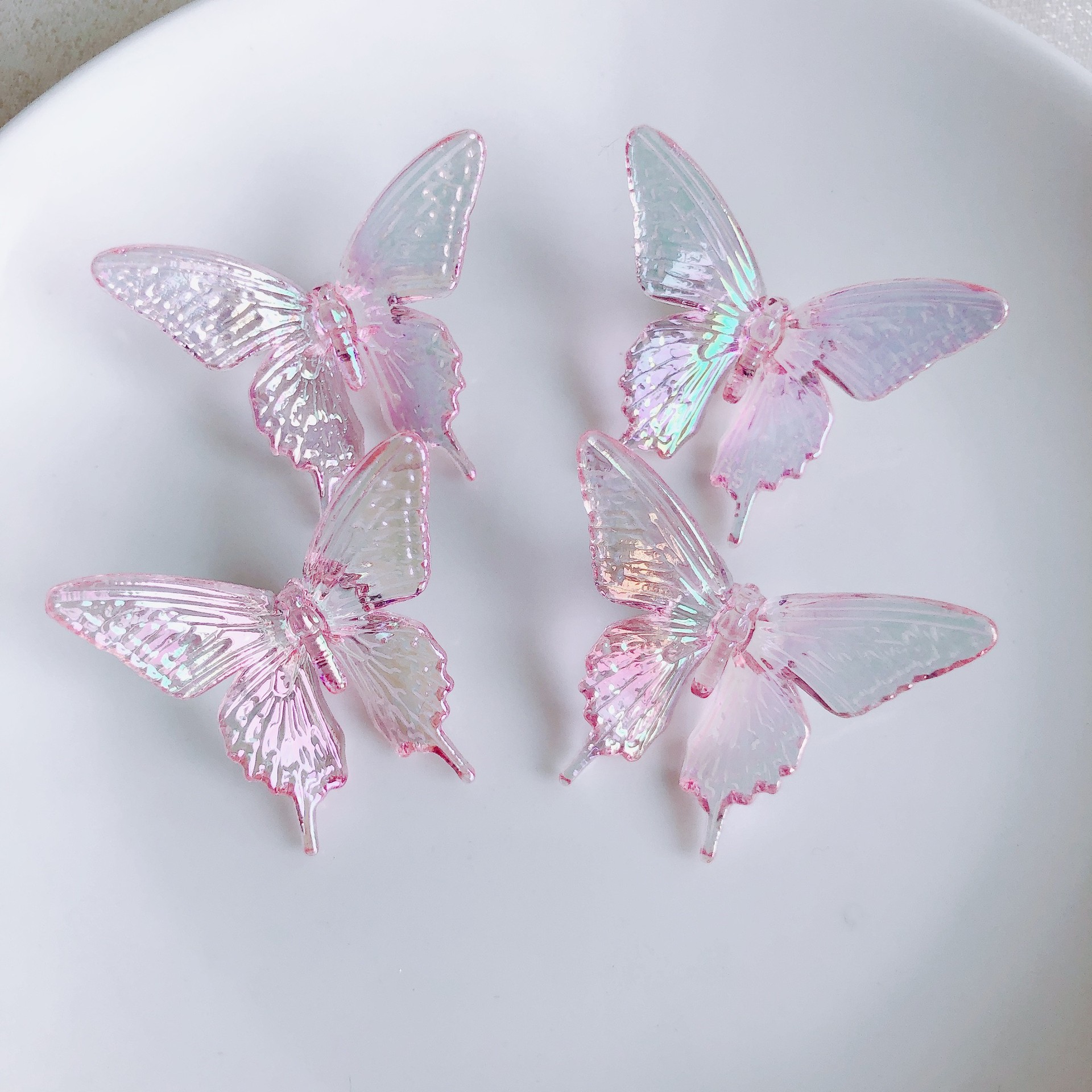 diy饰品配件批发复古透明幻彩小蝴蝶发夹仙气甜美发饰材料饰品