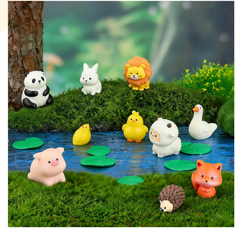 树脂小摆件微缩苔藓微景观创意可爱小动物兔子熊猫小熊公仔装饰品