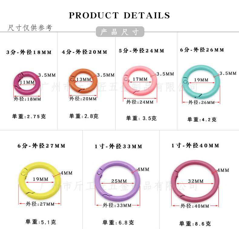 现货烤漆锌合金弹簧圈包包小圆挂扣饰品配件开口弹簧扣彩色弹簧圈