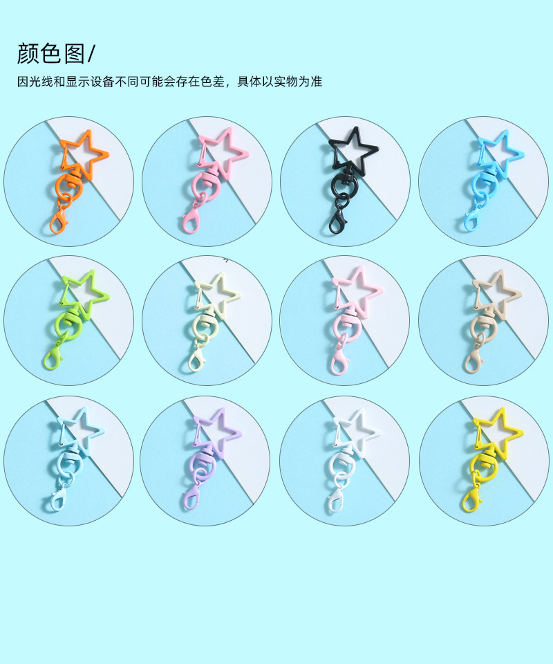 糖果色系五角星按扣挂小龙虾扣锌合金 钥匙扣DIY配件公仔饰品挂扣