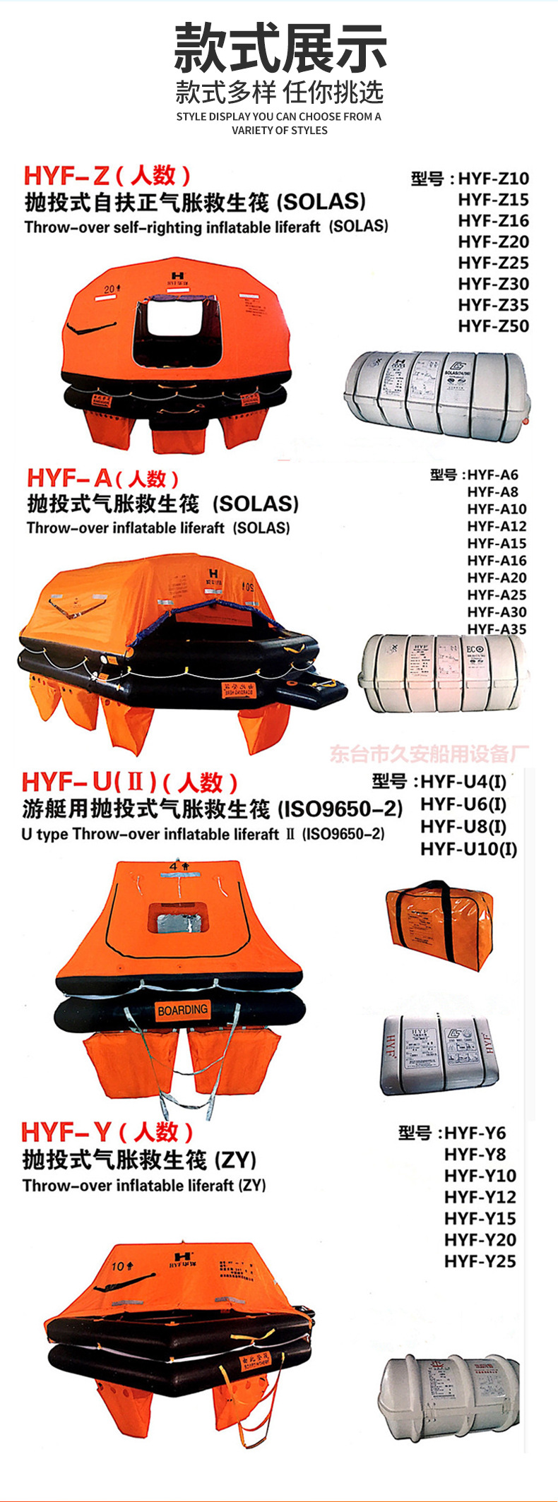 厂家供应游艇抛投自扶正检船救生筏伐CCS EC证书释可吊救生筏舶用