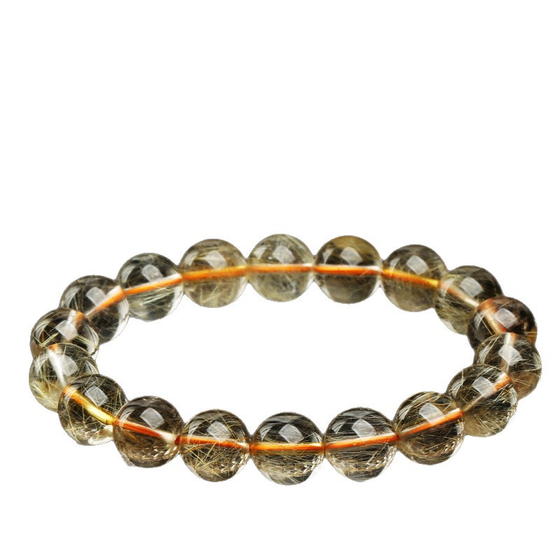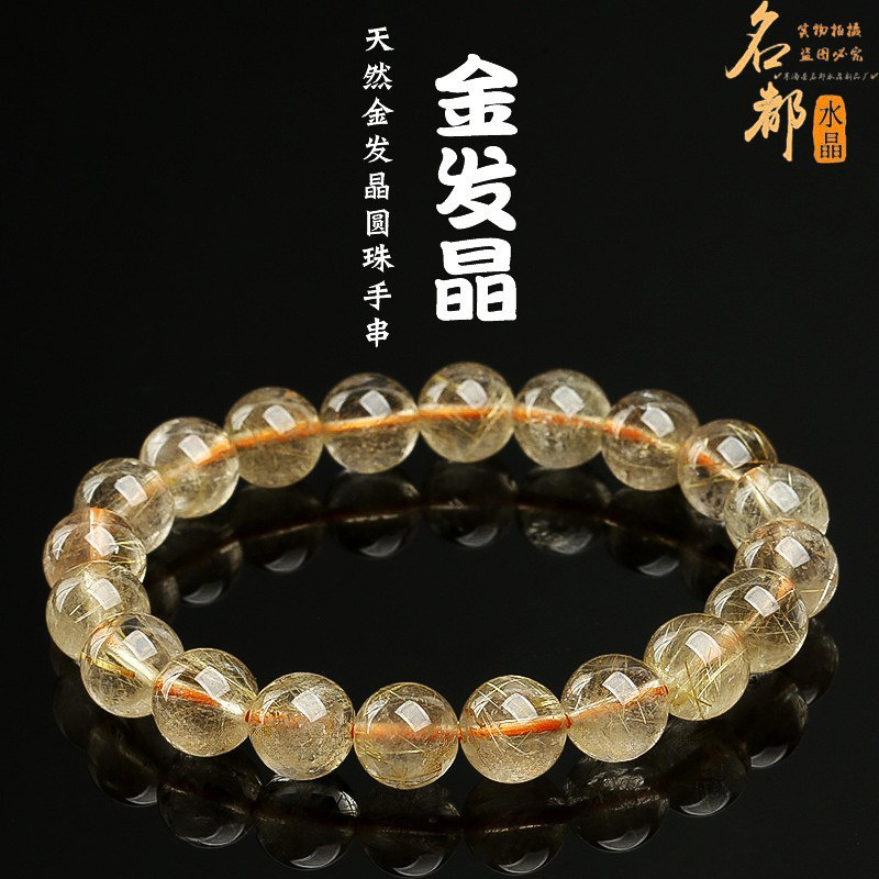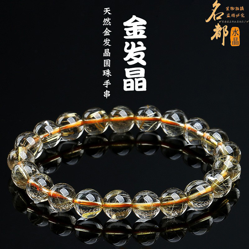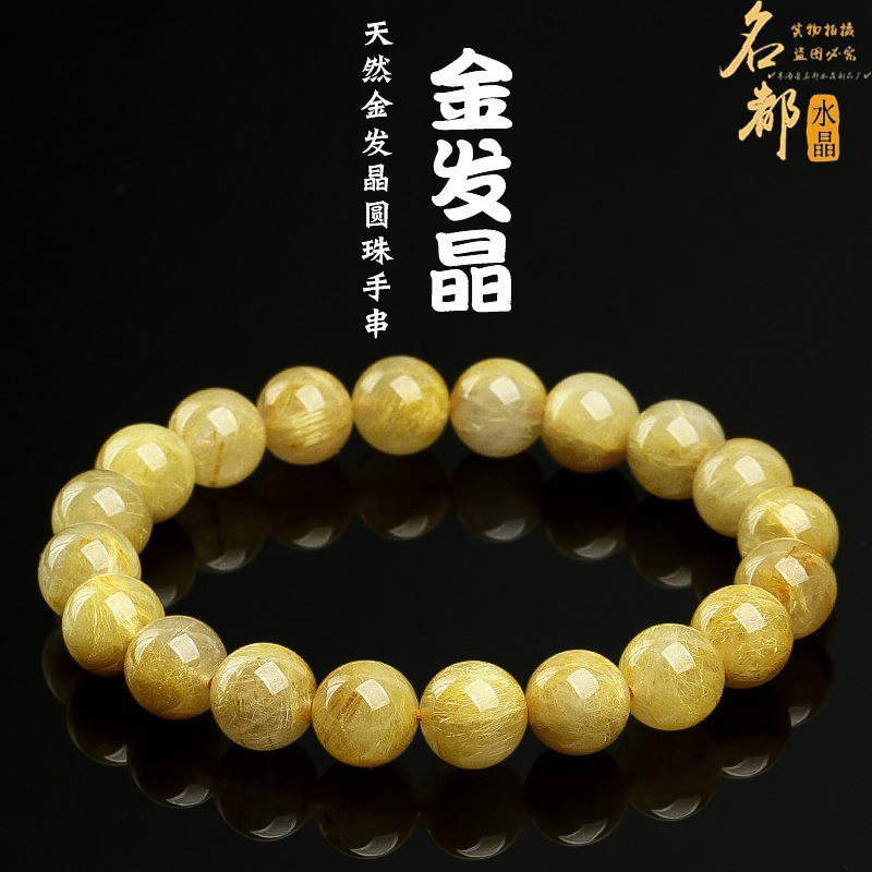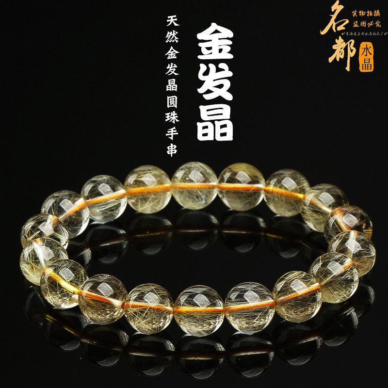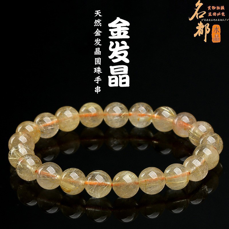 天然水晶 8A金发晶散珠 DIY饰品配件 金钛晶黄发晶圆珠半成品批发