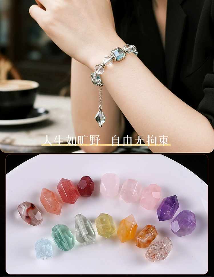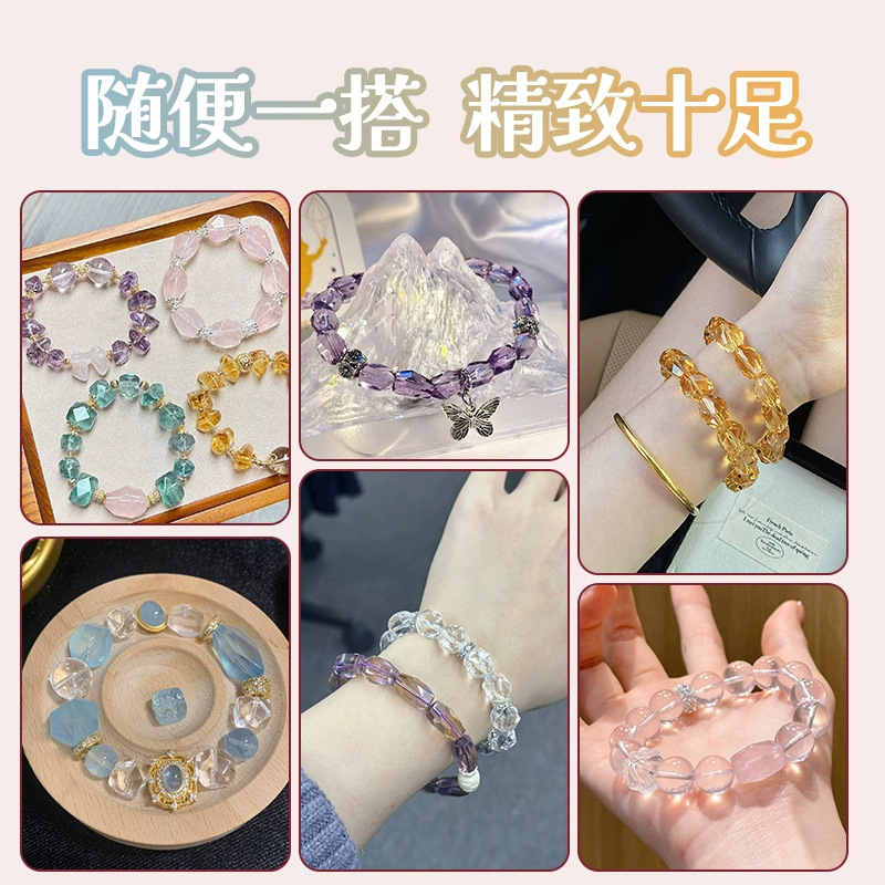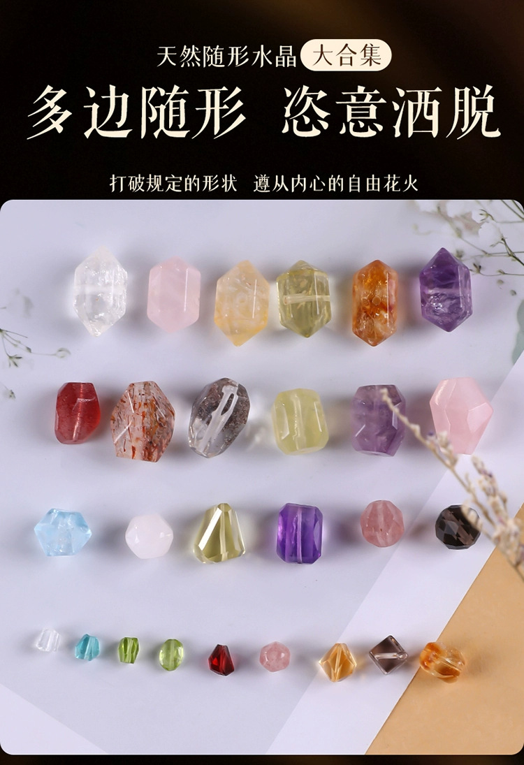 涛7A级天然随形水晶散珠粉紫白黄蓝不规则异形珠diy手串手链串珠