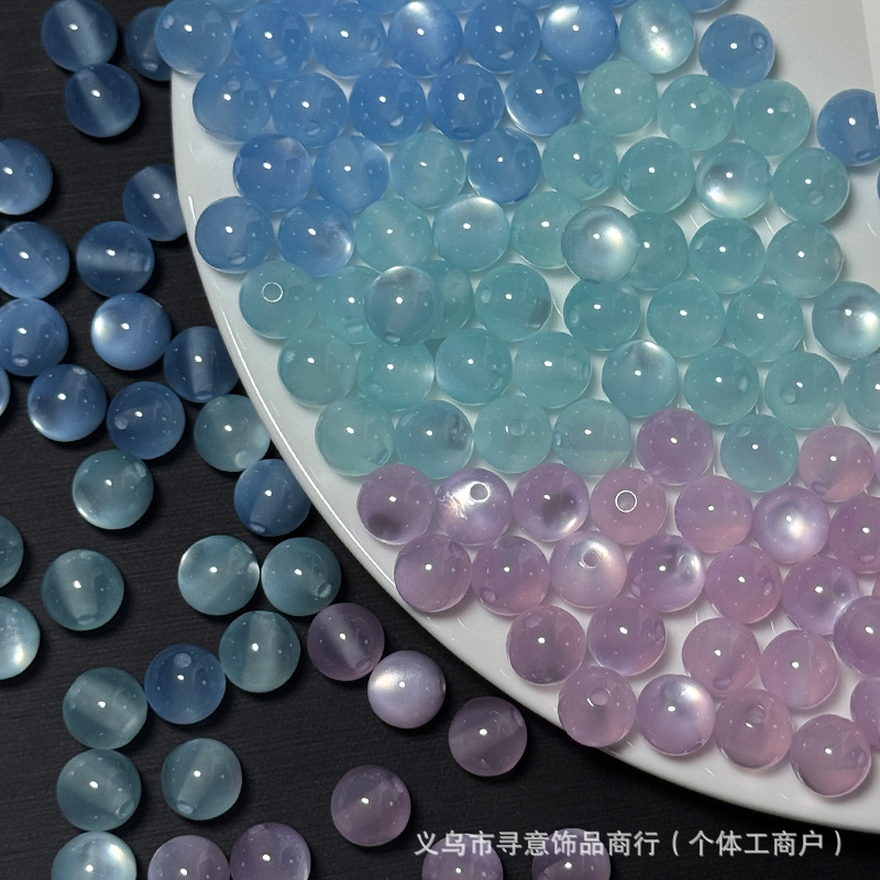 猫眼树脂珠圆珠12/8/10mm串珠手工diy手链项链饰品配件批发散珠子