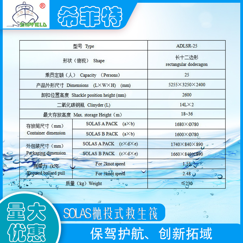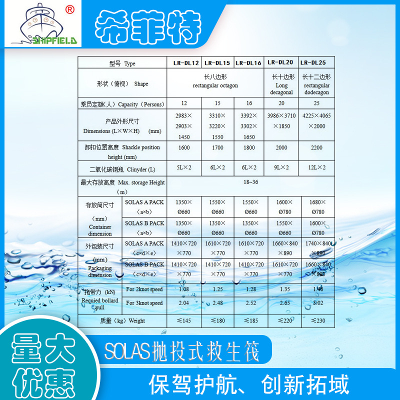 可吊式气胀式救生筏12-37人船用筏 CCS认证SOLAS标准充气式便携式