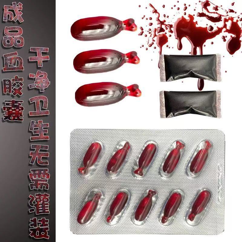 万圣节整蛊恶搞人造假血胶囊吐血胶囊演戏道具假血血浆包假血批发