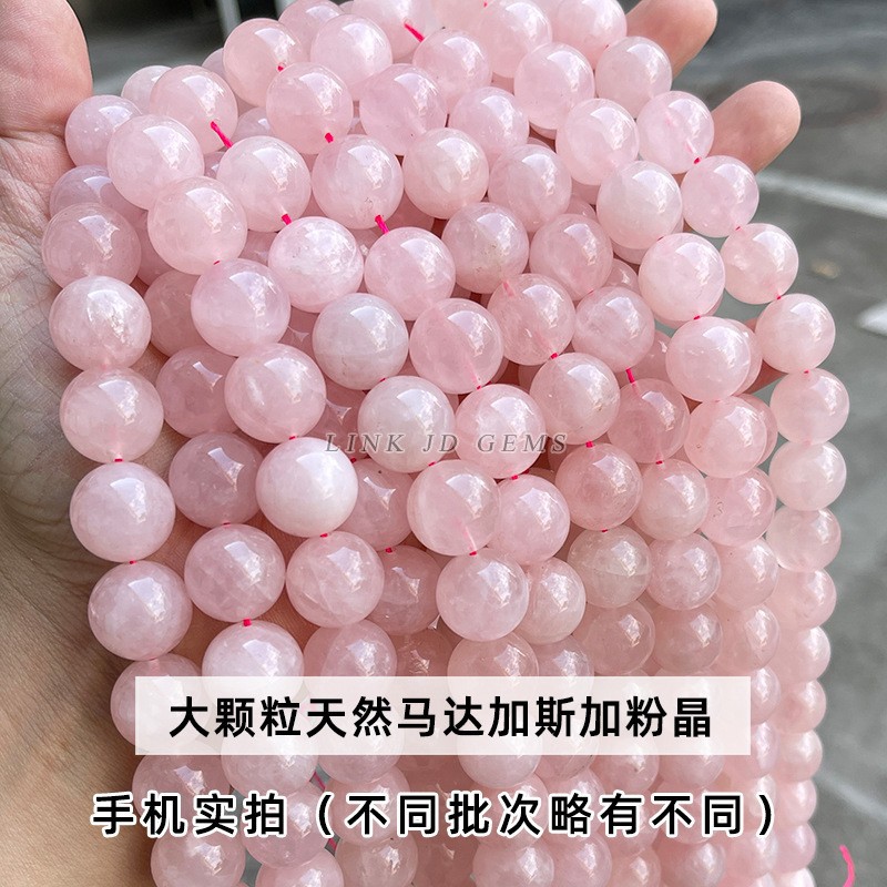 晶德珠宝 天然粉水晶散珠手链半成品圆珠手工diy饰品配件散珠批发