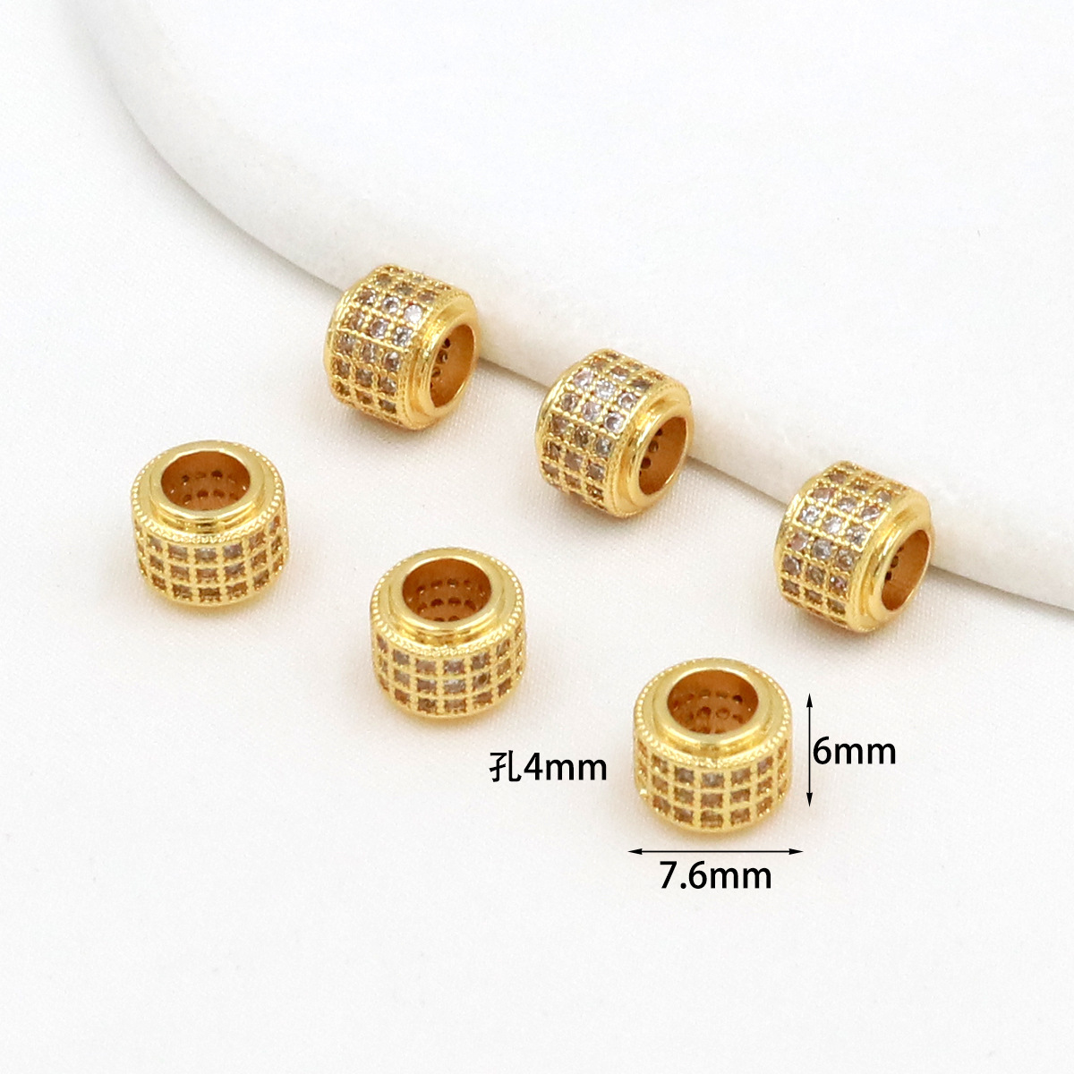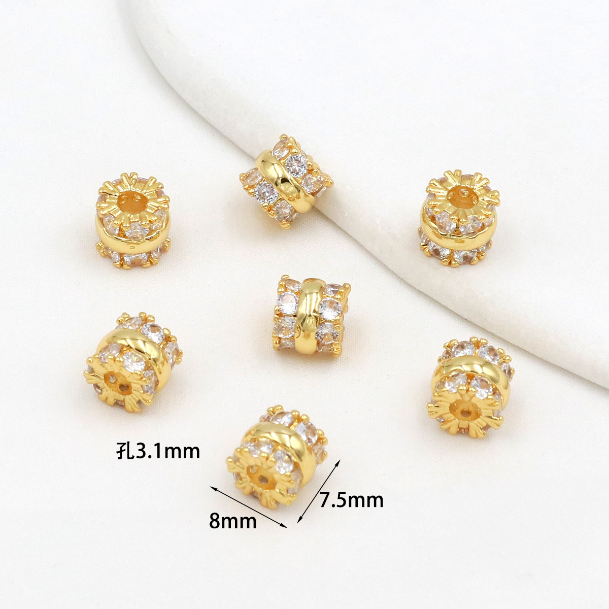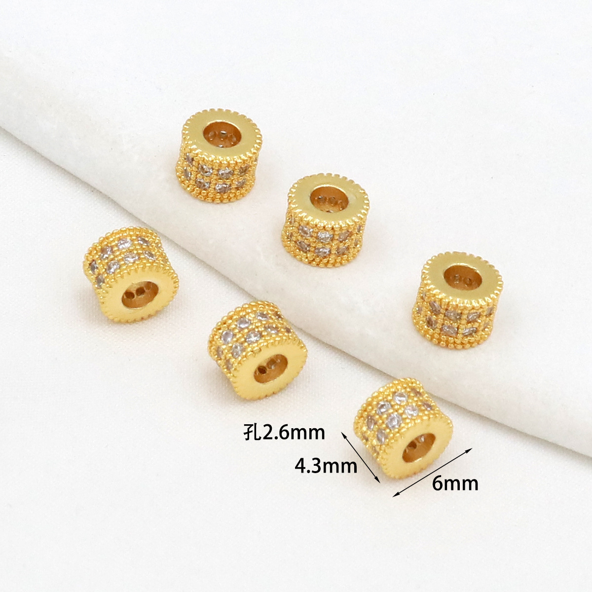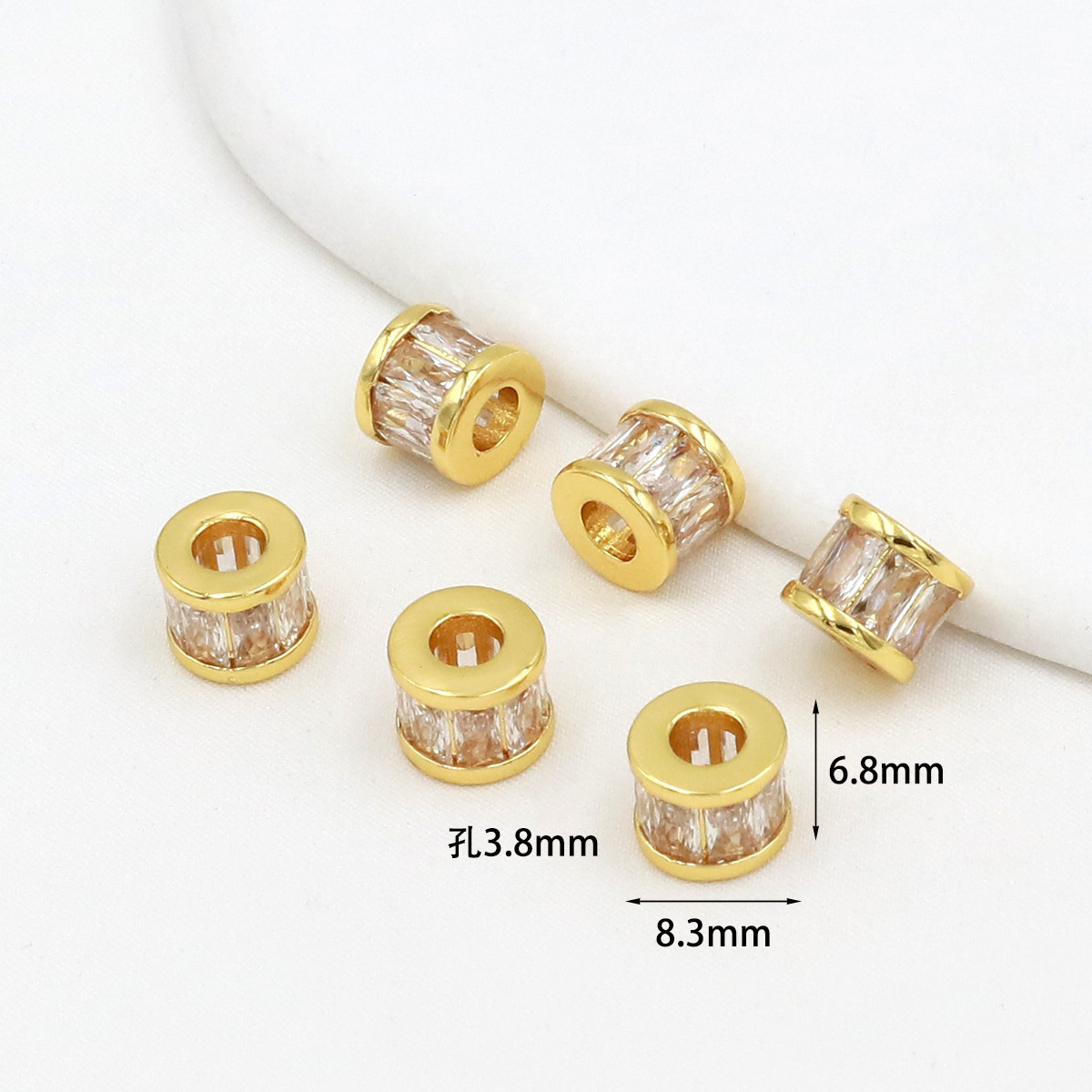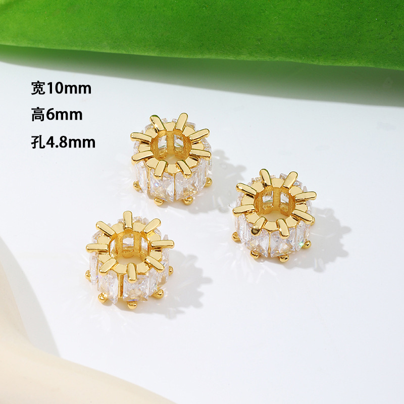 保色18k真金微镶锆石桶珠路路通孔小蛮腰水晶手串diy隔珠配珠C45