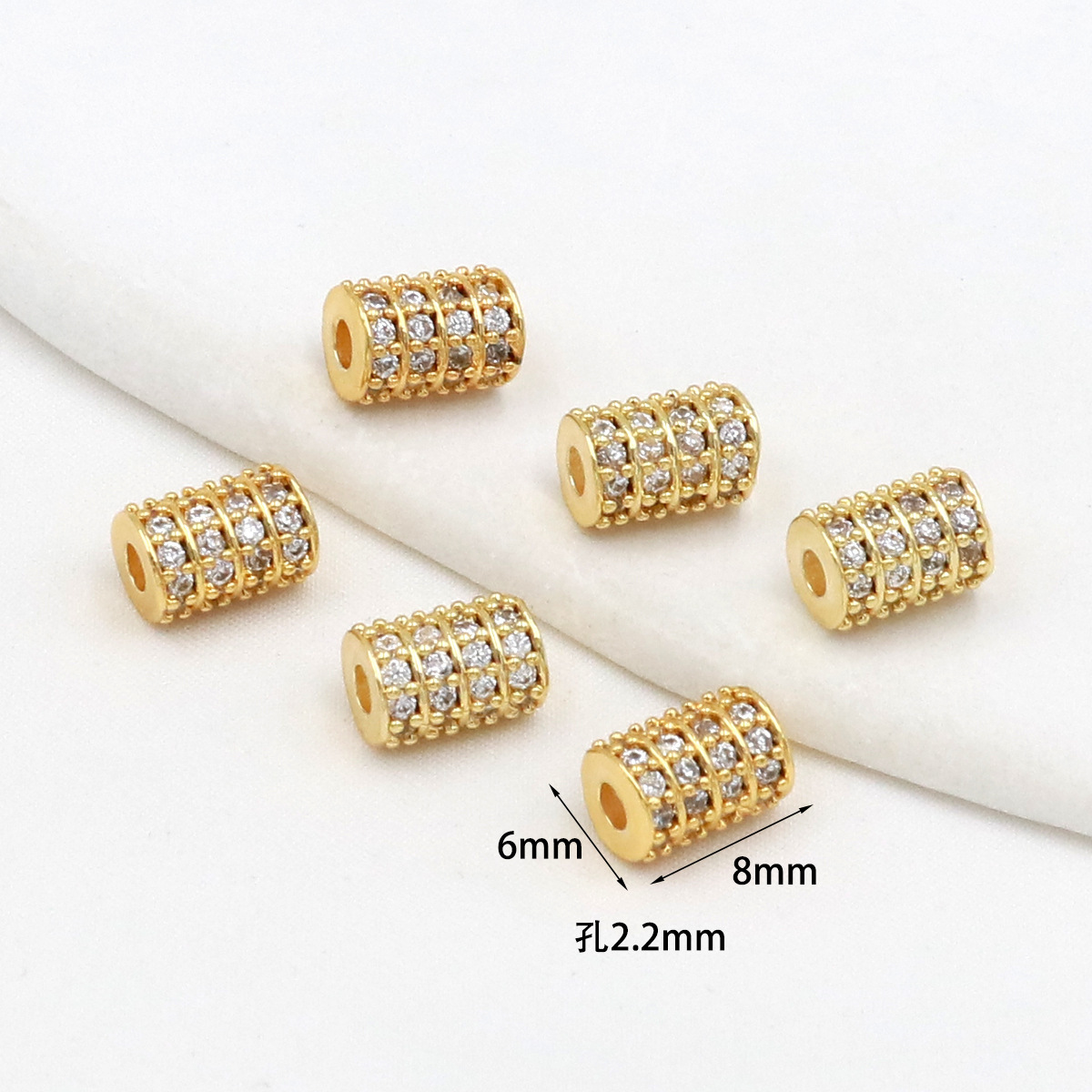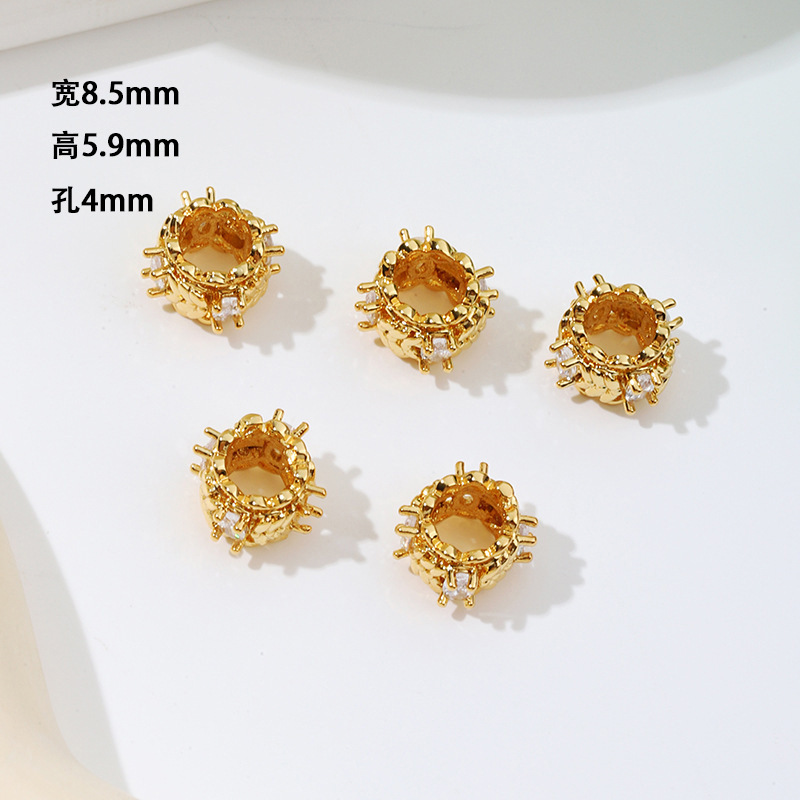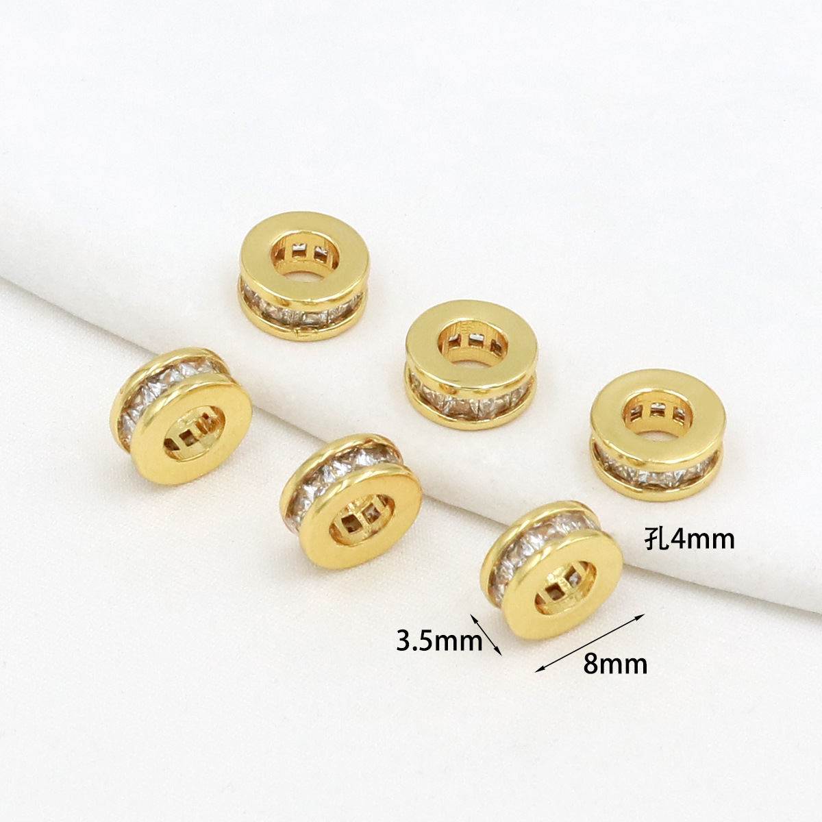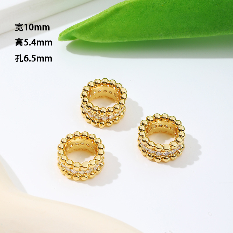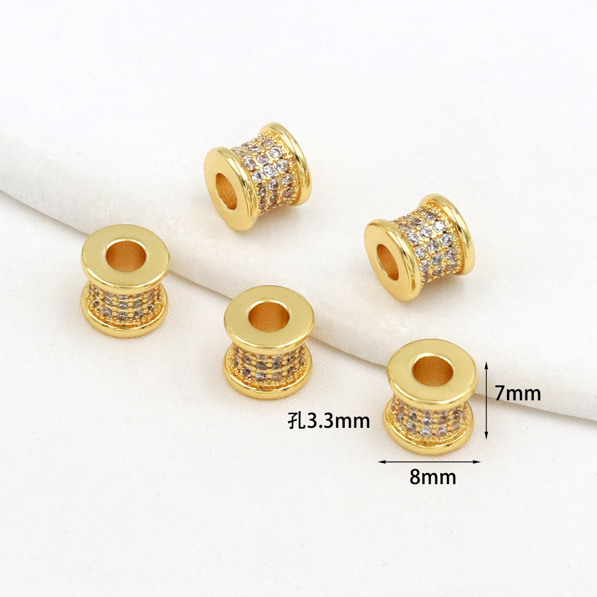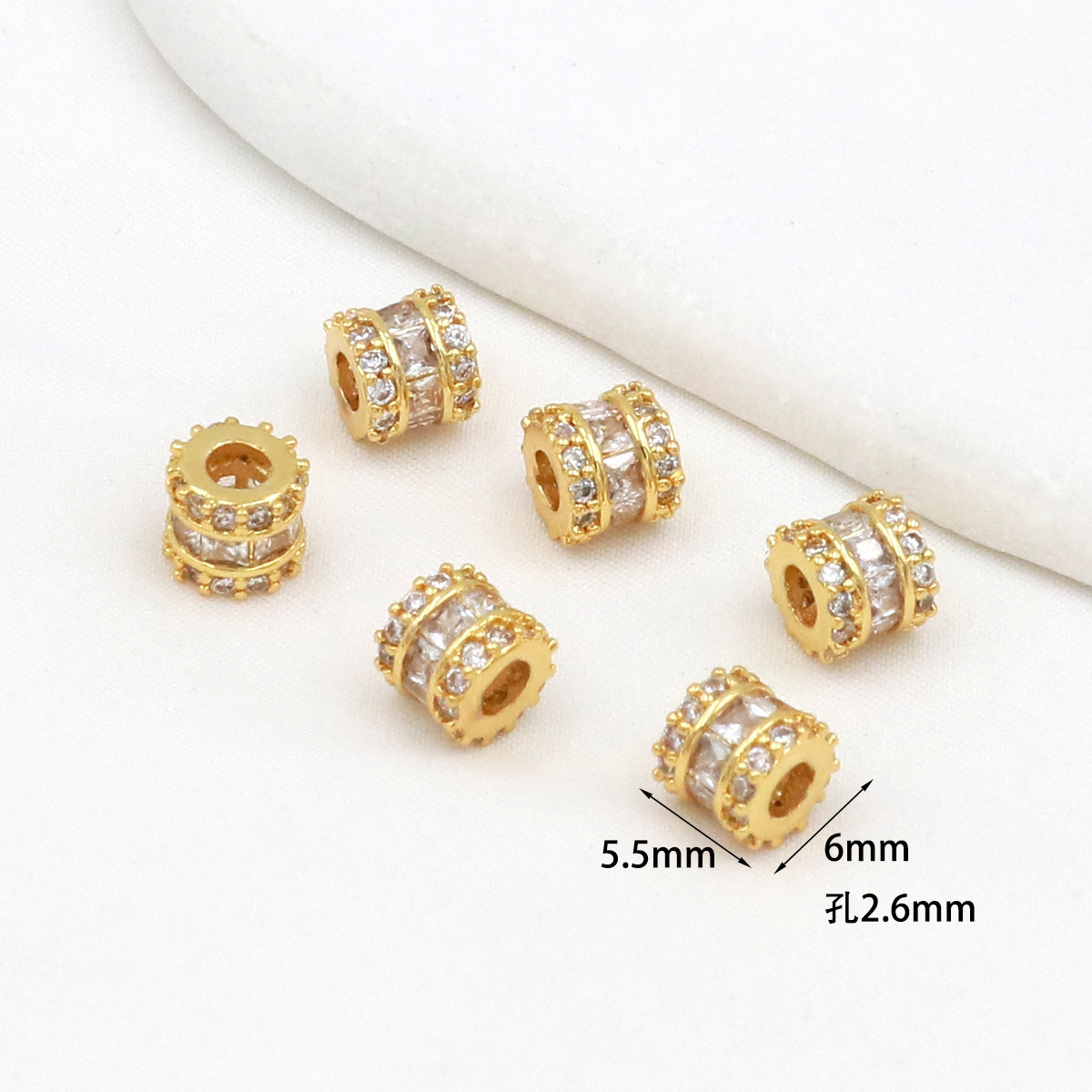 保色18k真金微镶锆石桶珠路路通孔小蛮腰水晶手串diy隔珠配珠C45