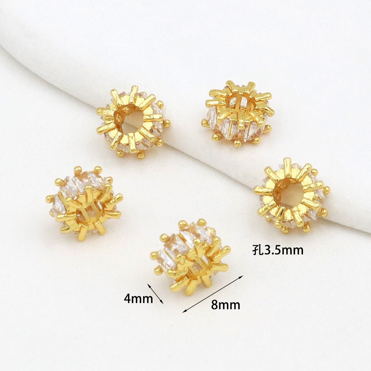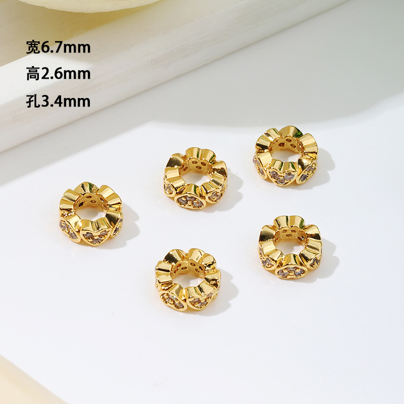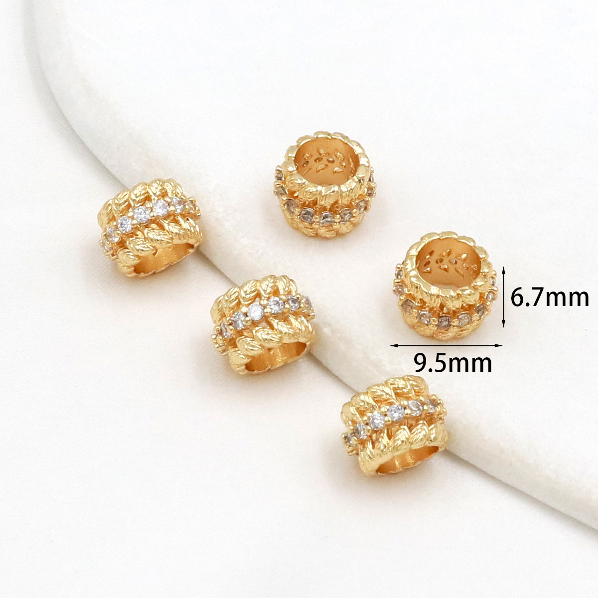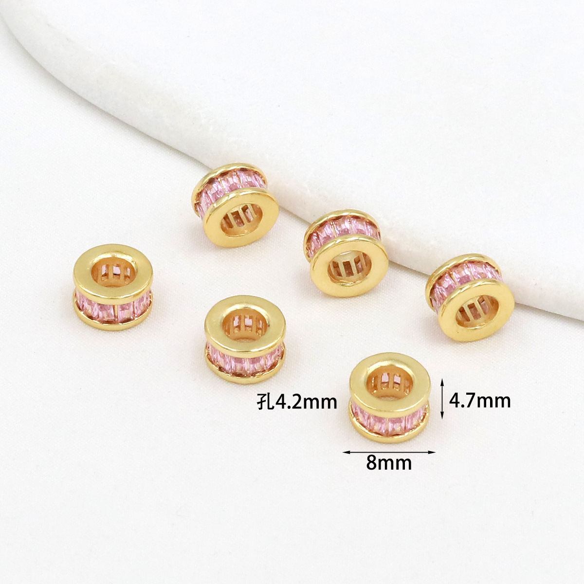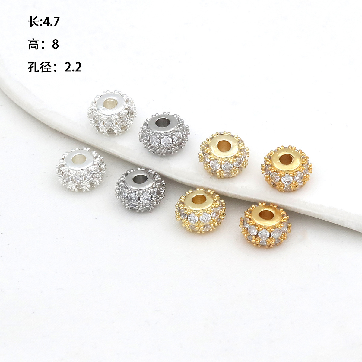 保色18k真金微镶锆石桶珠路路通孔小蛮腰水晶手串diy隔珠配珠C45
