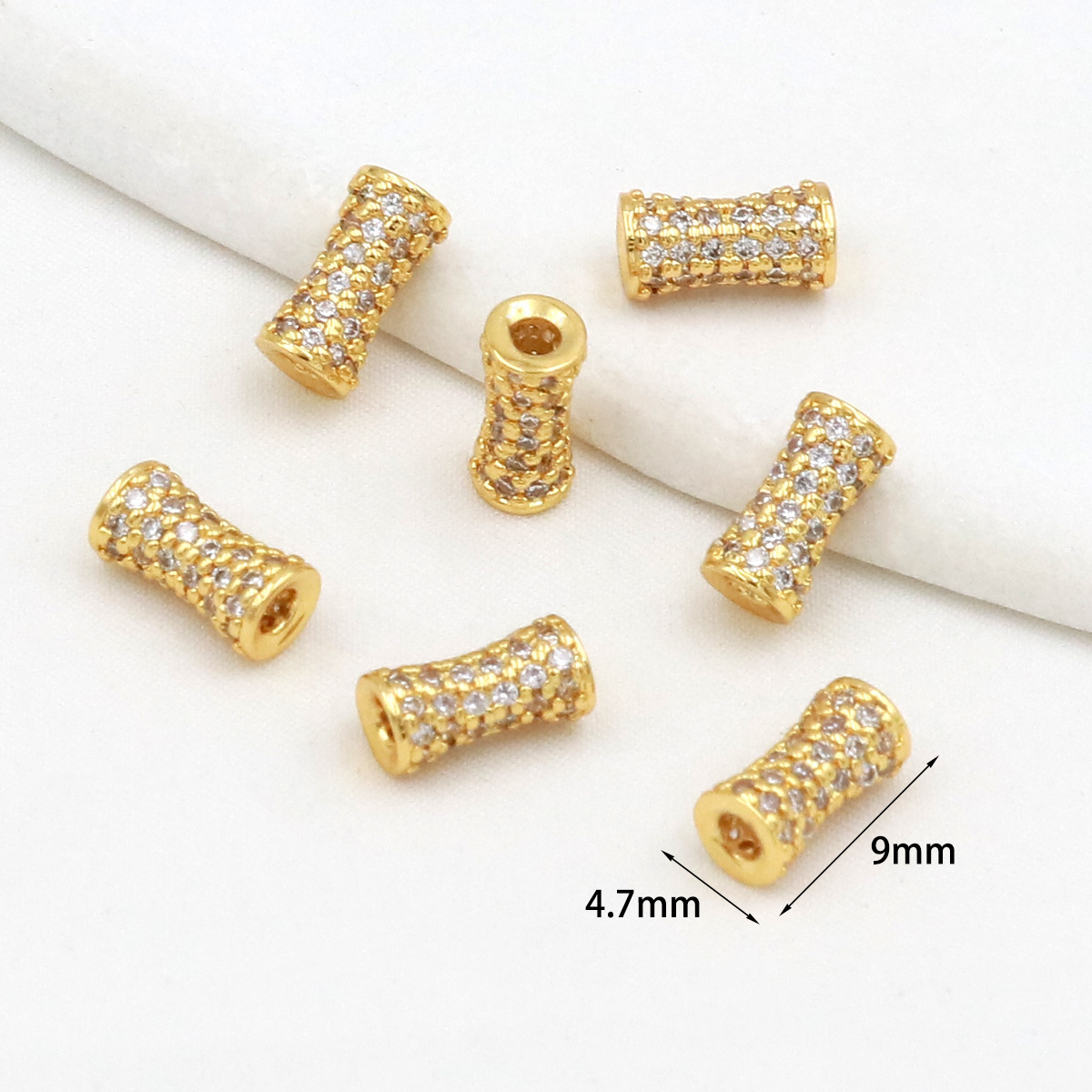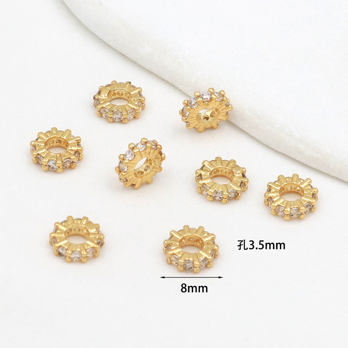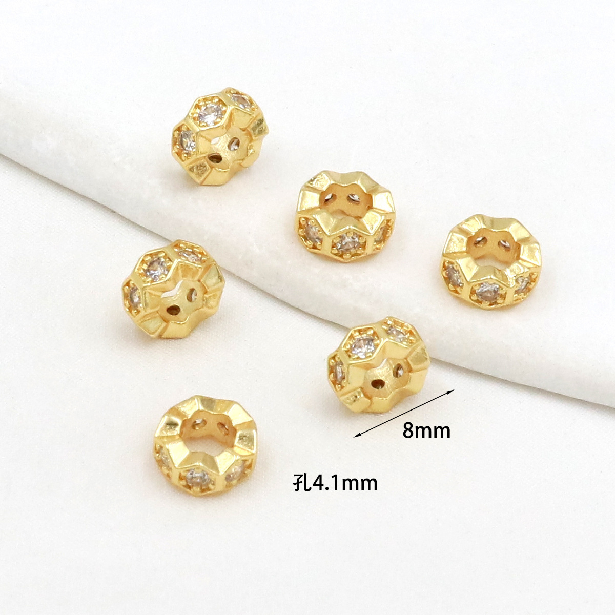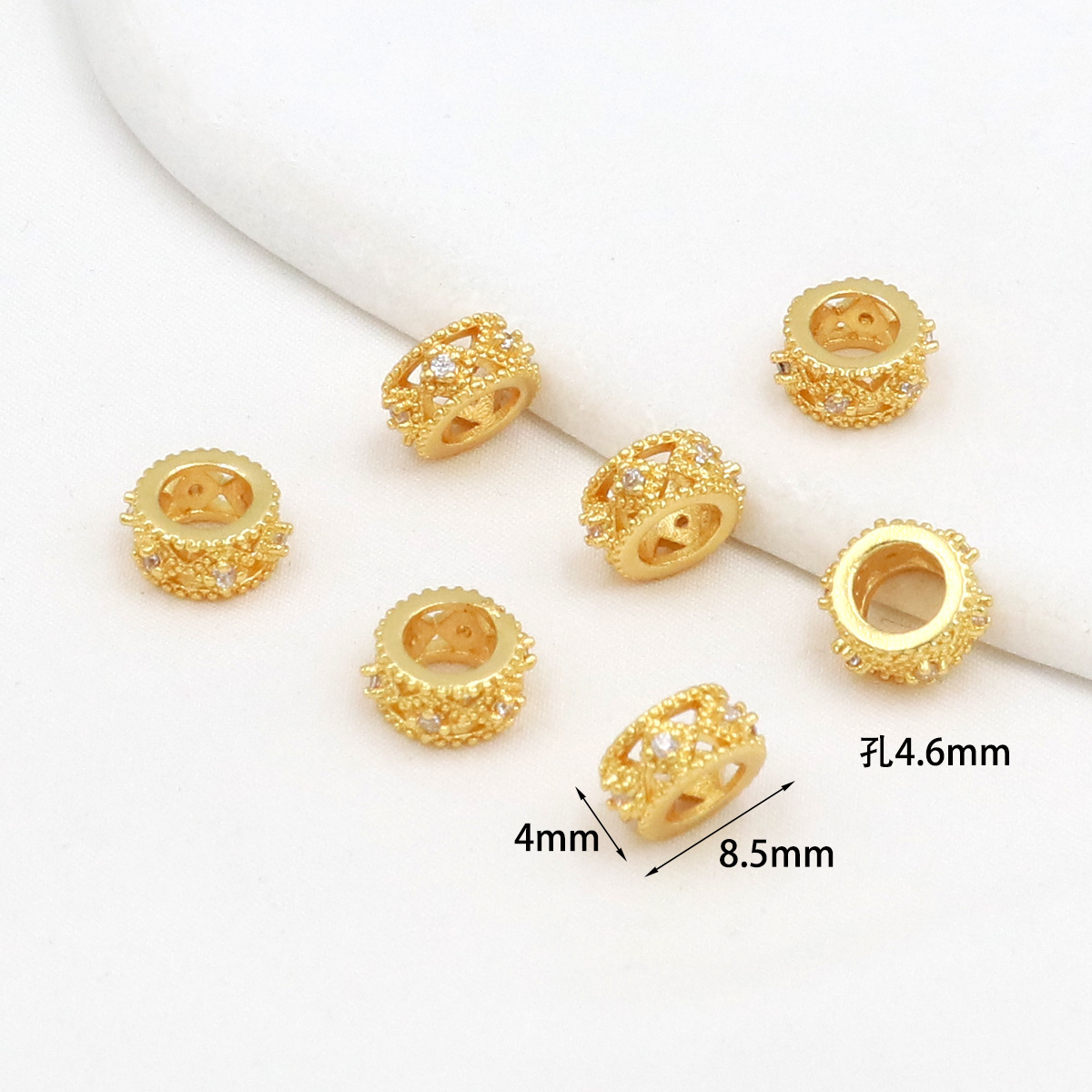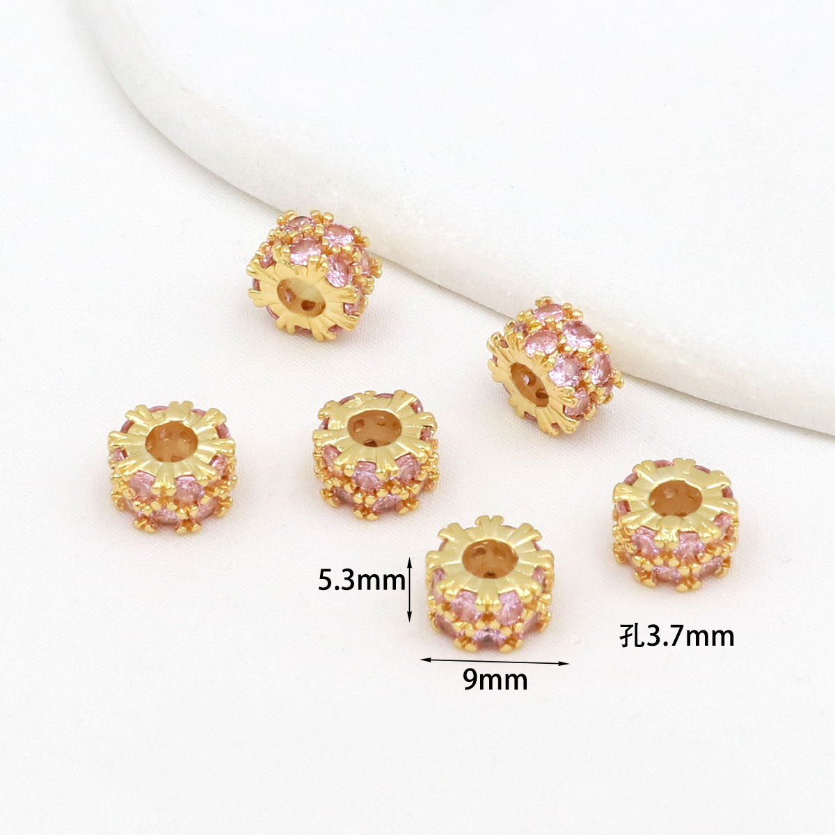 保色18k真金微镶锆石桶珠路路通孔小蛮腰水晶手串diy隔珠配珠C45