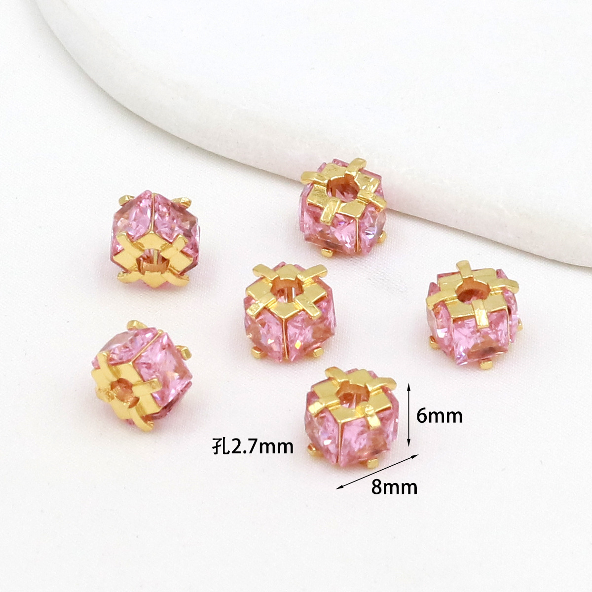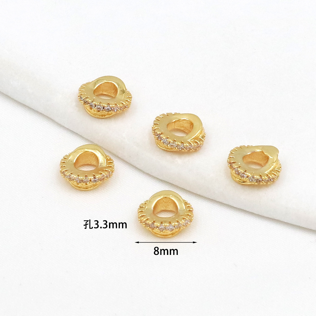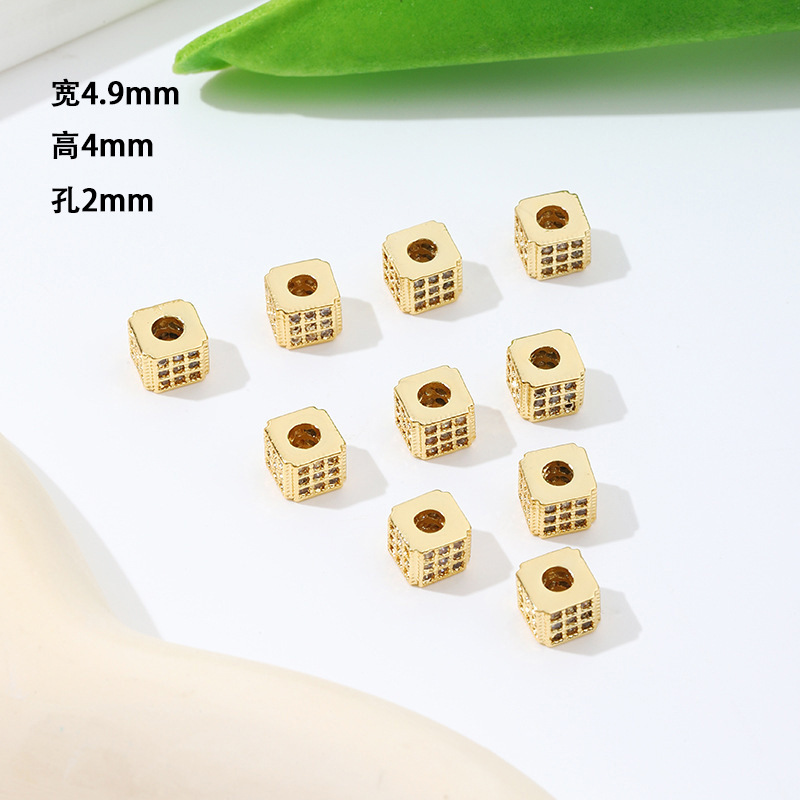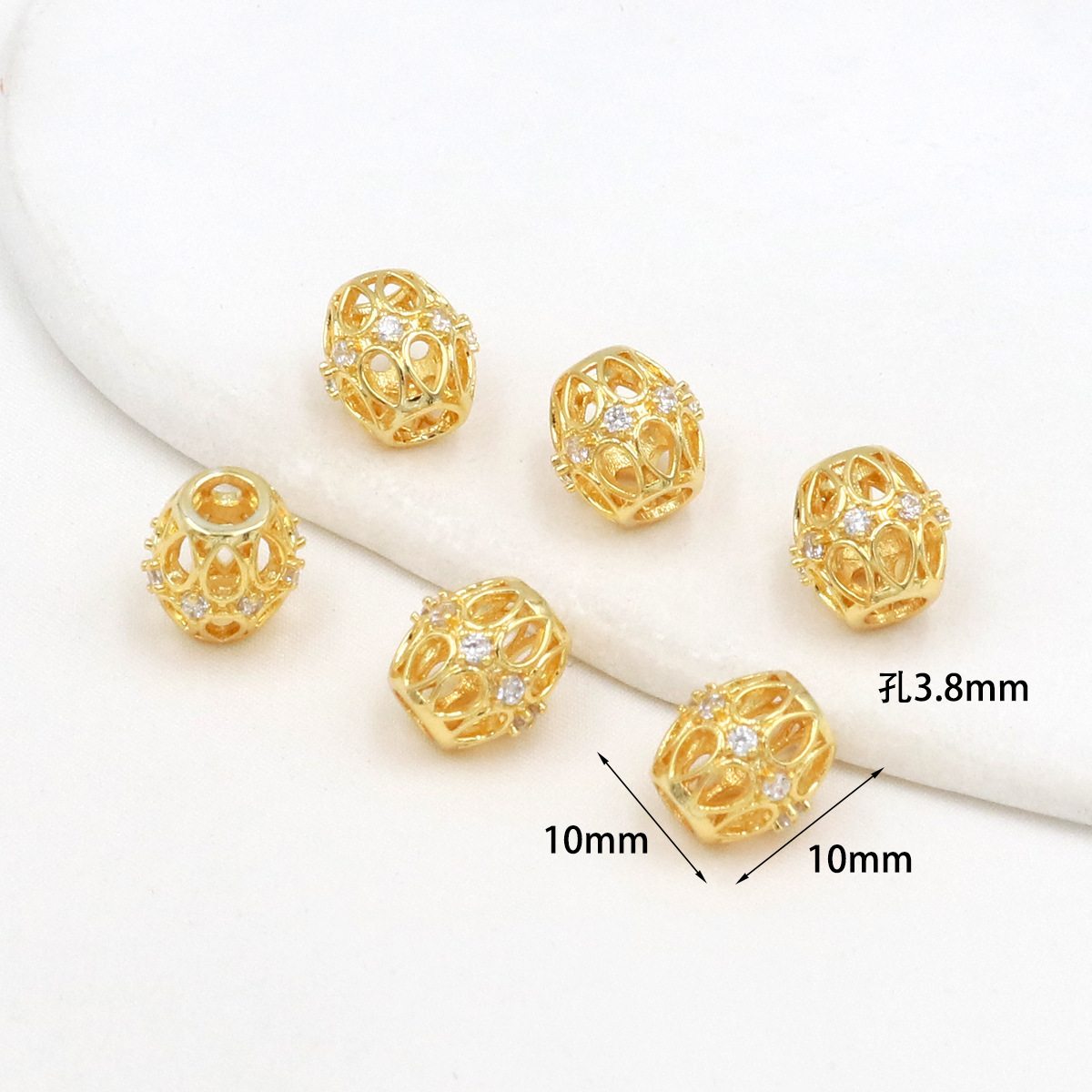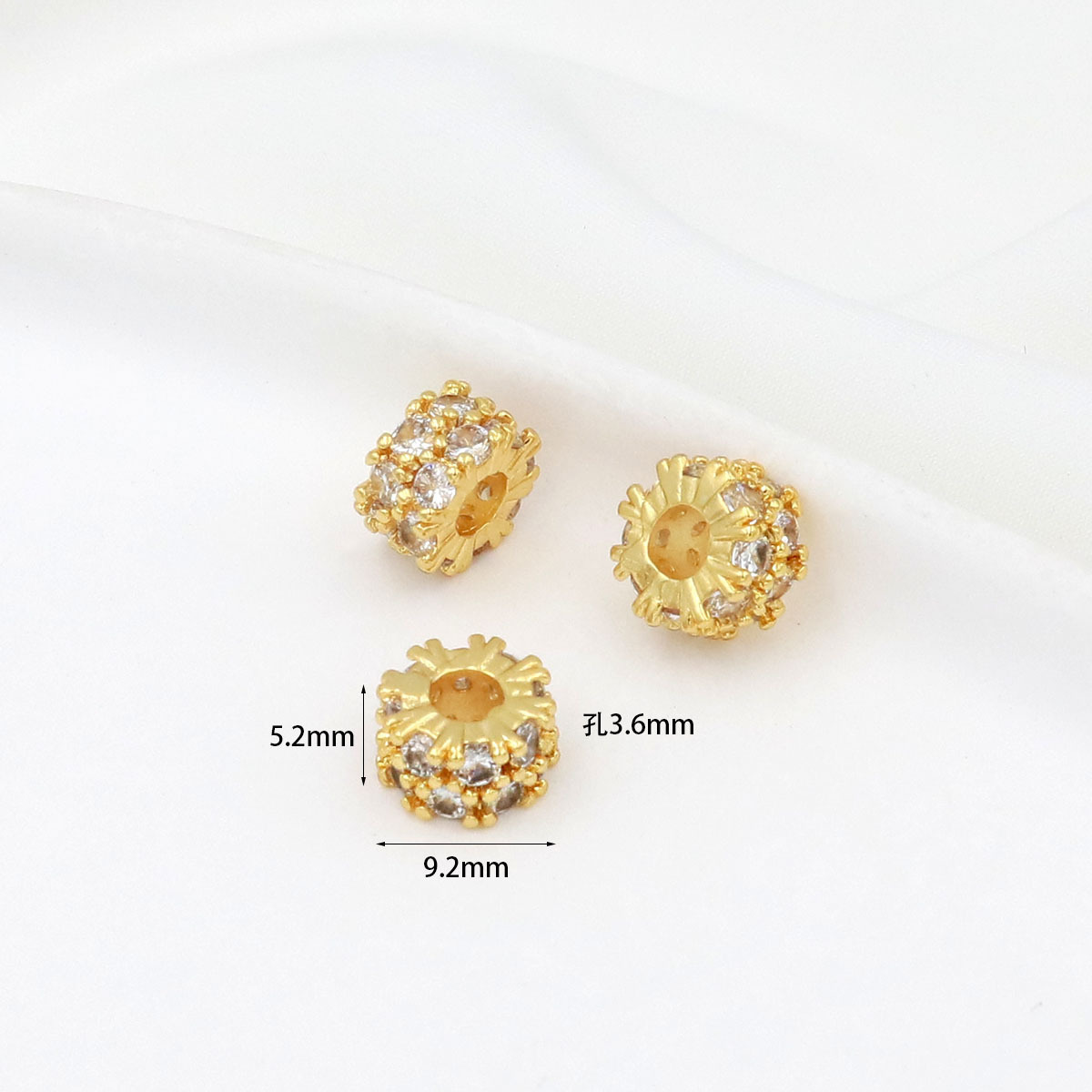 保色18k真金微镶锆石桶珠路路通孔小蛮腰水晶手串diy隔珠配珠C45