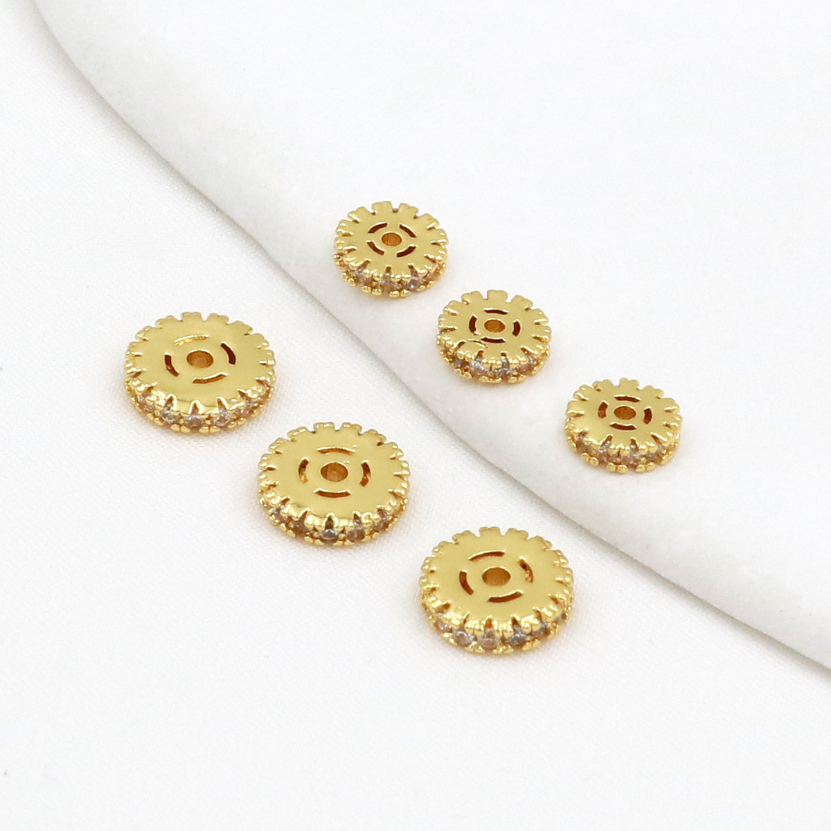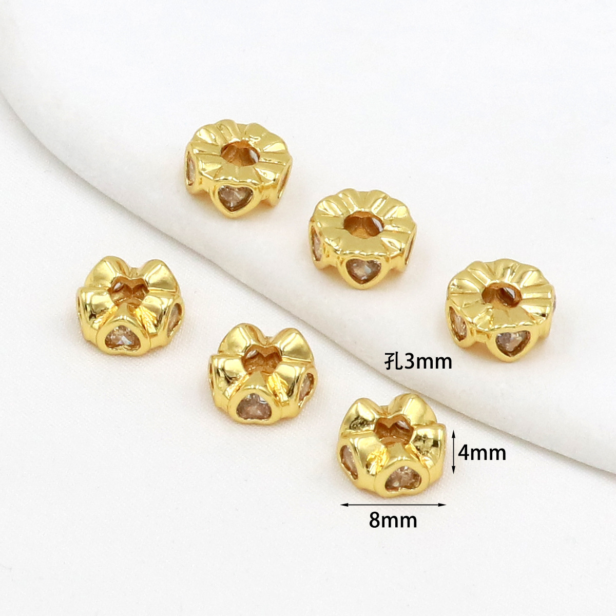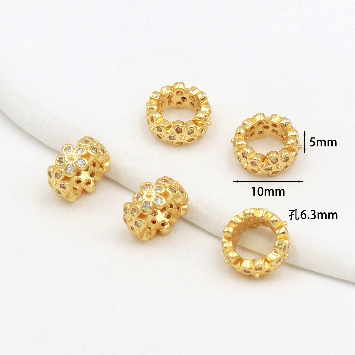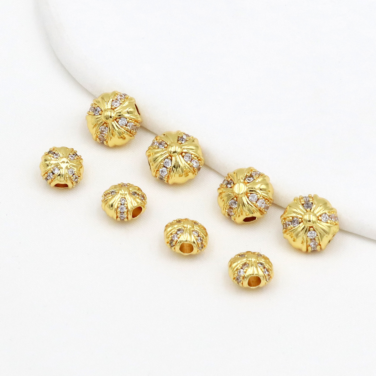 保色18k真金微镶锆石桶珠路路通孔小蛮腰水晶手串diy隔珠配珠C45