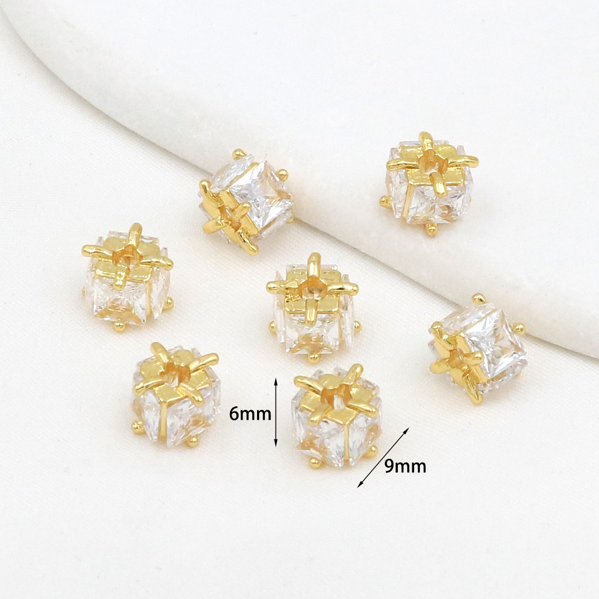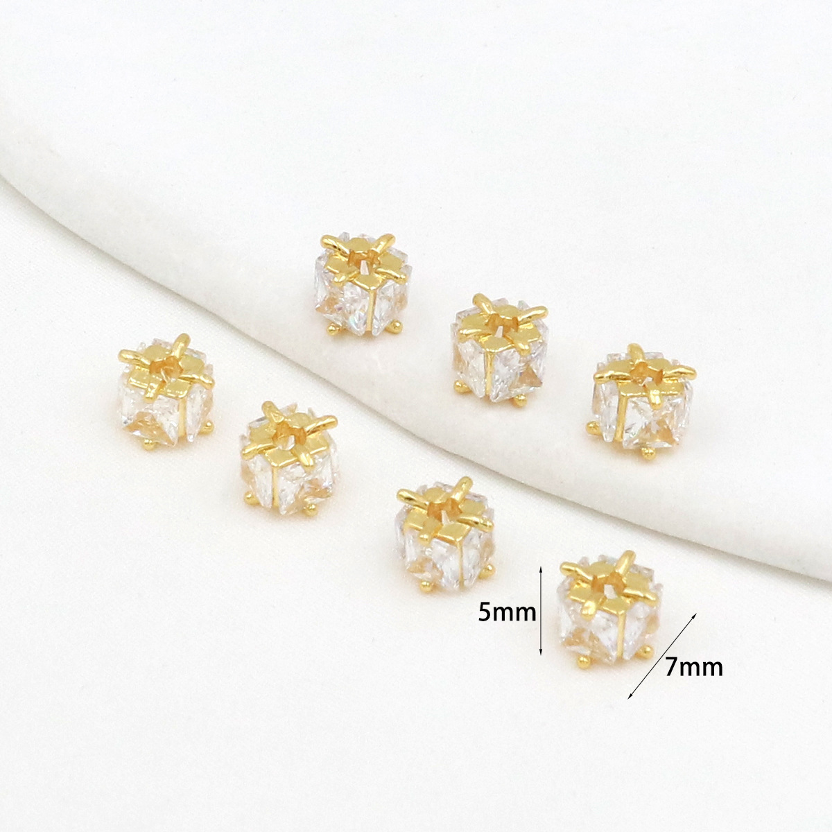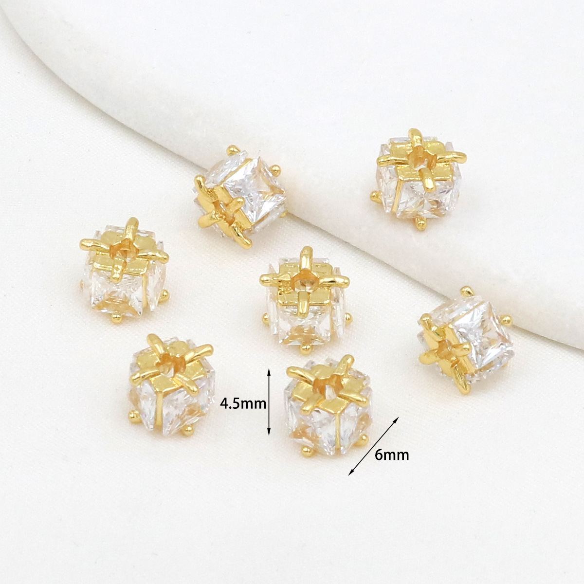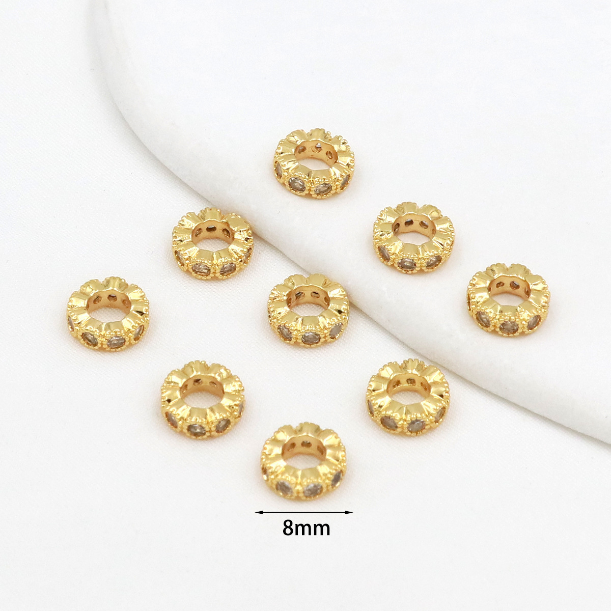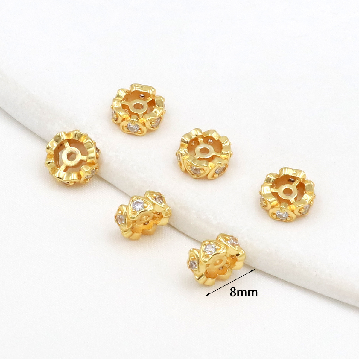 保色18k真金微镶锆石桶珠路路通孔小蛮腰水晶手串diy隔珠配珠C45