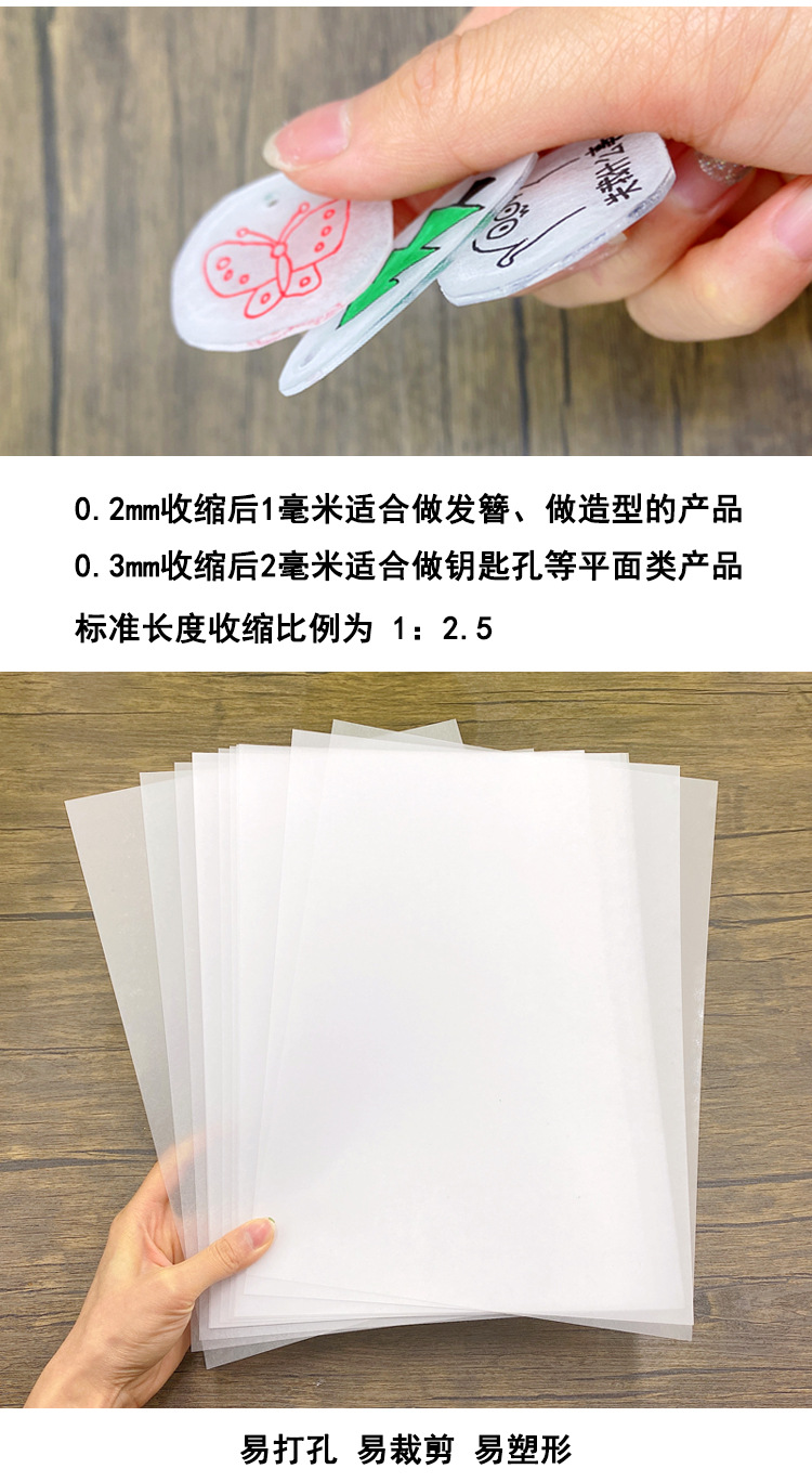 透明热缩片手工diy纸0.2/0.3mm半透明已打磨立体花发簪挂件可打印