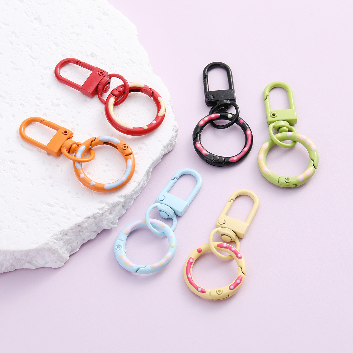 彩色烤漆钥匙圈门扣 diy饰品配件甜甜圈弹簧扣钥匙扣玩偶包包挂件