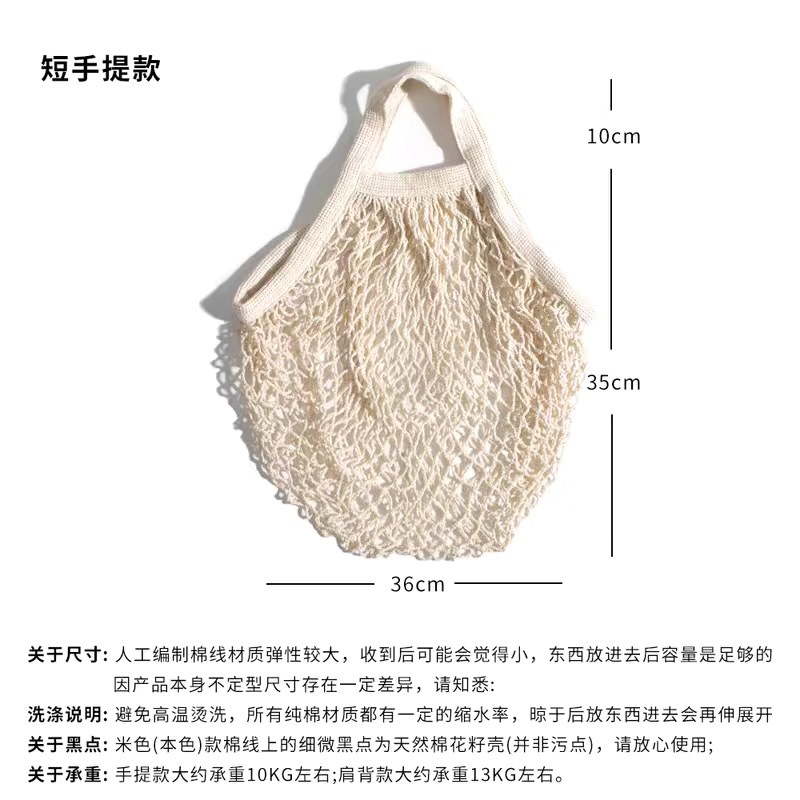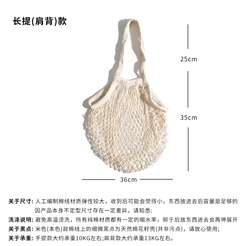 亚马逊现货纯棉袋子蔬菜水果沙滩编织网兜手提式超市购物袋批发