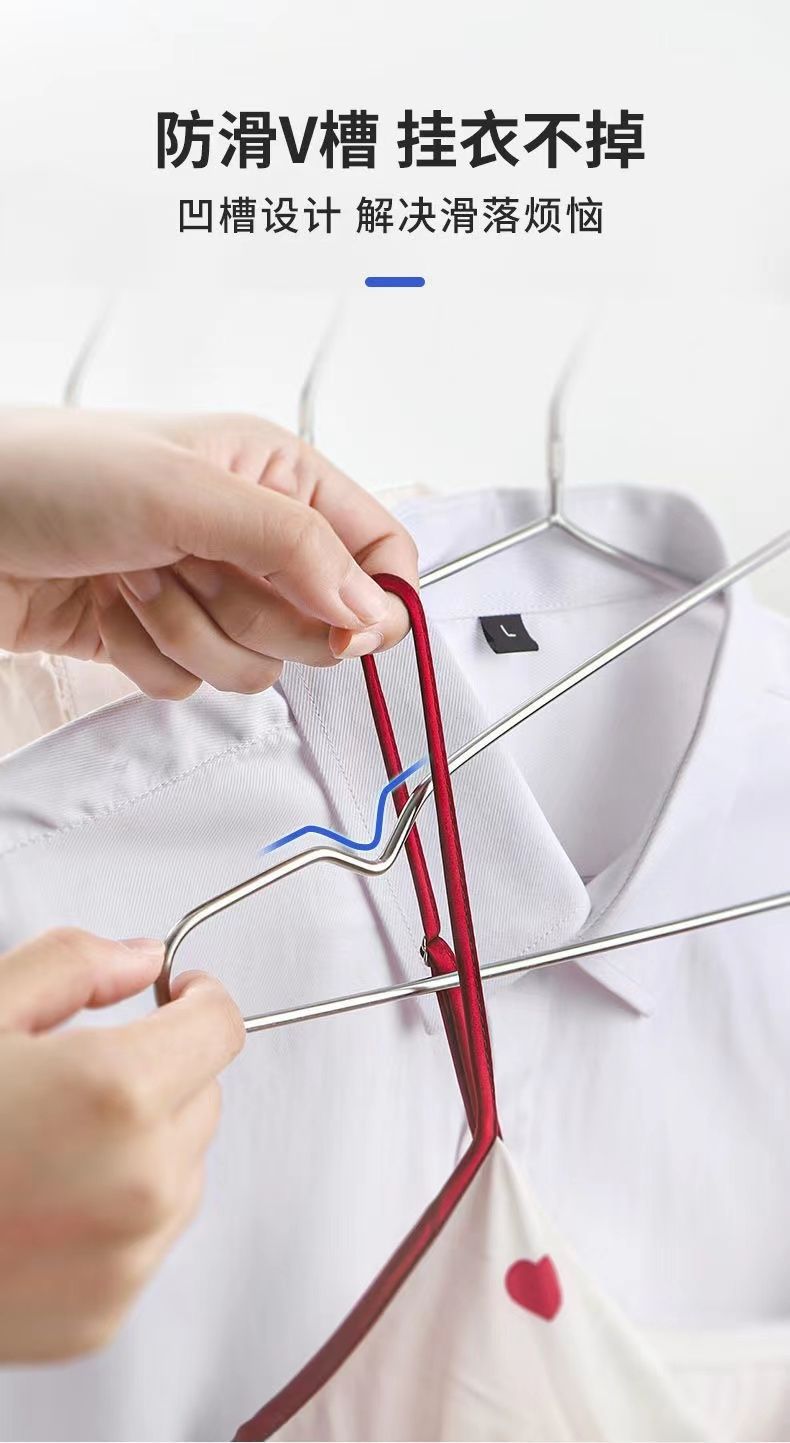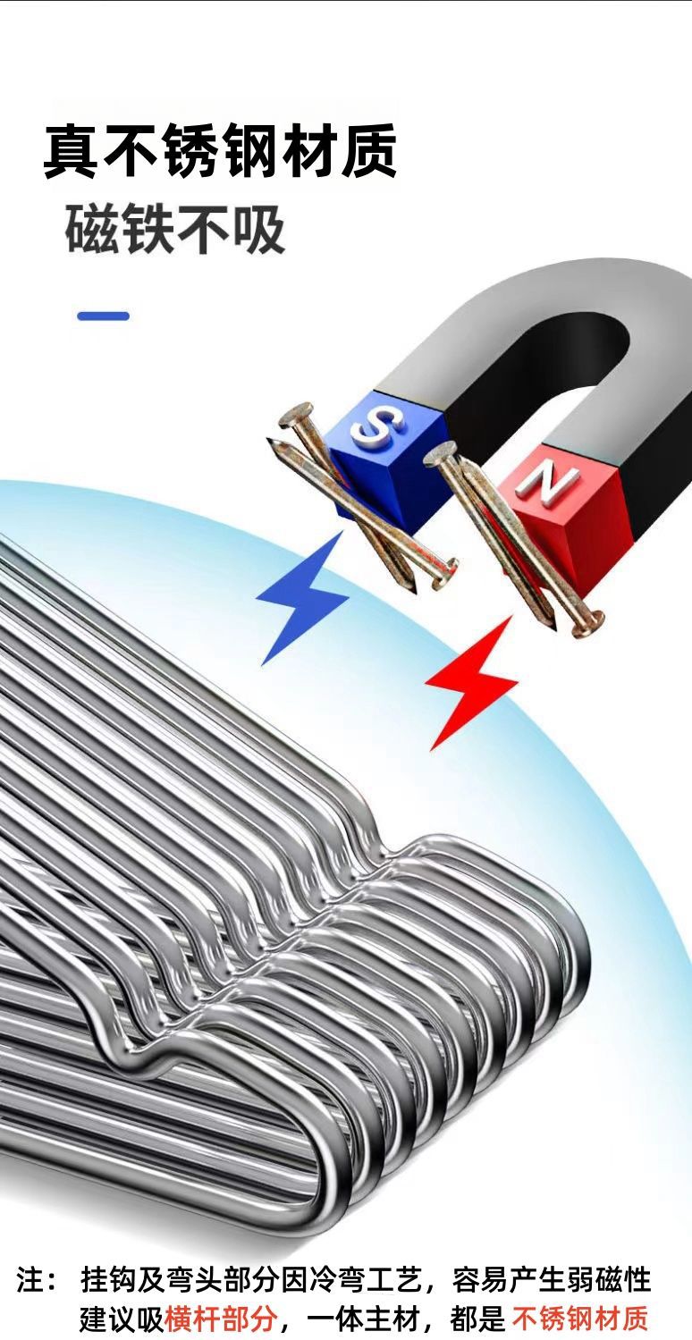 不锈钢晾衣架子加粗加厚晒衣服撑子家用挂衣架子无痕晾衣儿童挂钩
