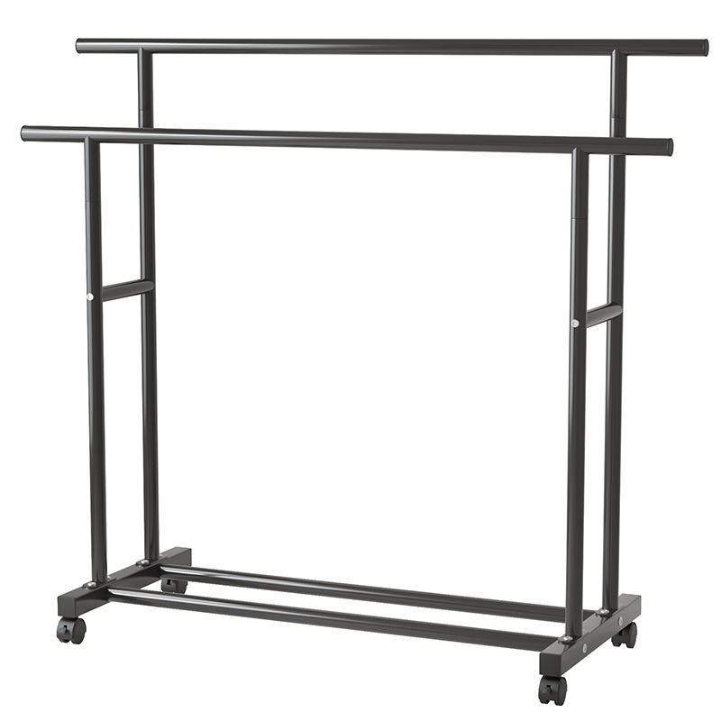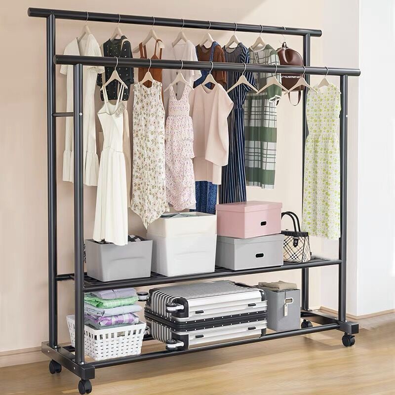 简易晾晒架落地式家用卧室阳台挂衣架双排碳钢移动晾衣架便捷双杆