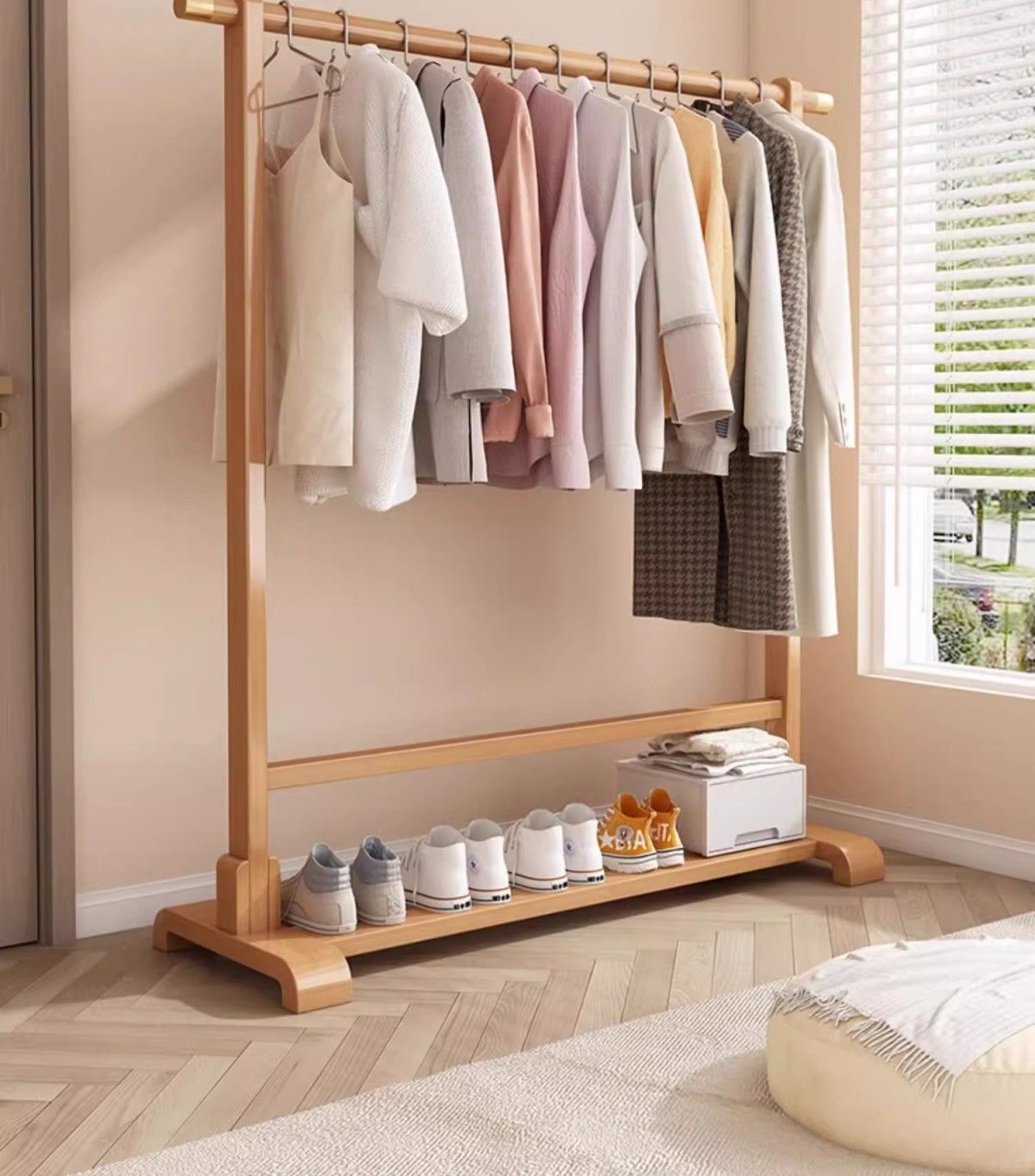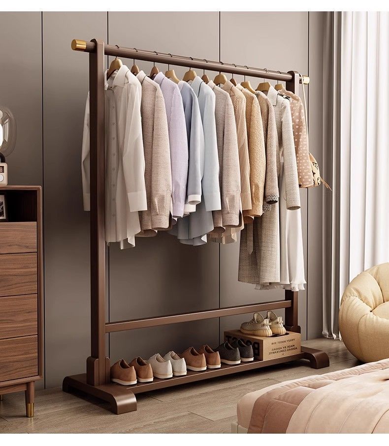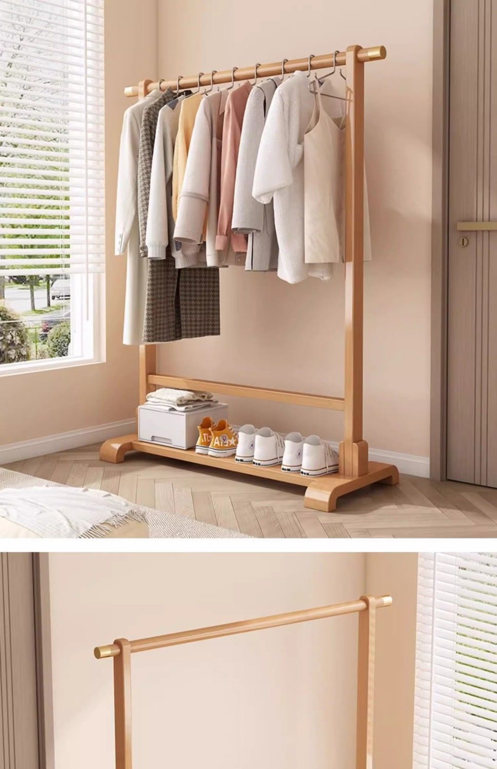 挂衣架落地卧室简易室内挂衣杆家用衣帽架简约现代实木挂衣服架子