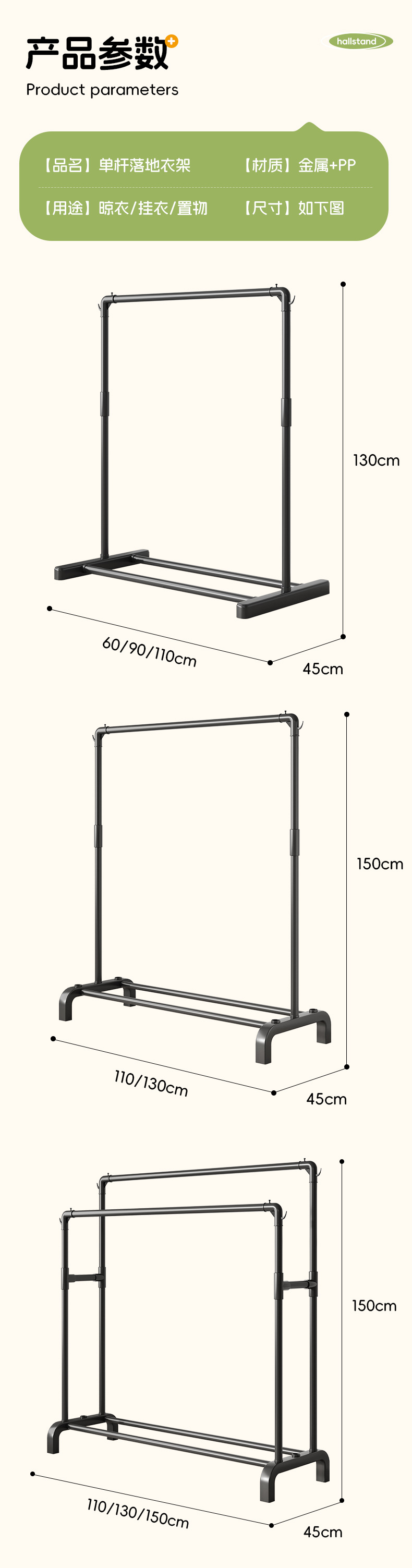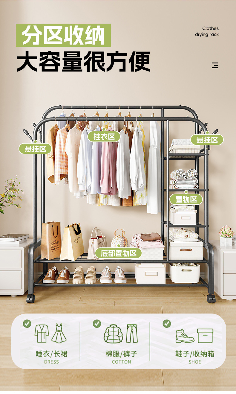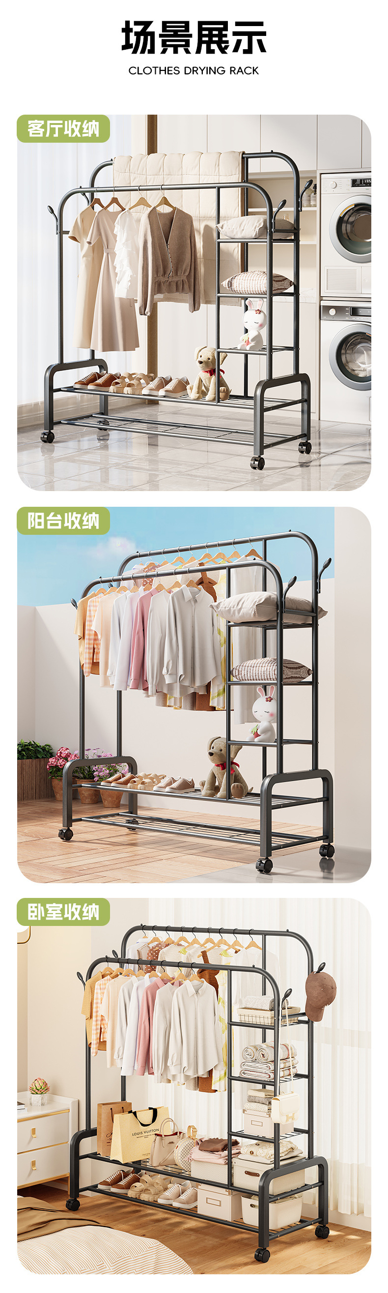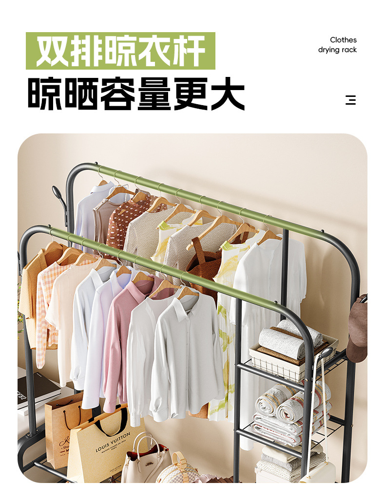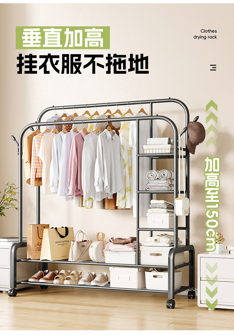 双杆晾衣架家用晾衣架落地式阳台简易立式挂衣架子落地置物晾衣架