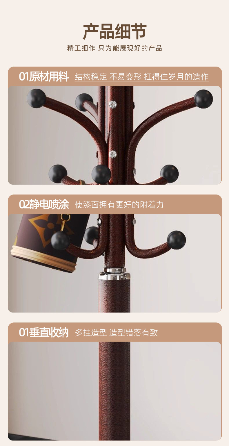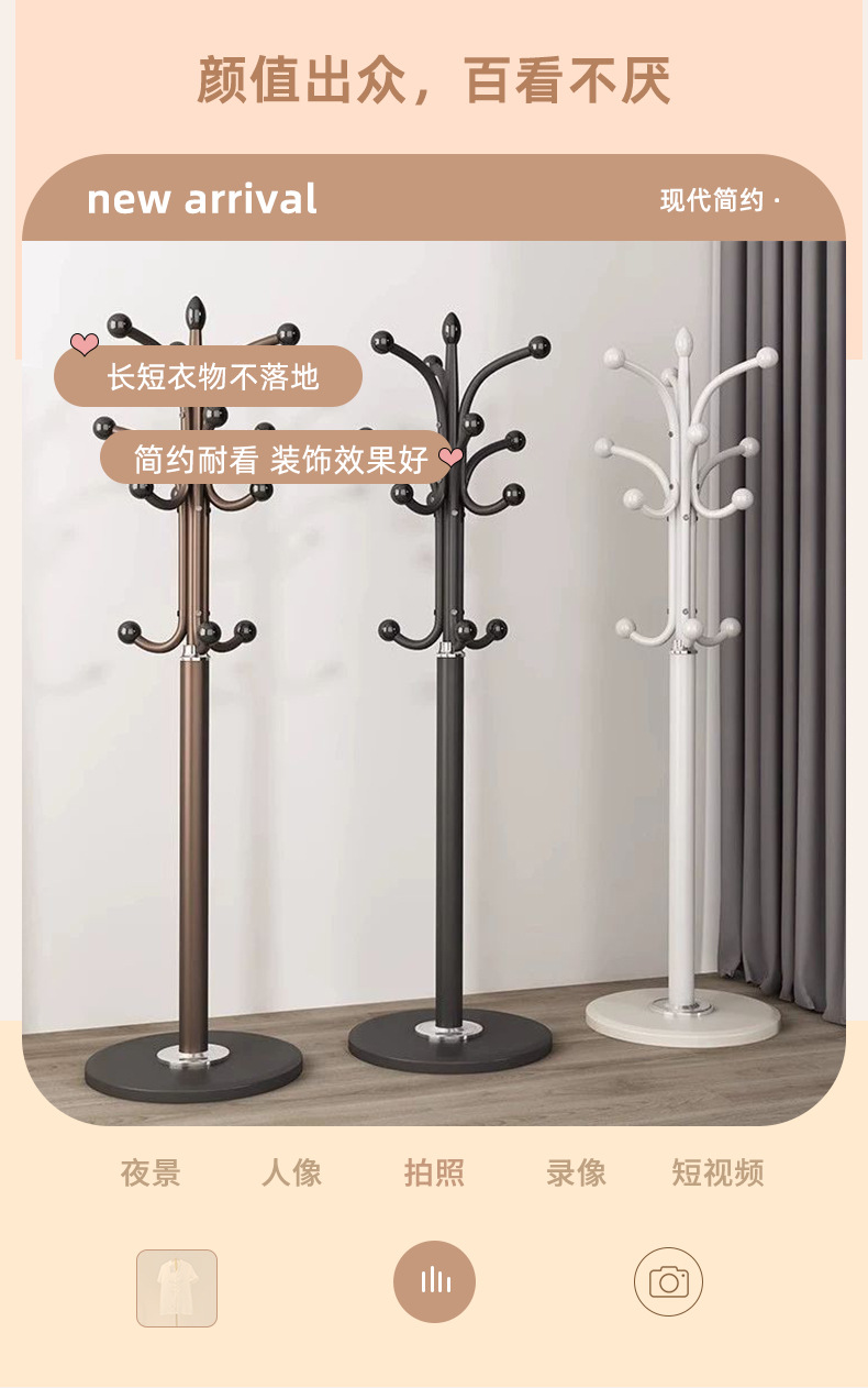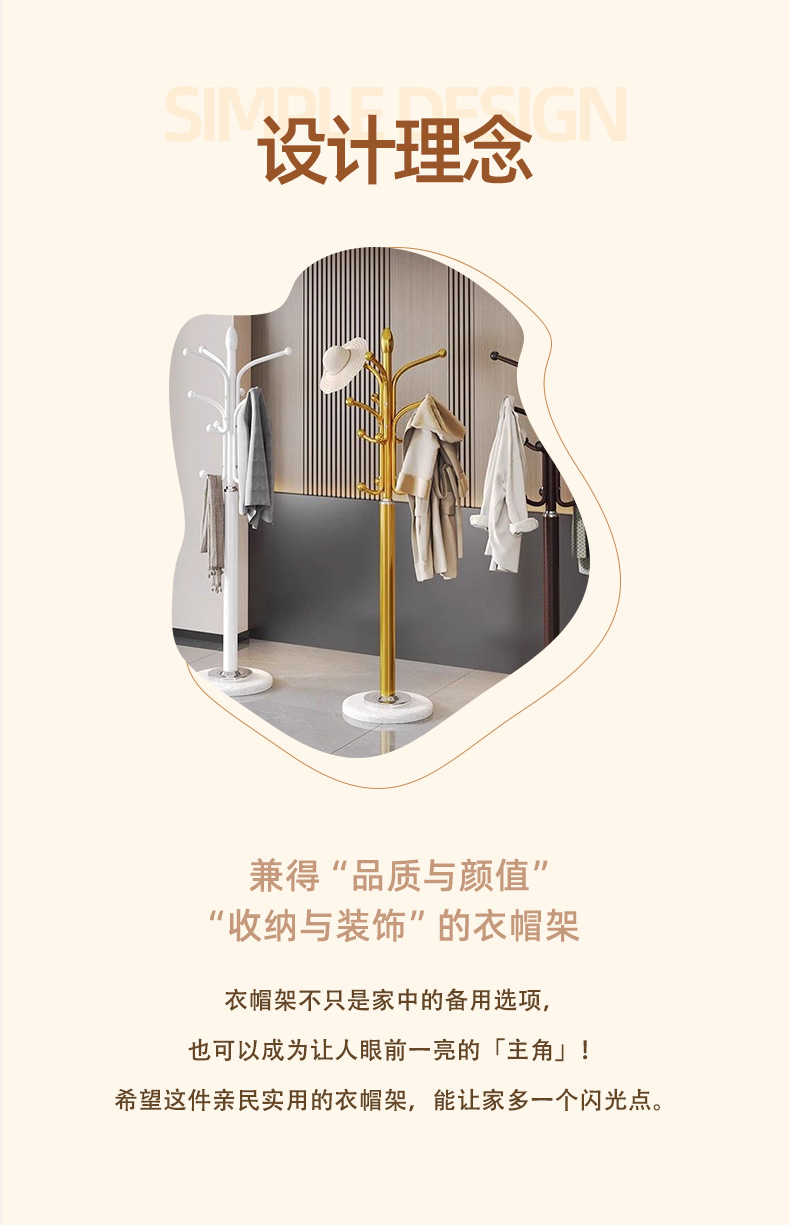 挂衣架落地立式家用卧室大理石轻奢衣帽架简易收纳晾衣挂包衣帽架
