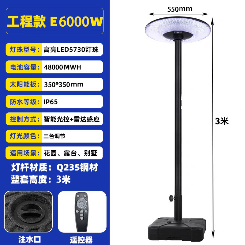 55cm灯头+3米移动杆+注水底座【三色变光】 USD $53.63 6000 piece available