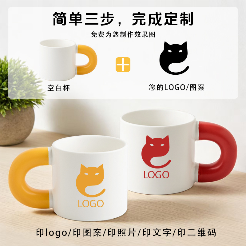 胖胖马克杯陶瓷水杯定制广告印图咖啡杯子高颜值可爱大手柄伴手礼