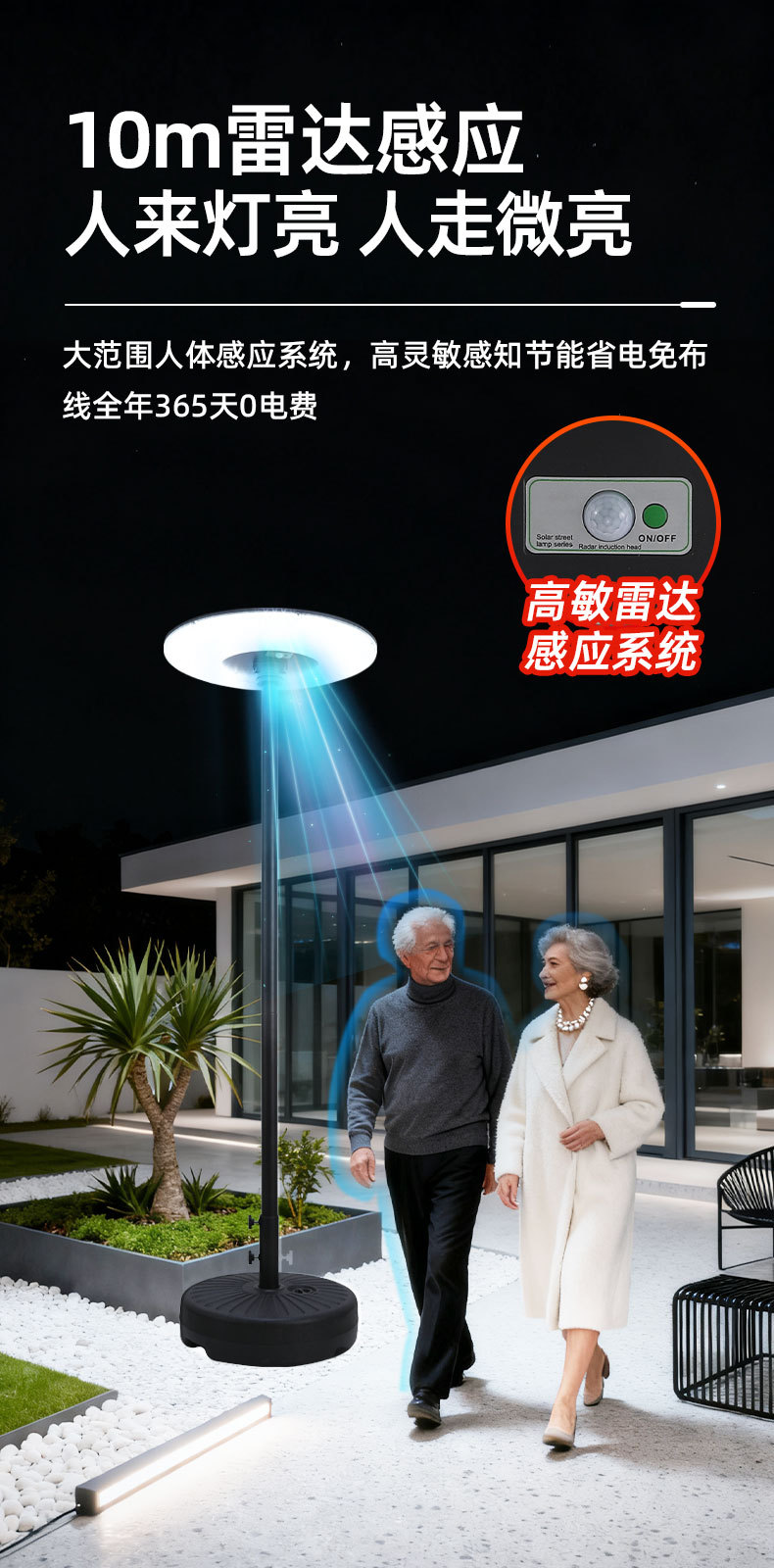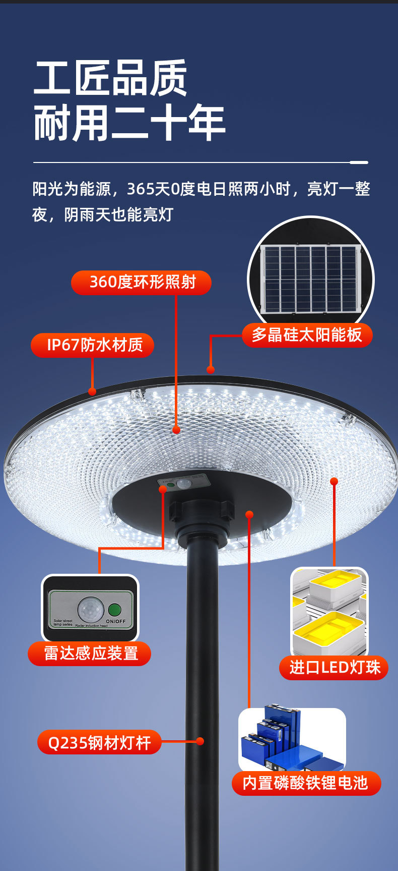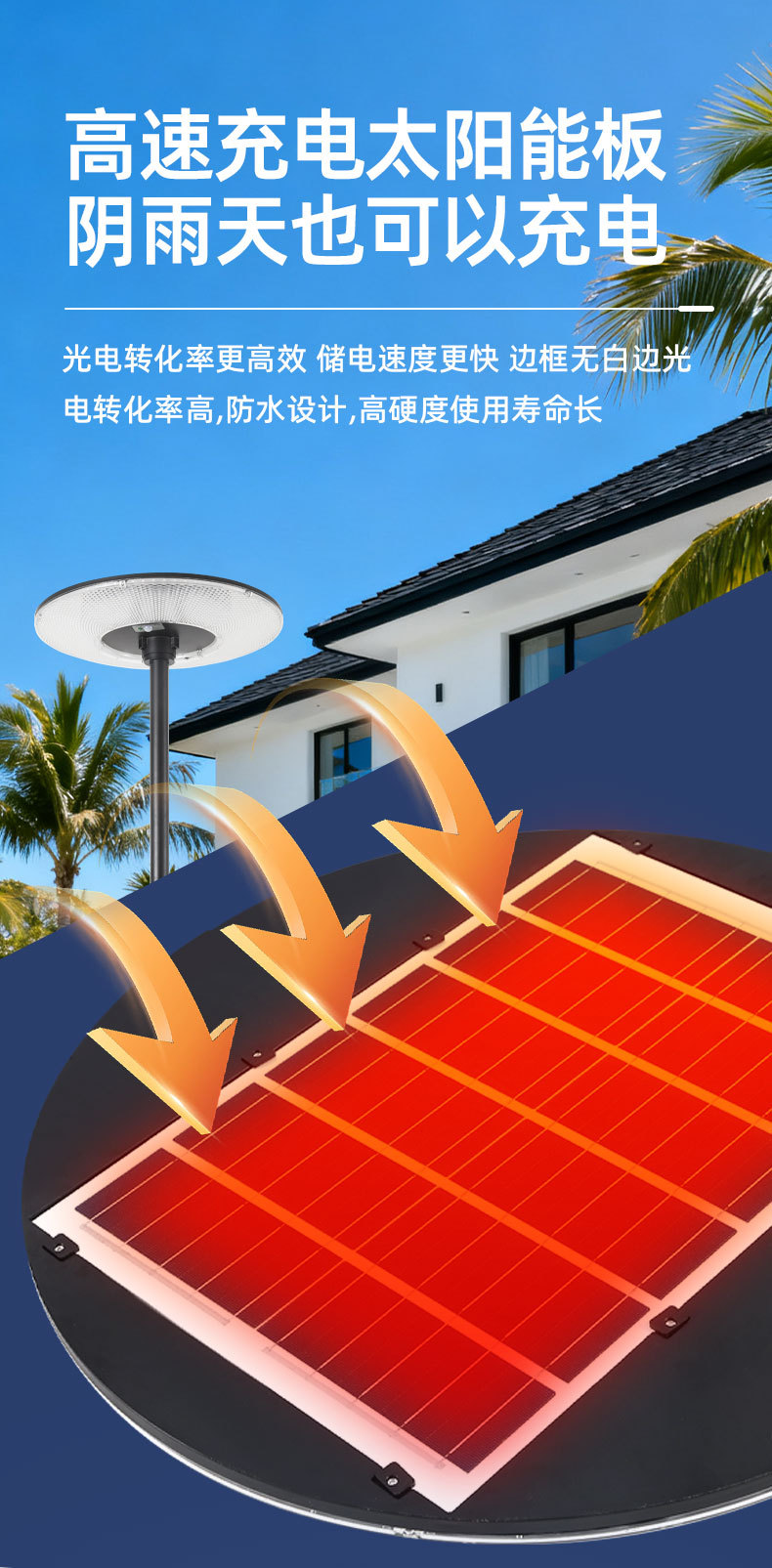 新款太阳能路灯圆形UFO别墅小区太阳能板广场景观灯感应式庭院灯