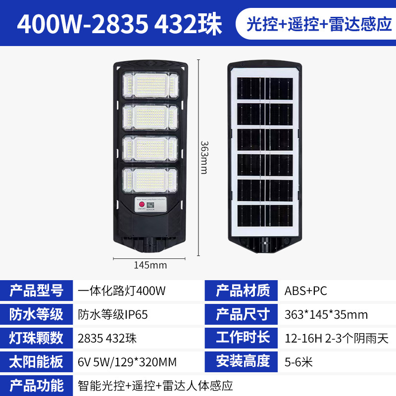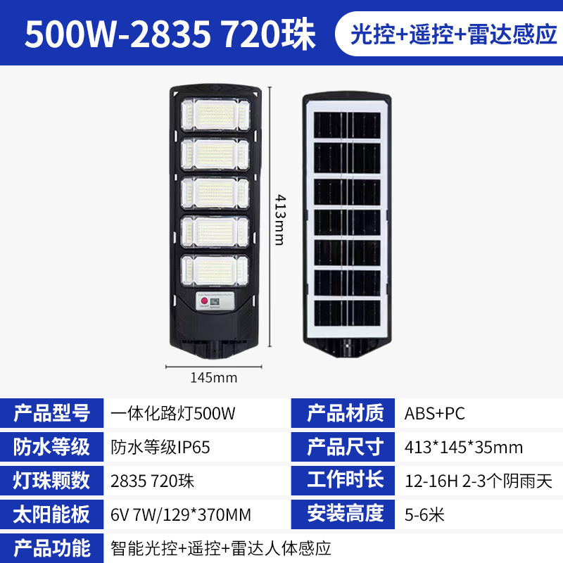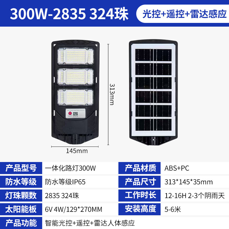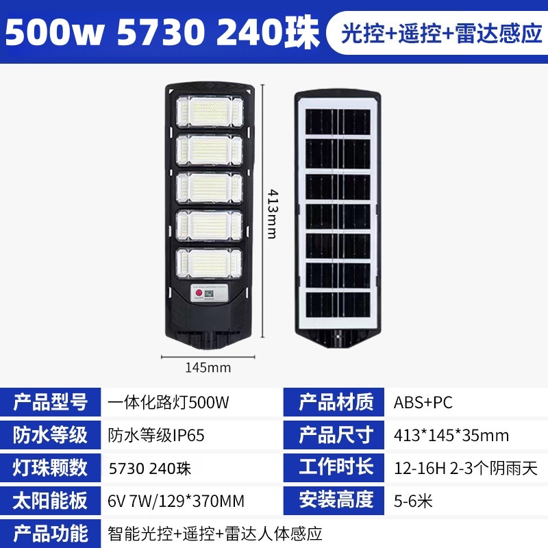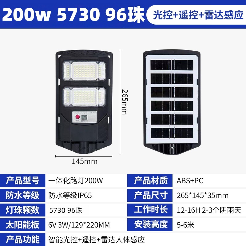 新款一体化太阳能路灯户外照明家用庭院灯感应遥控光控道路照明灯