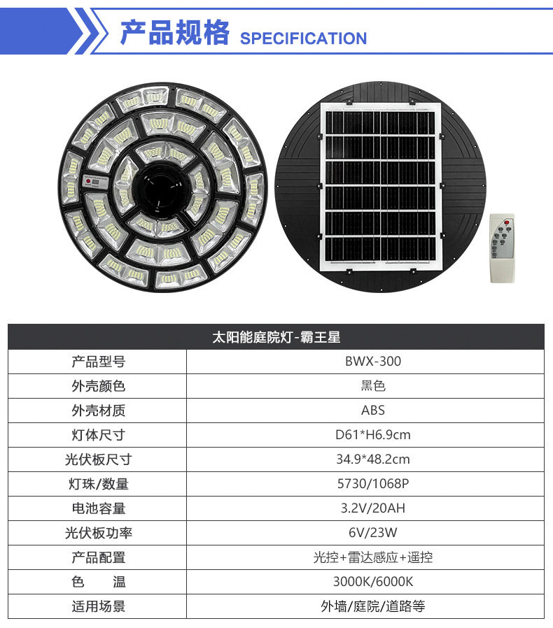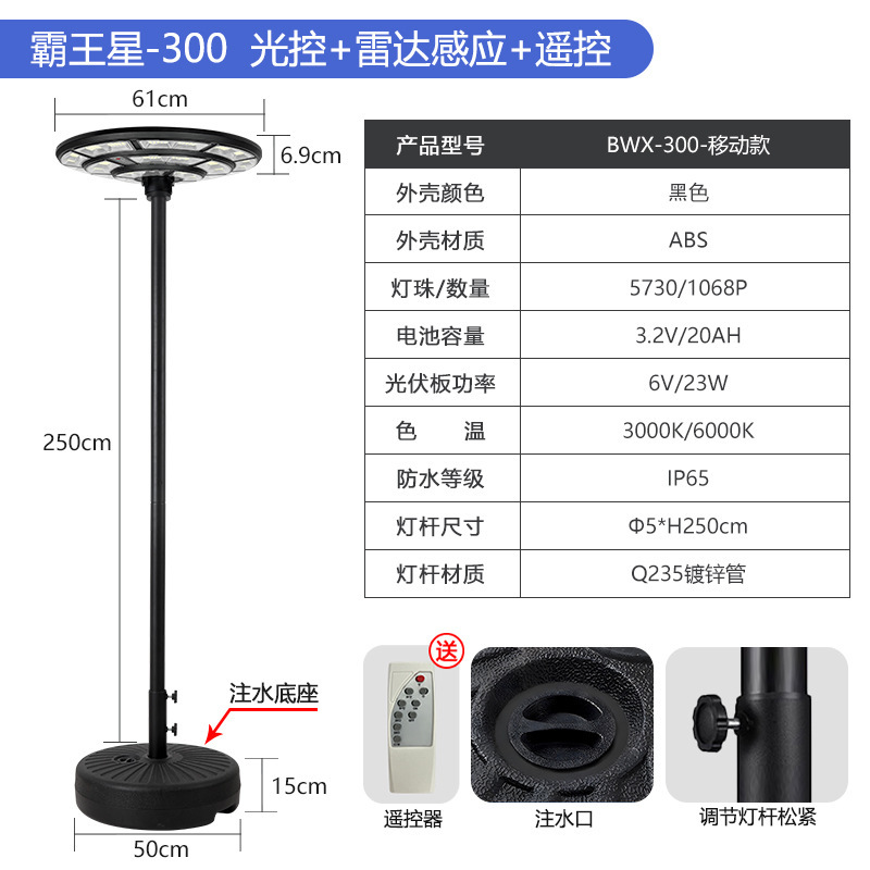 太阳能庭院照明灯景观灯户外防水路灯高杆灯便携式移动飞碟感应灯