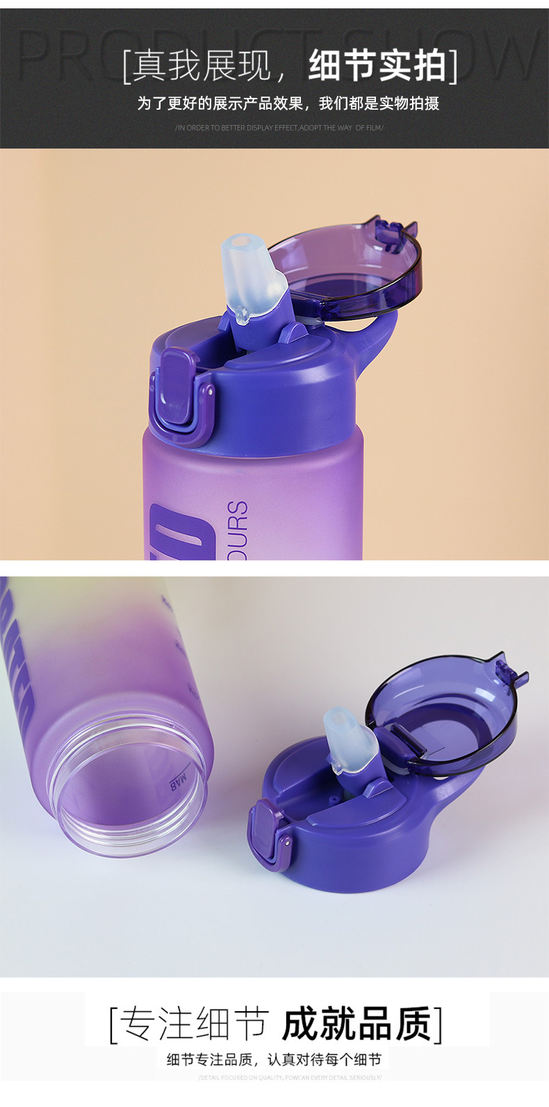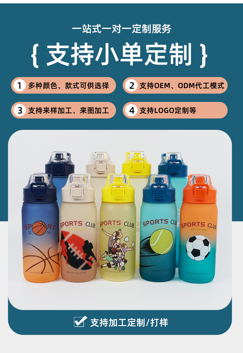 弹盖大容量便携水杯跨境渐变色塑料杯子防漏户外运动吸管杯900ml