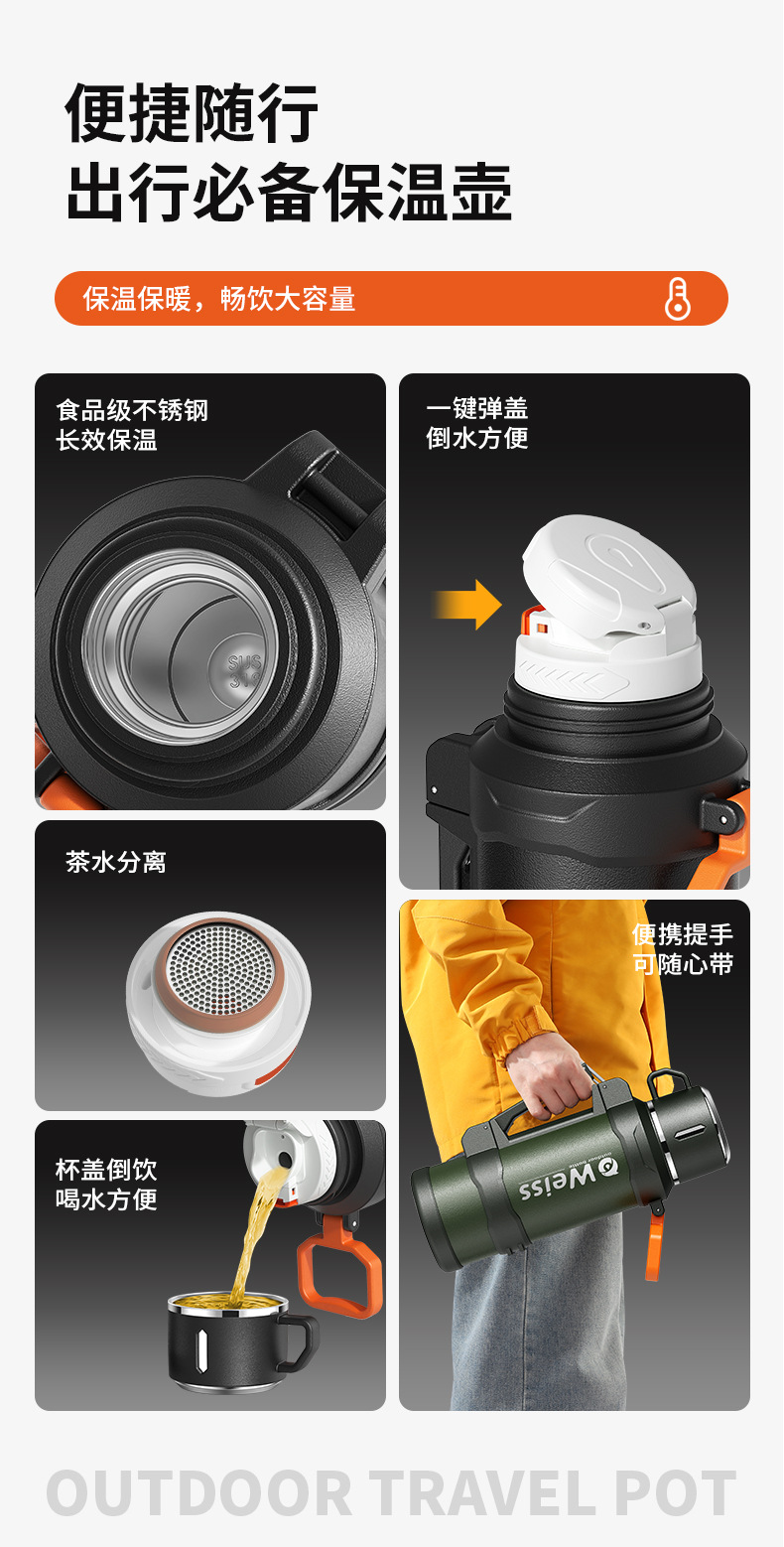食品级保温壶旅行保温水壶家用茶水分离大容量户外便携热水瓶批发