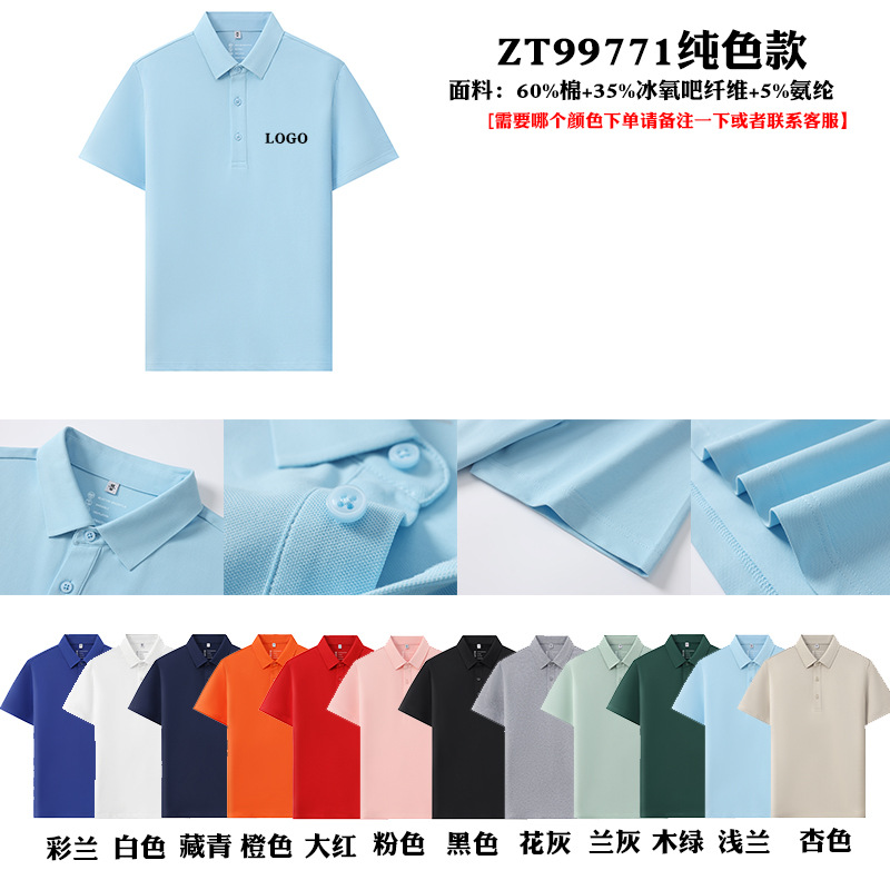 高端冰丝速干翻领工作服短袖定制4S店汽车销售polo衫工装印LOGO字