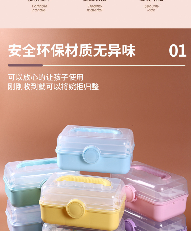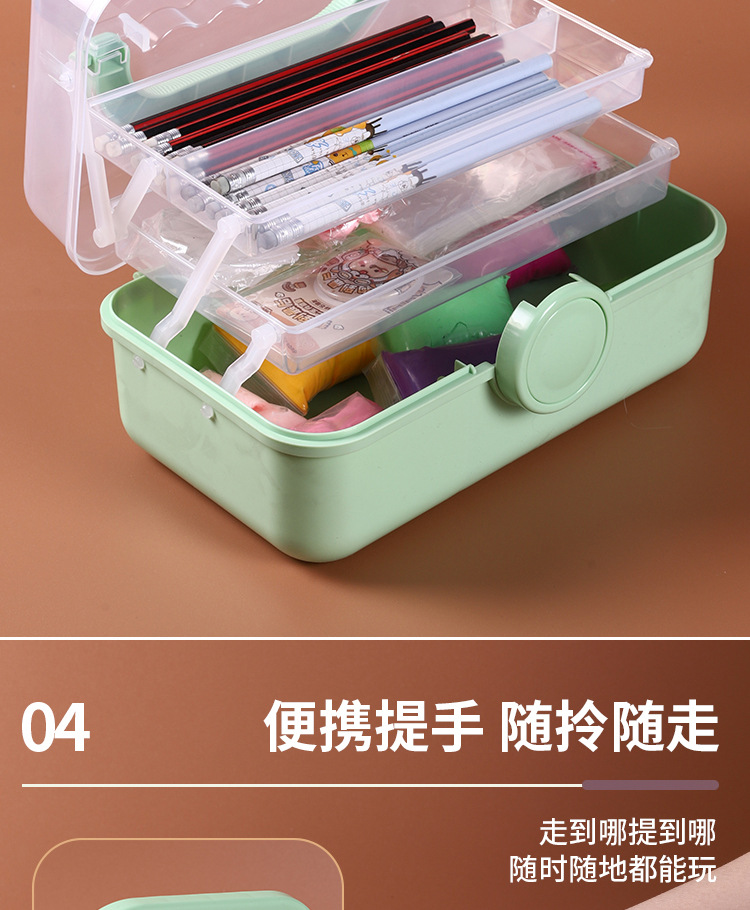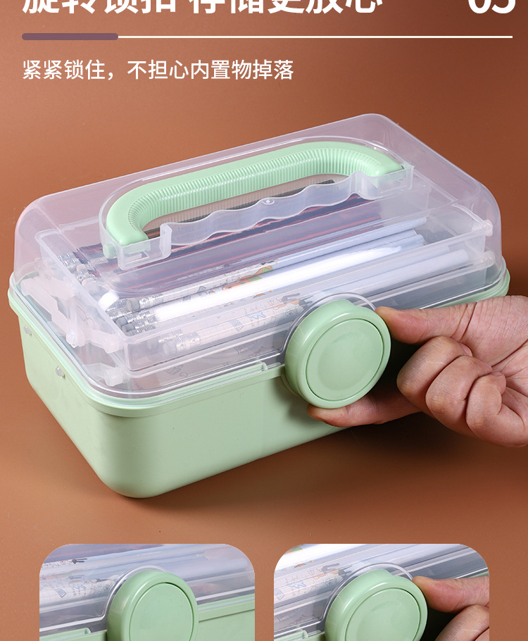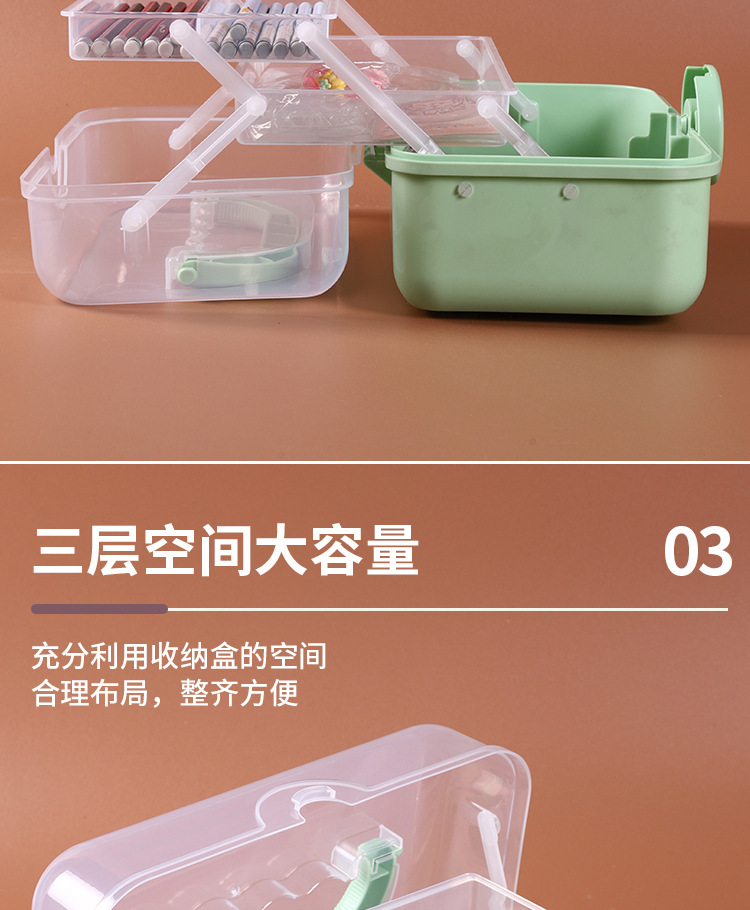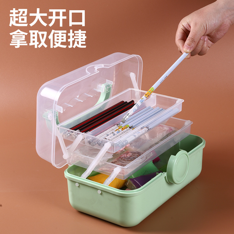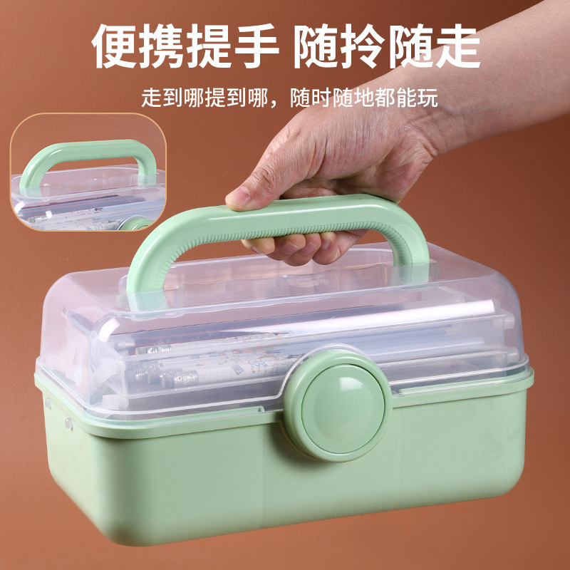 拼豆收纳盒三层美术生工具箱桌面整理文具药箱颜料画笔箱储物盒