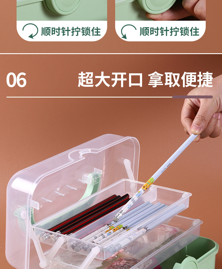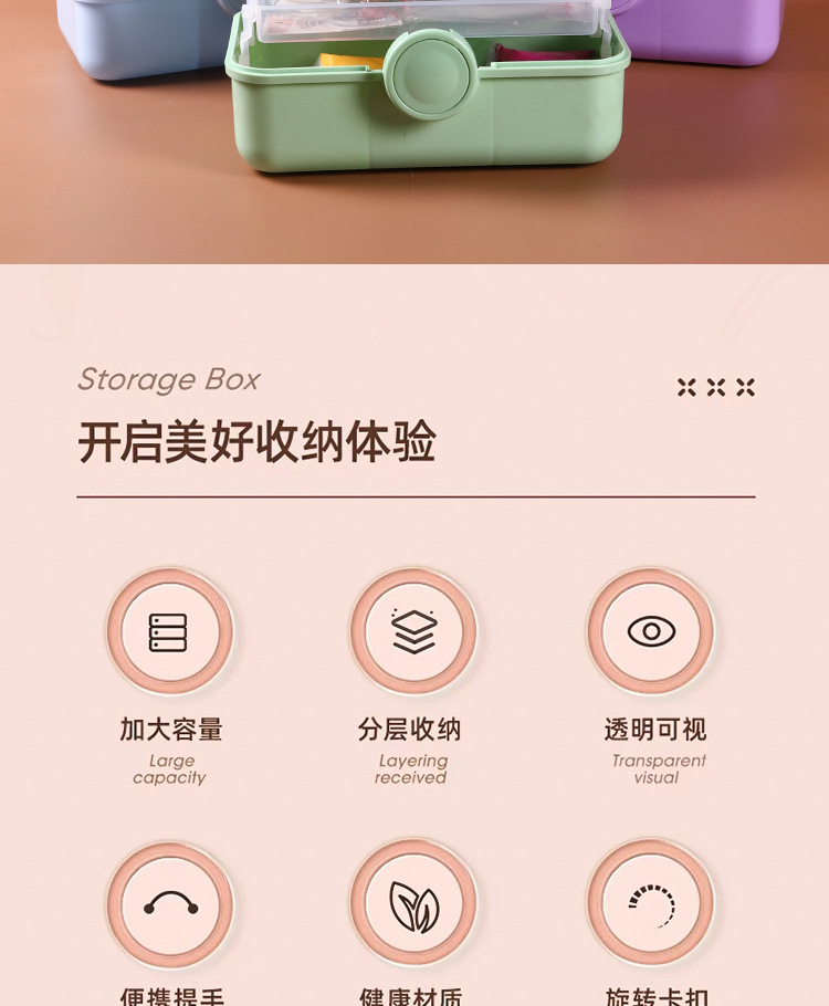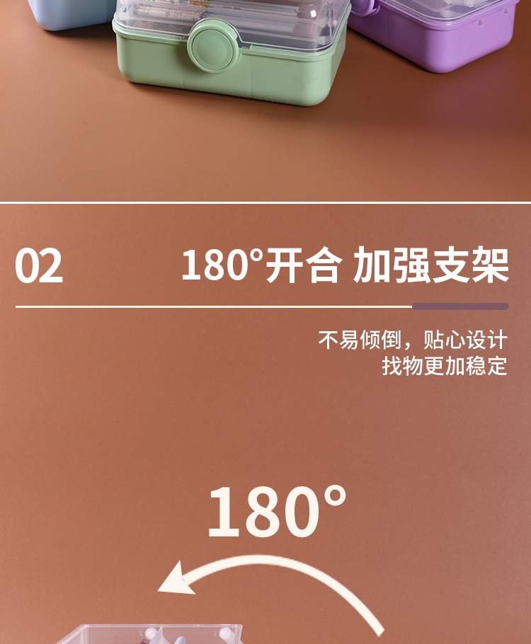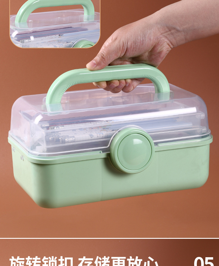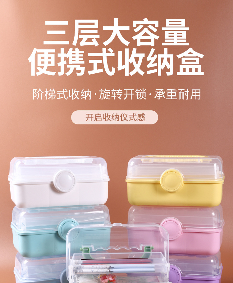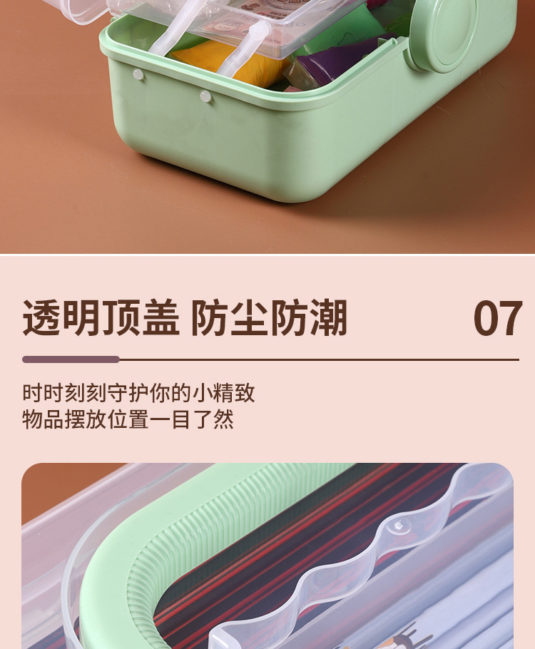 拼豆收纳盒三层美术生工具箱桌面整理文具药箱颜料画笔箱储物盒