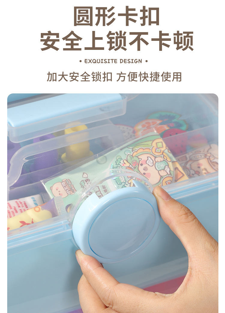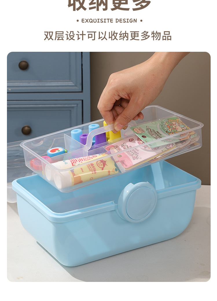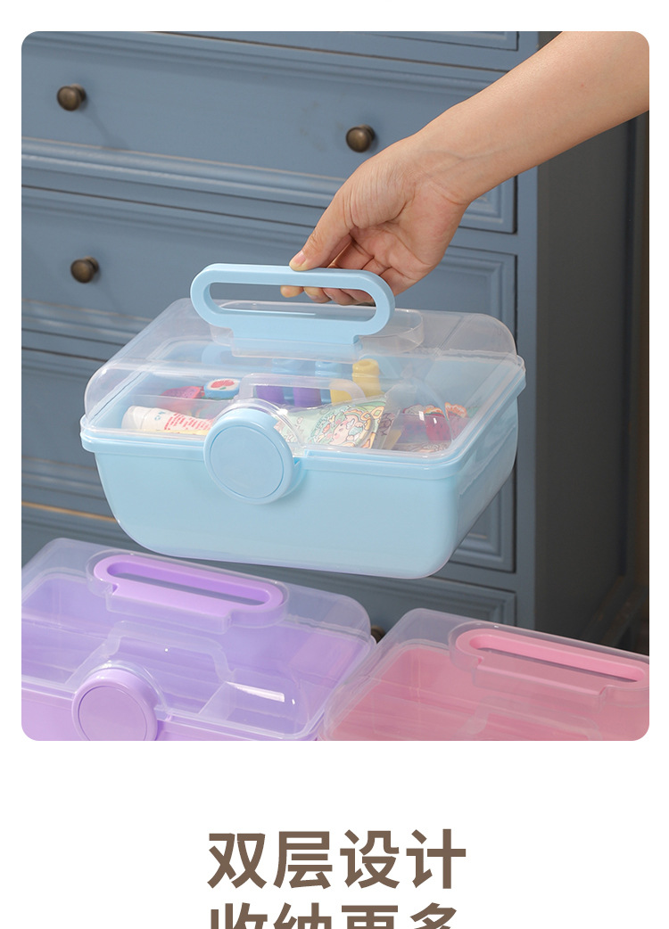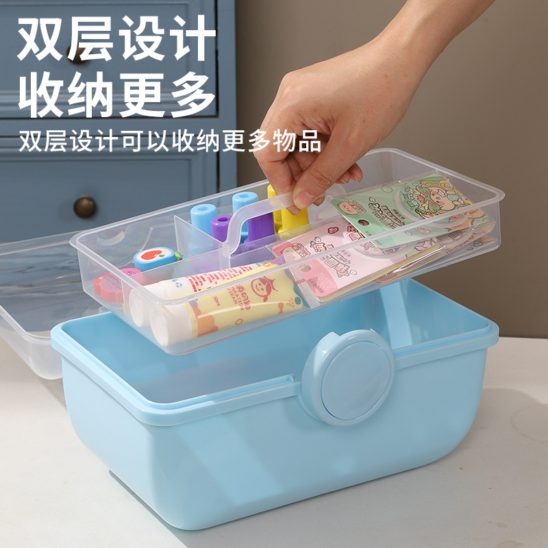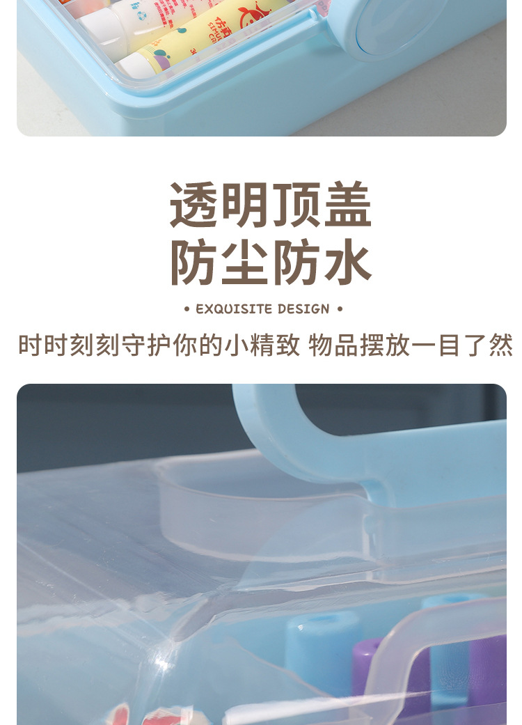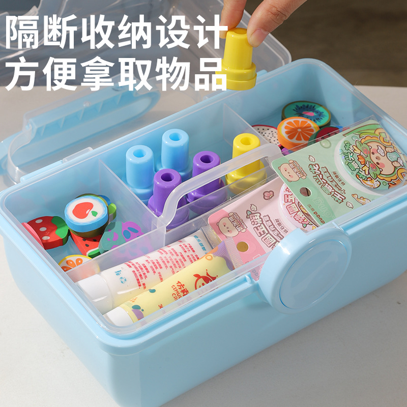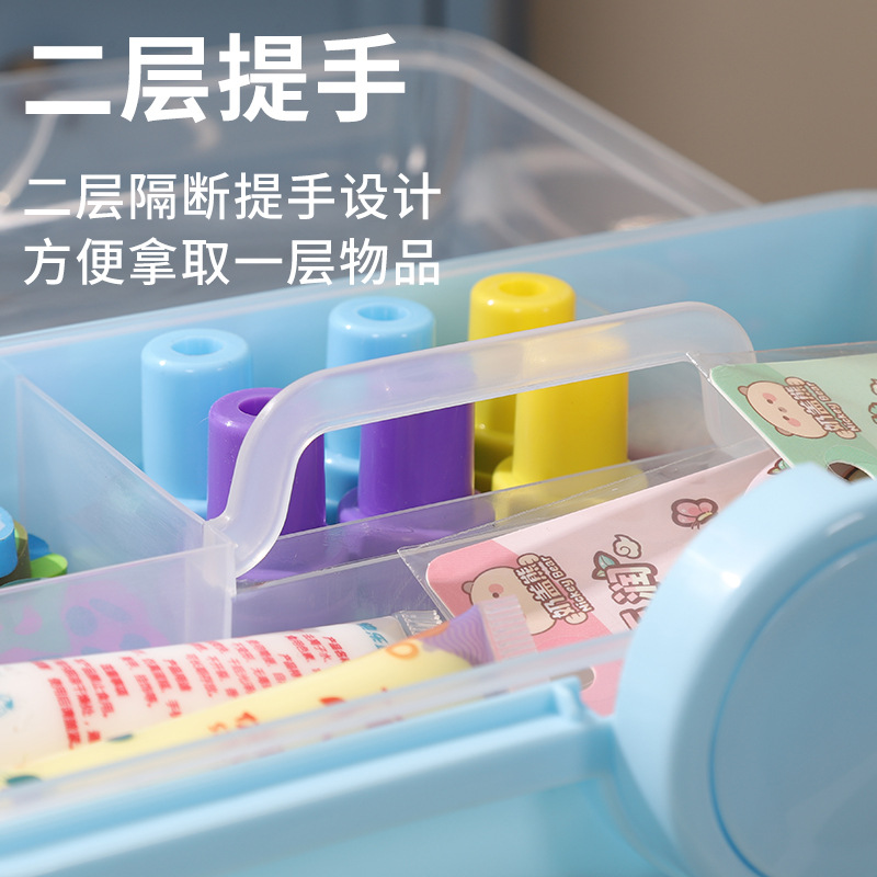 拼豆收纳盒双层透明美术工具箱颜料画笔箱多功能家用医药箱手提式