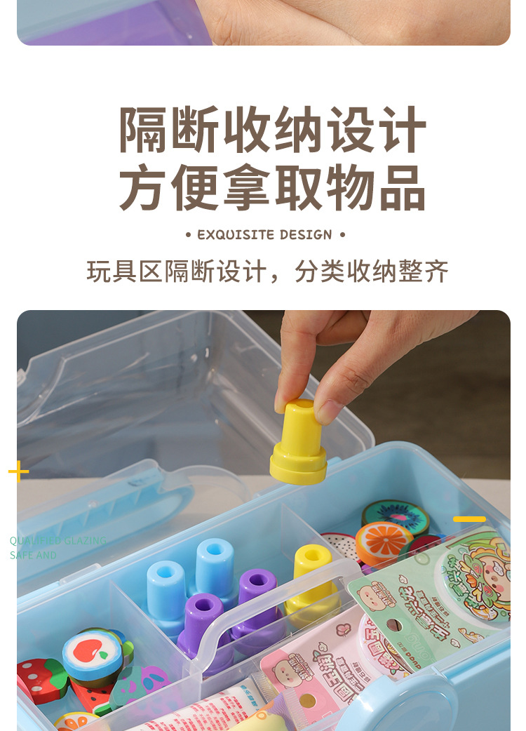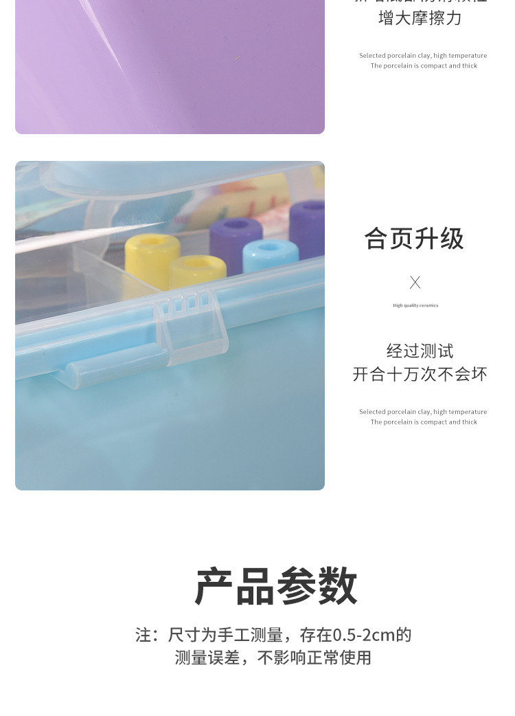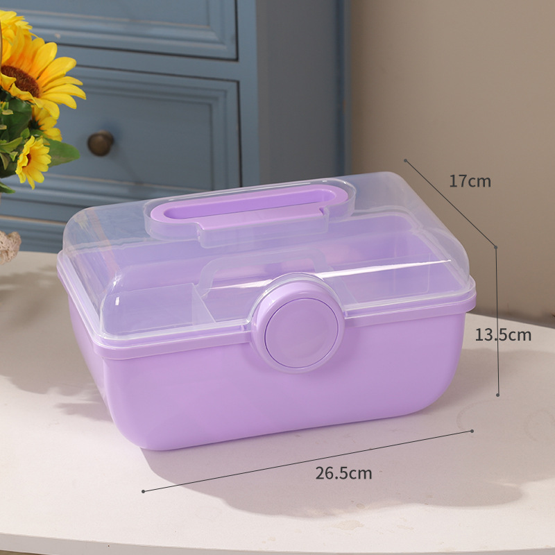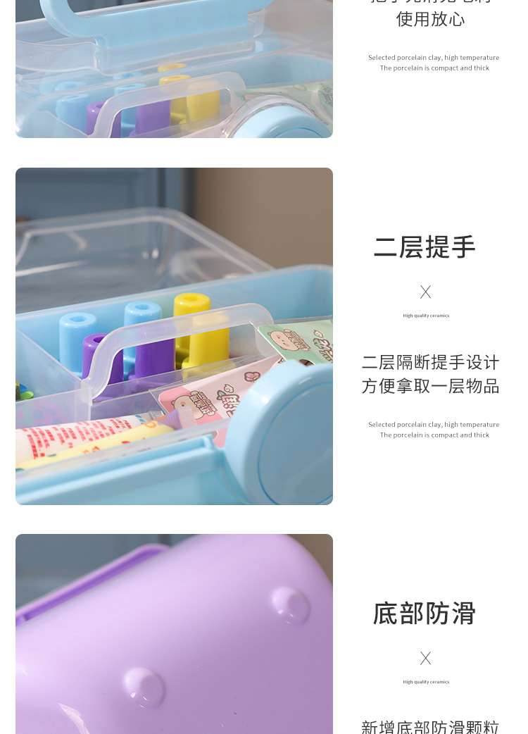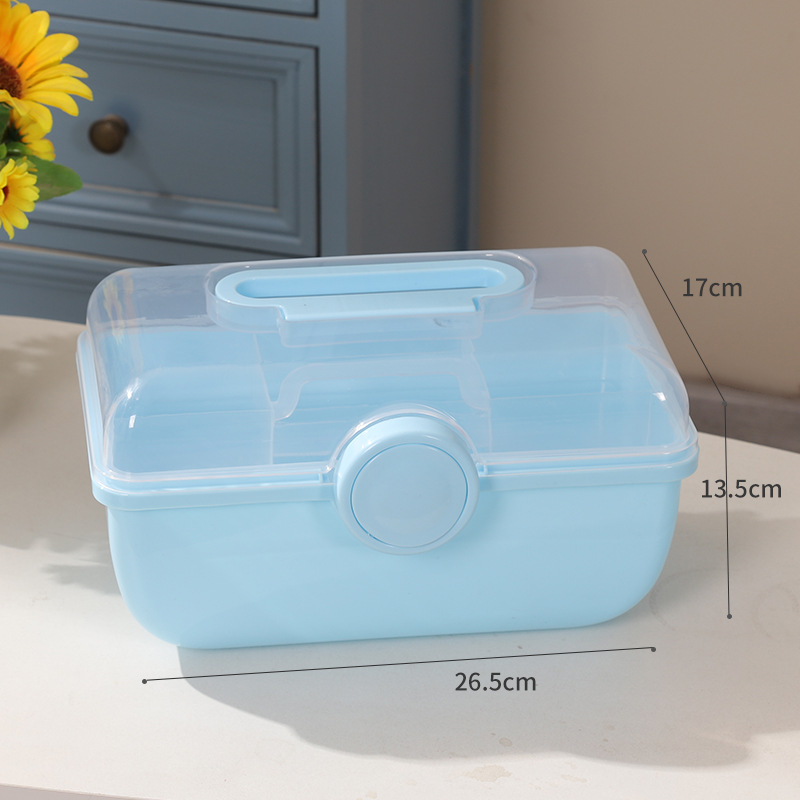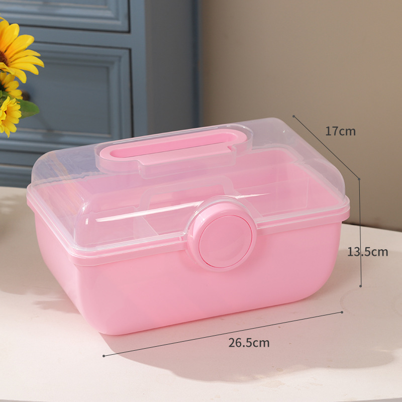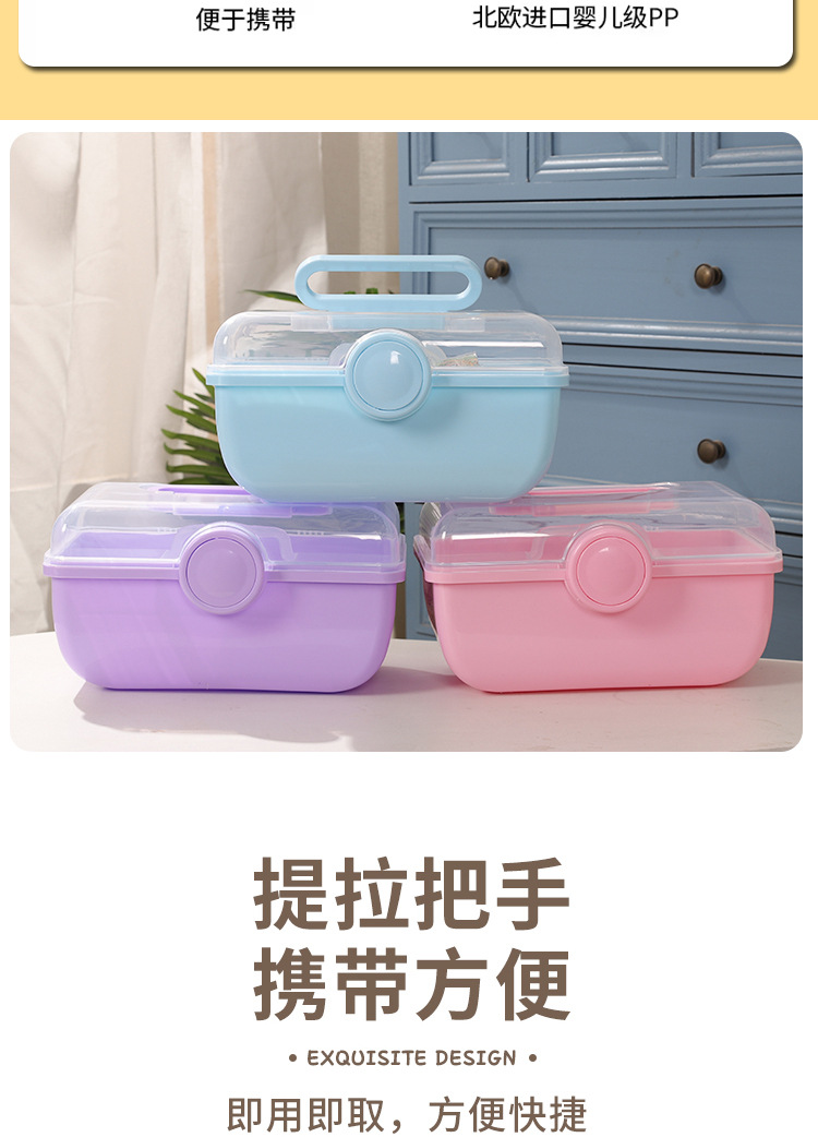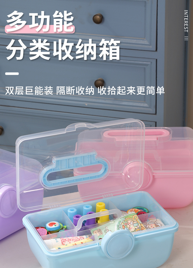 拼豆收纳盒双层透明美术工具箱颜料画笔箱多功能家用医药箱手提式