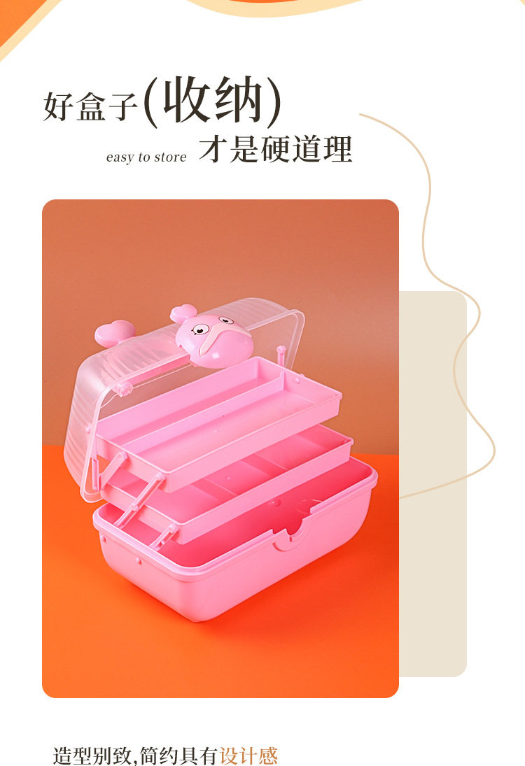 拼豆收纳盒3层首饰盒橡皮筋儿童发饰女孩多层饰品发夹多层整理箱